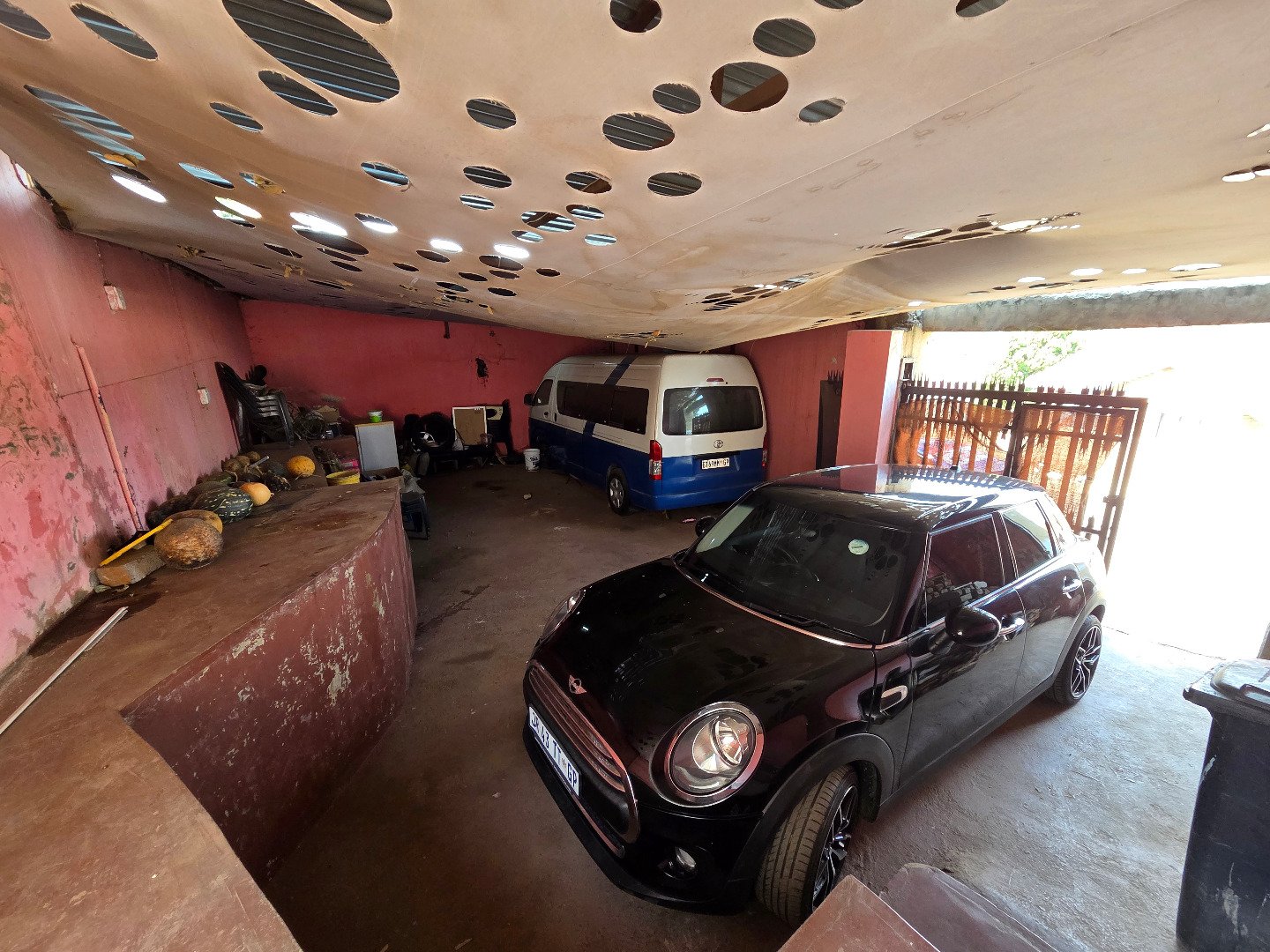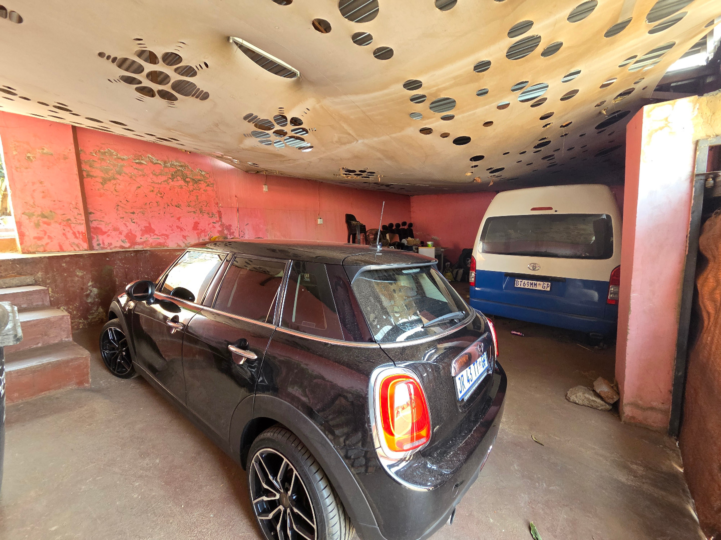 A sizable covered parking area, capable of accommodating up to four vehicles, thereby ensuring both convenience and security.
