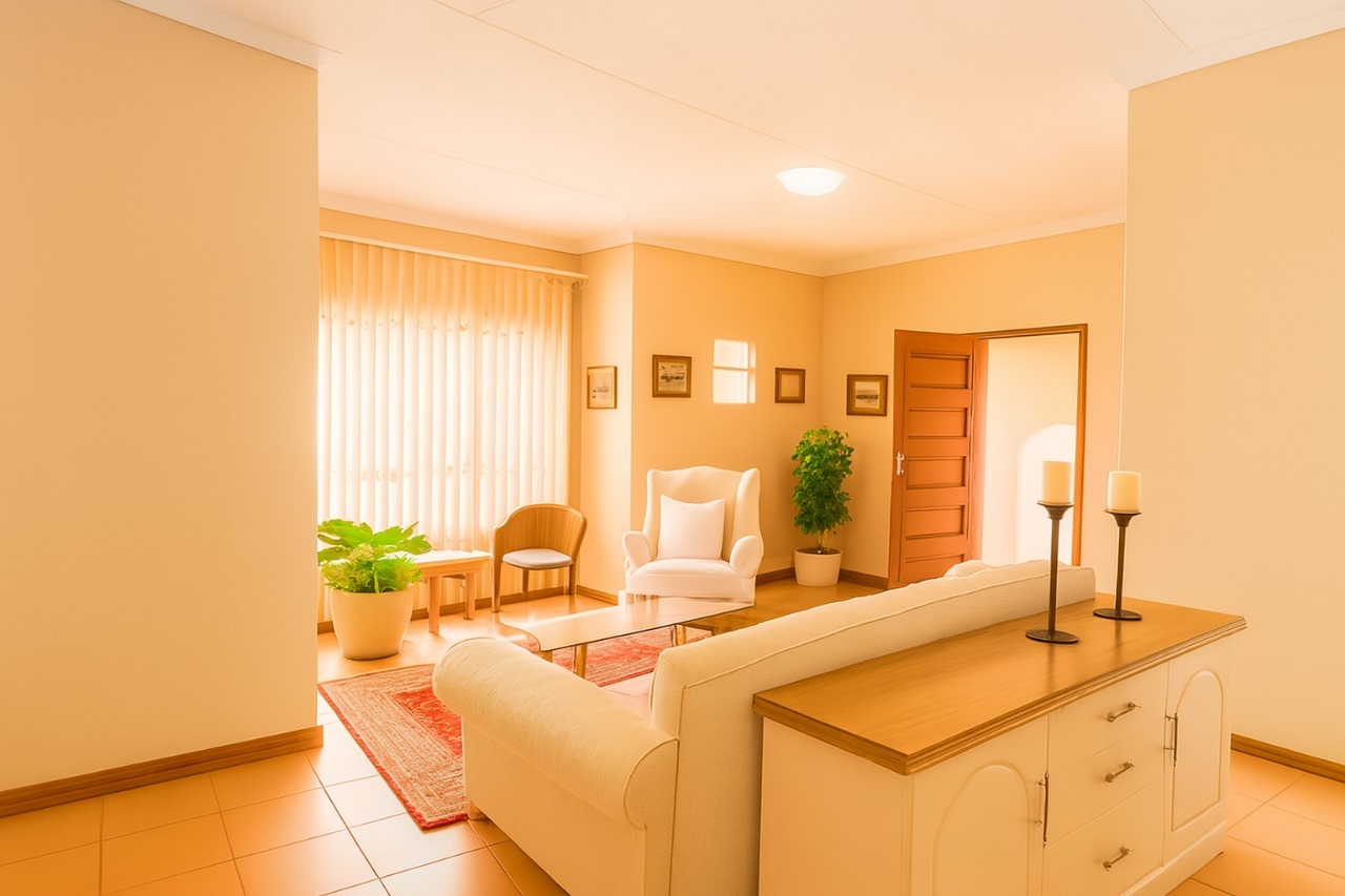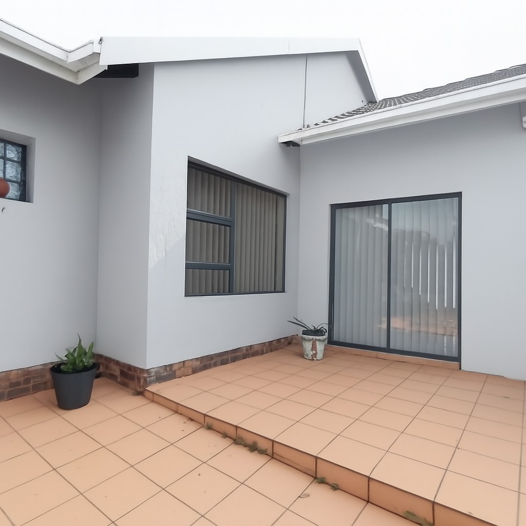 The kitchen is neat and practical with contemporary finishes and generous counter space, flowing effortlessly into the dining and lounge area. Large windows allow plenty of natural light to pour in, creating an uplifting and airy feel throughout the home. The living area opens through sliding doors to a spacious tiled patio, offering a fantastic outdoor extension of the home — perfect for morning coffee, weekend braais, or simply relaxing in your own private space.