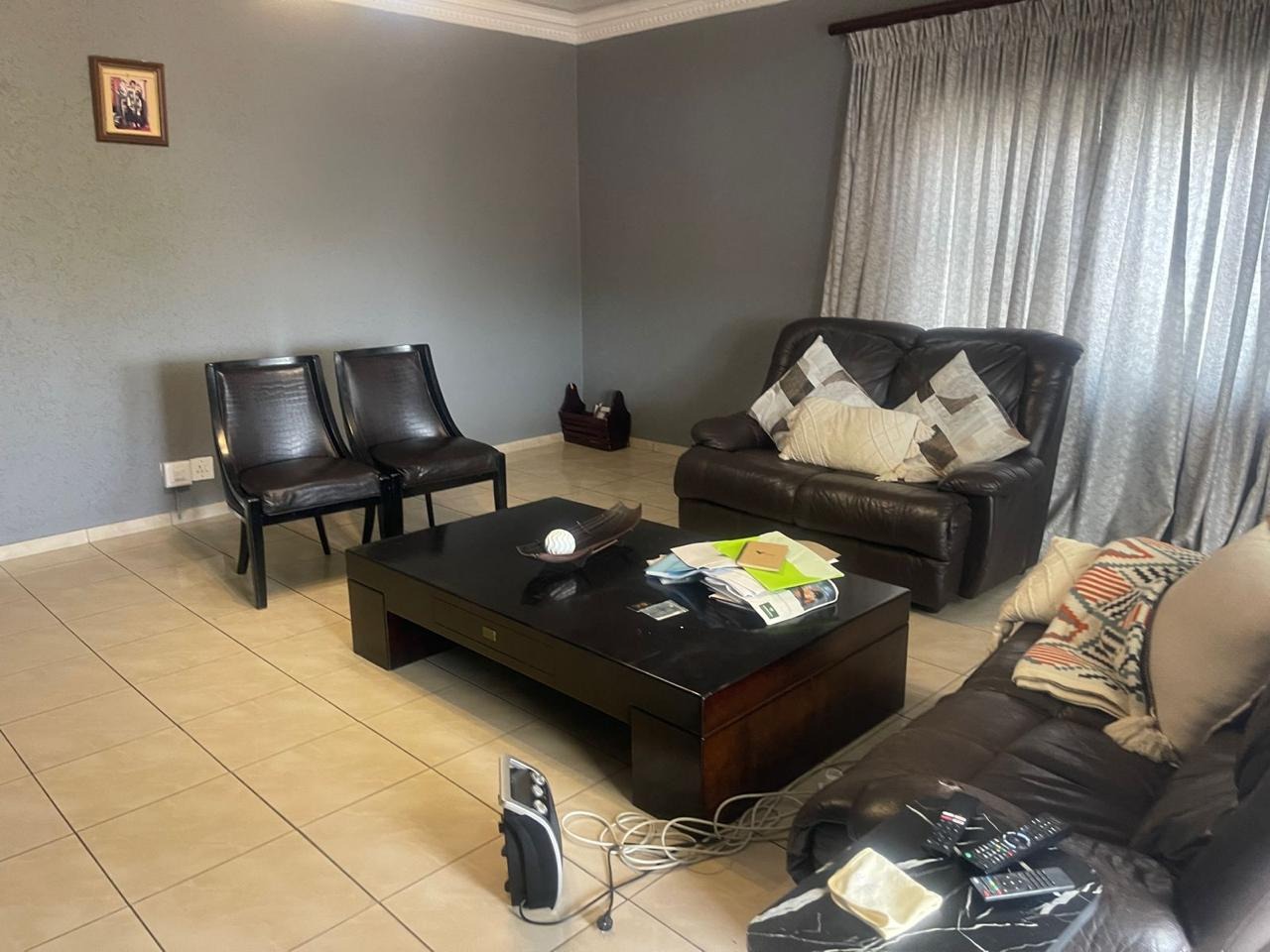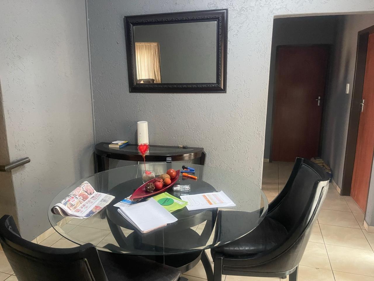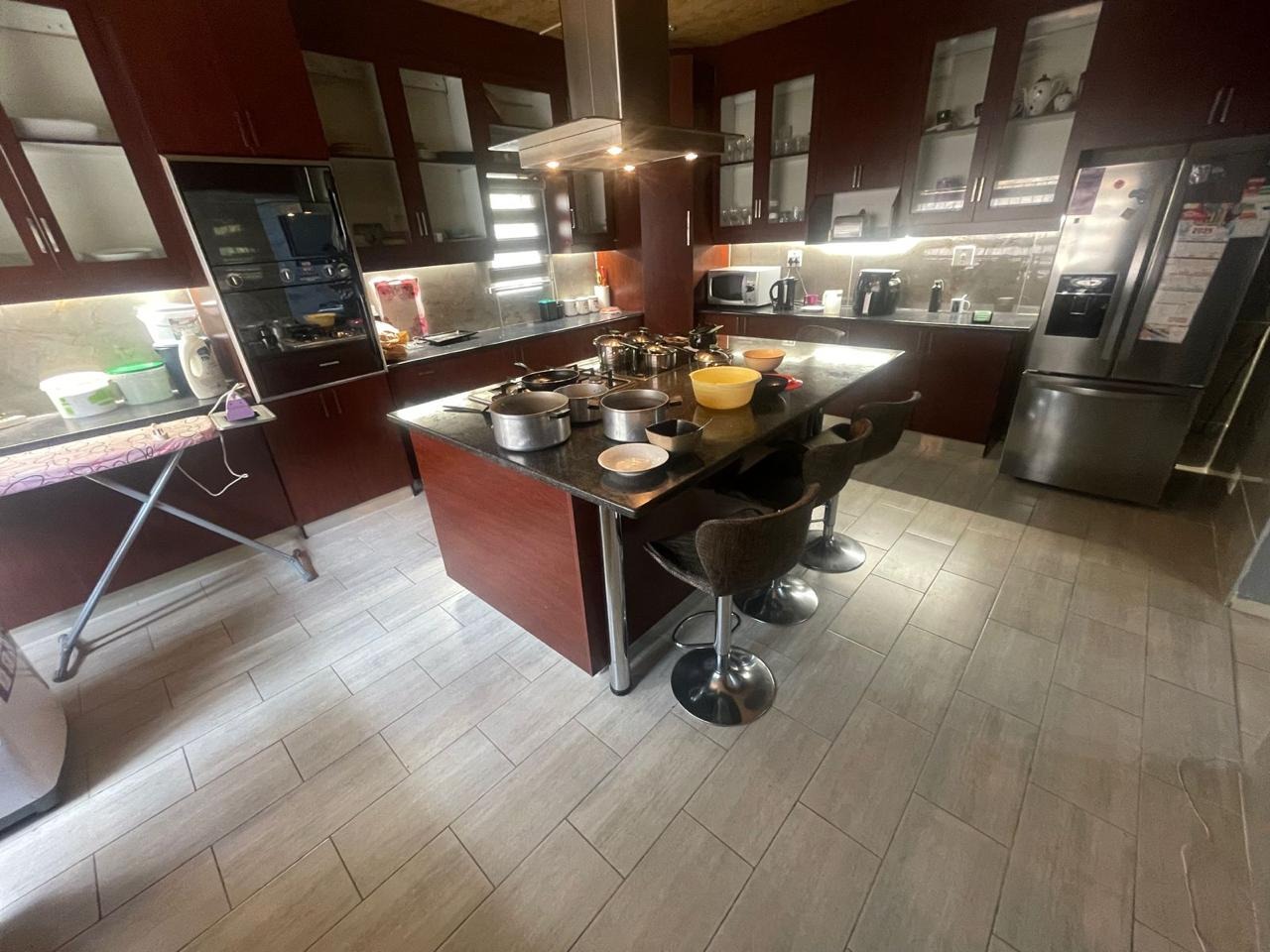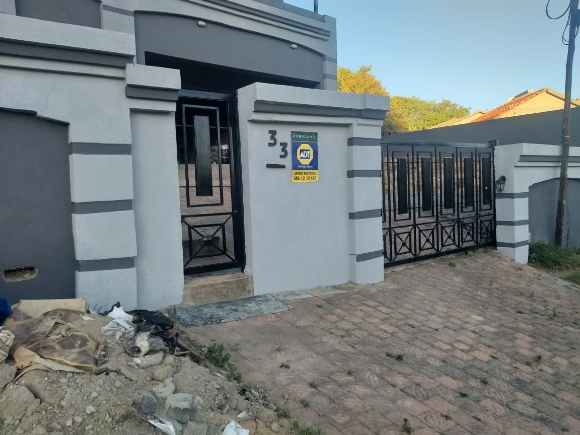 This modern multi-story residence in the desirable suburban area of Oakdene, Johannesburg, South Africa, presents an impressive kerb appeal. The property features a contemporary grey and white facade, complemented by a strong perimeter wall and secure pedestrian and vehicle gates, ensuring privacy and peace of mind. An elevated position offers a commanding presence, with a glass-enclosed balcony adding architectural interest and potential outdoor living space. The paved driveway provides convenient access and secure parking. Step inside to discover a thoughtfully designed interior. The spacious living room is bathed in natural light from large windows and features durable tiled flooring, offering a versatile canvas for personal styling. Adjacent to this, the dining area boasts a modern aesthetic with a textured accent wall and practical tiled flooring, perfect for entertaining. The heart of this home is its expansive, modern kitchen. Equipped with dark wood cabinetry, sleek dark granite countertops, and a large central island with seating, it's a chef's delight. Integrated stainless steel appliances, including a built-in oven, large refrigerator, integrated gas cooktop, microwave, and range hood, cater to all culinary needs. Under-cabinet lighting enhances functionality and ambiance. The residence offers four comfortable bedrooms and two well-appointed bathrooms, providing ample accommodation for a family. Beyond the interiors, the property boasts a generous 1806 sqm erf size, featuring a garden and extensive paving. Security is a priority, with the robust perimeter wall, secure access gates, and a visible ADT security system. The property also includes two garages, offering secure parking and additional storage. Key Features: * Modern multi-story design with contemporary finishes * 4 spacious bedrooms and 2 bathrooms * Expansive, modern kitchen with large island and integrated appliances * Generous living and dining areas with tiled flooring * Secure perimeter wall, access gates, and ADT security * Two garages and paved driveway * Large 1806 sqm erf size with garden * Located in the suburban area of Oakdene