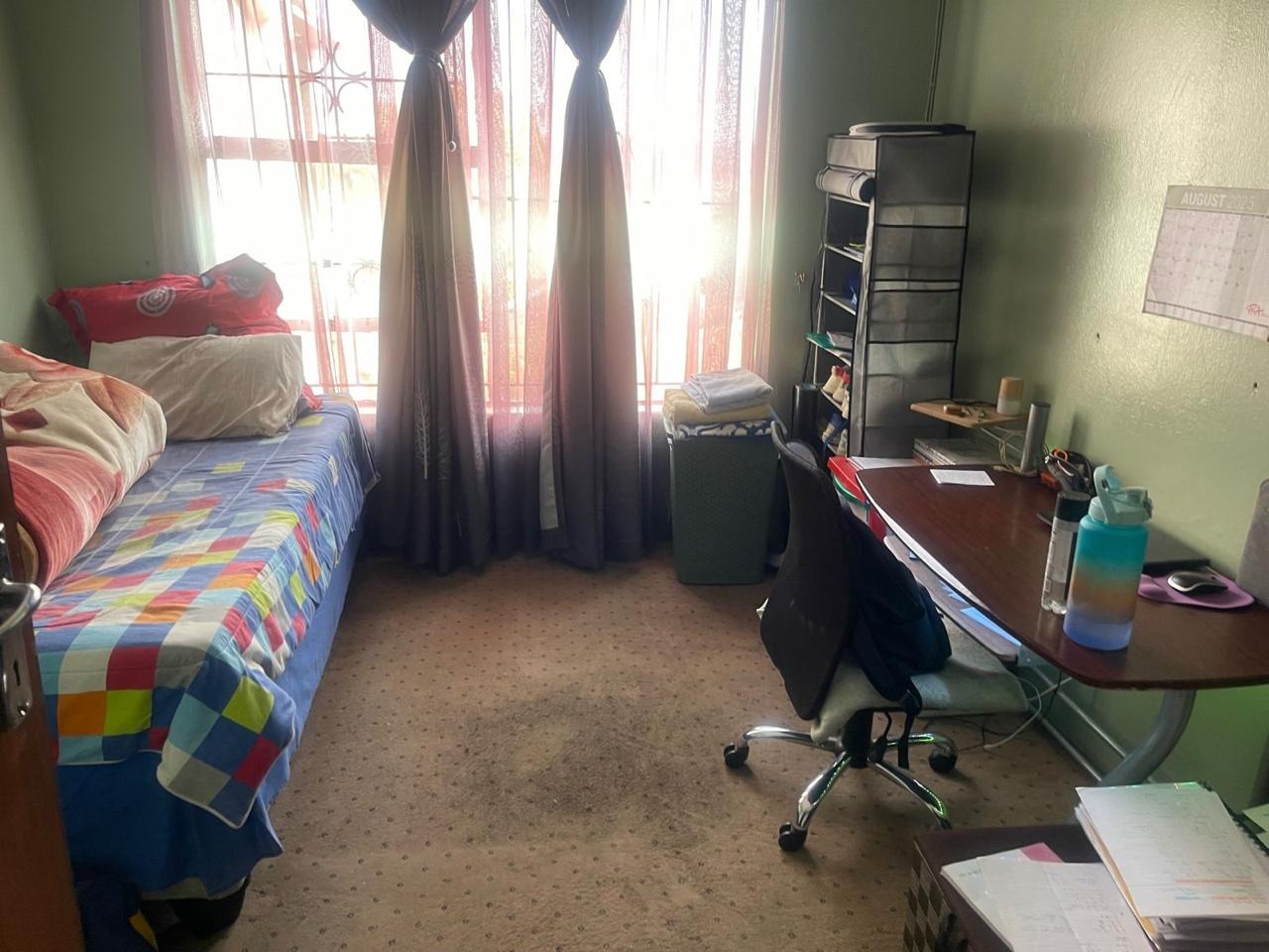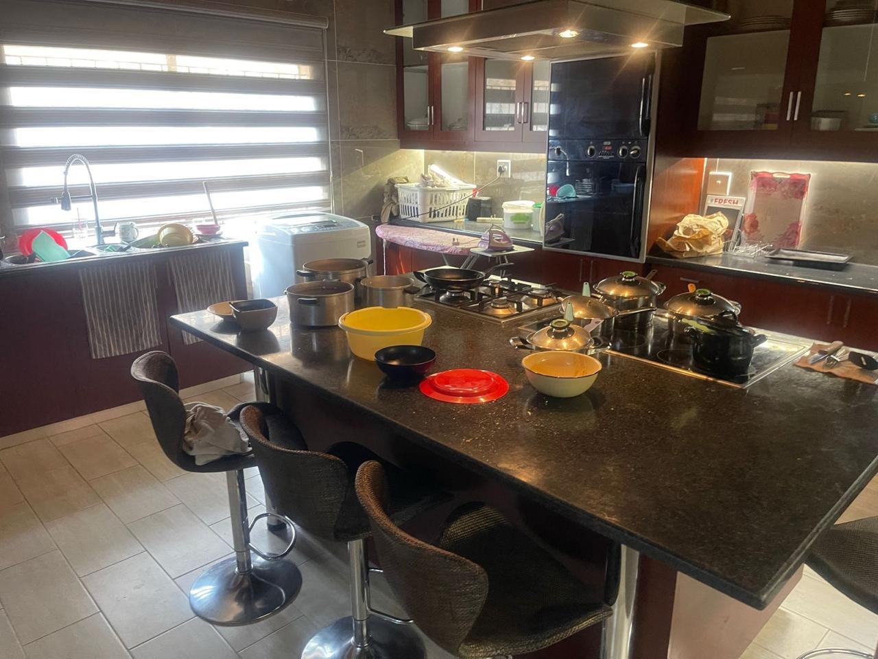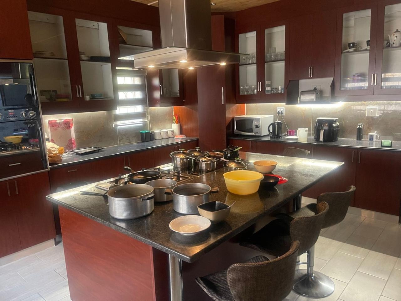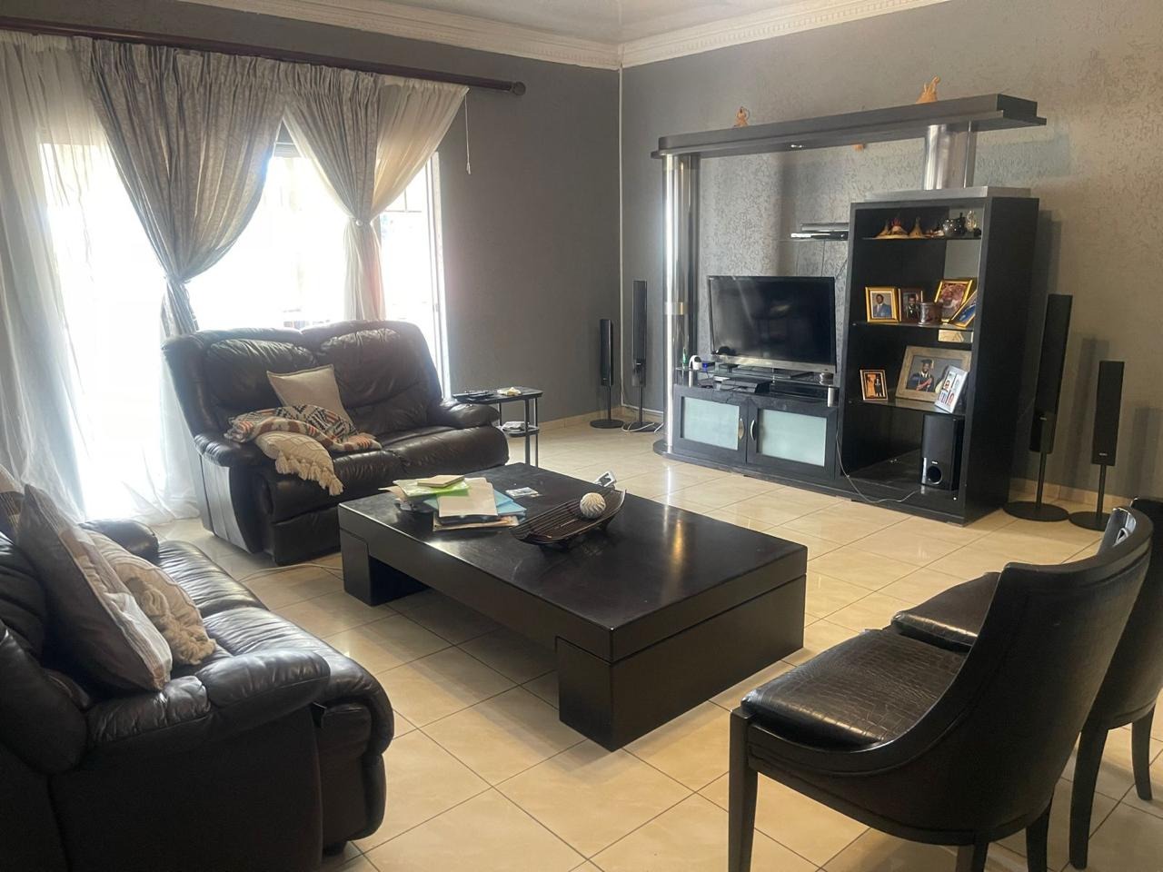 This modern multi-story residence in the desirable suburban area of Oakdene, Johannesburg, South Africa, presents an impressive kerb appeal. The property features a contemporary grey and white facade, complemented by a strong perimeter wall and secure pedestrian and vehicle gates, ensuring privacy and peace of mind. An elevated position offers a commanding presence, with a glass-enclosed balcony adding architectural interest and potential outdoor living space. The paved driveway provides convenient access and secure parking. Step inside to discover a thoughtfully designed interior. The spacious living room is bathed in natural light from large windows and features durable tiled flooring, offering a versatile canvas for personal styling. Adjacent to this, the dining area boasts a modern aesthetic with a textured accent wall and practical tiled flooring, perfect for entertaining. The heart of this home is its expansive, modern kitchen. Equipped with dark wood cabinetry, sleek dark granite countertops, and a large central island with seating, it's a chef's delight. Integrated stainless steel appliances, including a built-in oven, large refrigerator, integrated gas cooktop, microwave, and range hood, cater to all culinary needs. Under-cabinet lighting enhances functionality and ambiance. The residence offers four comfortable bedrooms and two well-appointed bathrooms, providing ample accommodation for a family. Beyond the interiors, the property boasts a generous 1806 sqm erf size, featuring a garden and extensive paving. Security is a priority, with the robust perimeter wall, secure access gates, and a visible ADT security system. The property also includes two garages, offering secure parking and additional storage. Key Features: * Modern multi-story design with contemporary finishes * 4 spacious bedrooms and 2 bathrooms * Expansive, modern kitchen with large island and integrated appliances * Generous living and dining areas with tiled flooring * Secure perimeter wall, access gates, and ADT security * Two garages and paved driveway * Large 1806 sqm erf size with garden * Located in the suburban area of Oakdene