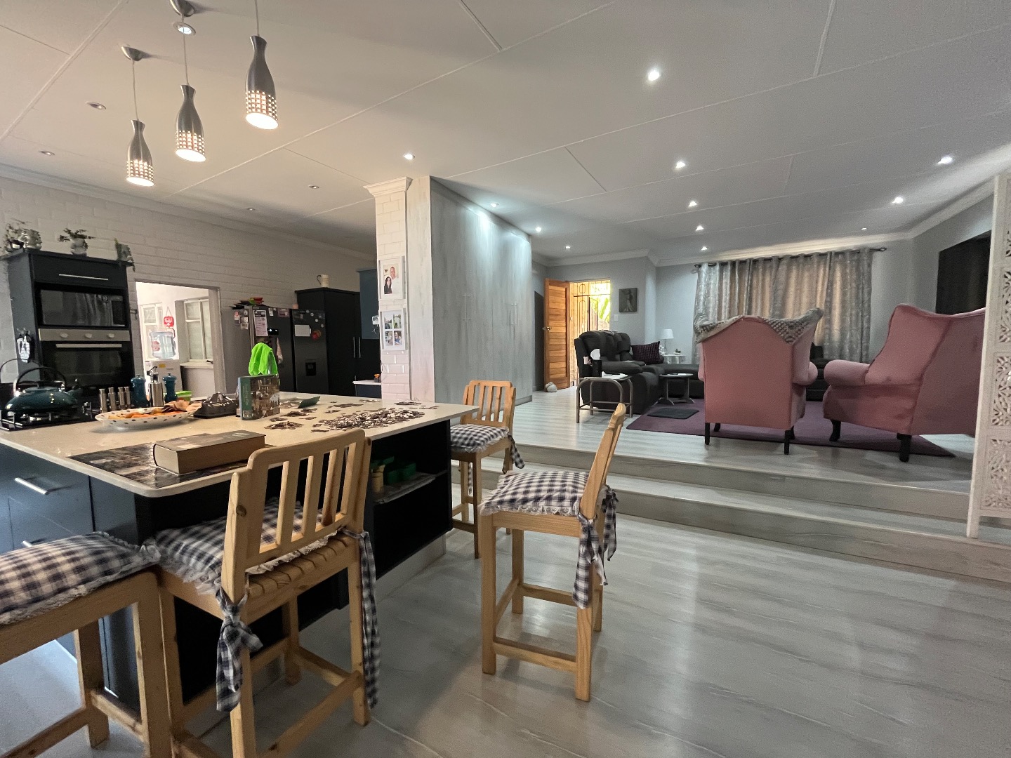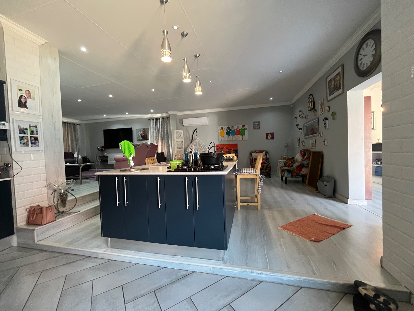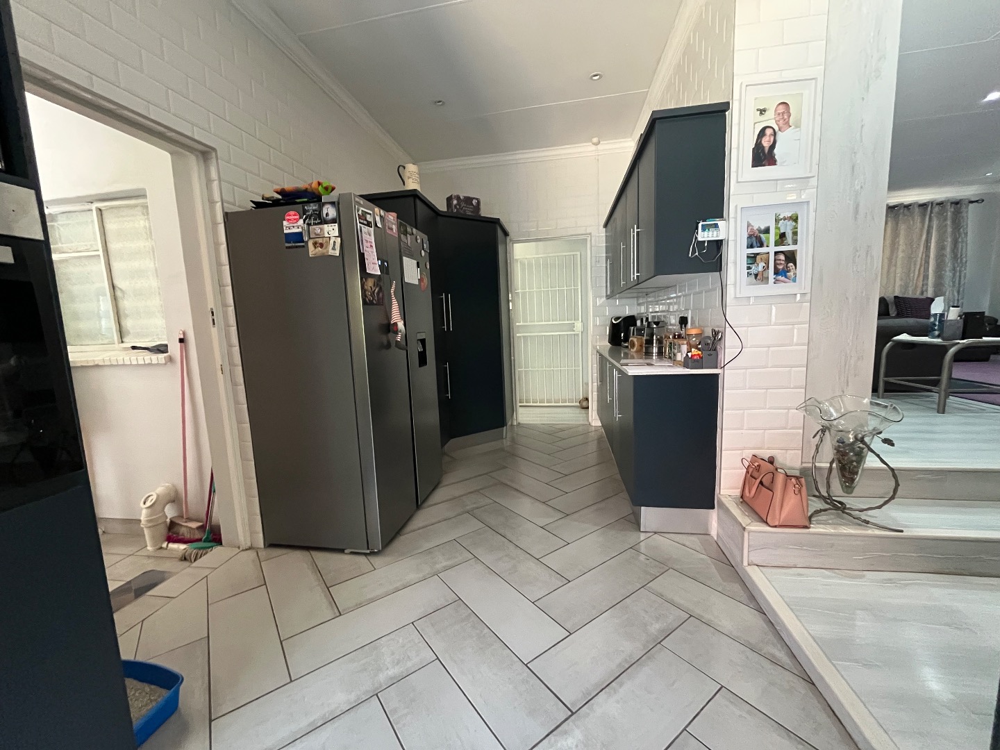 Discover this spacious residential property for sale in the desirable suburban area of Oakdene, Johannesburg. Boasting an impressive 750 sqm under roof on a generous 1089 sqm erf, this home offers ample space for comfortable family living and entertaining. The interior features an inviting open-plan, split-level design, creating distinct yet cohesive living zones. High vaulted ceilings enhance the sense of space and architectural character throughout the main living areas. The heart of the home is a modern kitchen, complete with dark cabinetry, a large island offering ample counter space and seating, and contemporary appliances. This flows seamlessly into a dedicated dining area and a versatile lounge, further complemented by a stylish bar area perfect for social gatherings. Multiple lighting solutions, including recessed and pendant fixtures, illuminate the spaces, while an air conditioning unit ensures comfort. A highly functional utility room/scullery provides additional convenience with dark cabinetry and comprehensive appliance provisions. Accommodation comprises four well-proportioned bedrooms, with 2.5 bathrooms, including a private en-suite for added luxury. The property offers practical outdoor features, including a garden and paving, alongside secure parking with two garages and an additional four open parking spaces. Security is well-addressed with an alarm system, burglar bars, and security gates, providing peace of mind for residents. Oakdene is a well-established suburban neighbourhood known for its family-friendly atmosphere and convenient access to local amenities. This property presents a significant opportunity for those seeking a substantial home with modern features and excellent potential in a prime Johannesburg location. Key Features: * 4 Bedrooms, 2.5 Bathrooms (1 En-suite) * Open-plan, Split-level Living Areas * Modern Kitchen with Island & Bar Area * High Vaulted Ceilings * 2 Garages & 4 Parking Spaces * Alarm System, Burglar Bars & Security Gate * Generous 750 sqm Floor Size * Large 1089 sqm Erf * Suburban Johannesburg Location