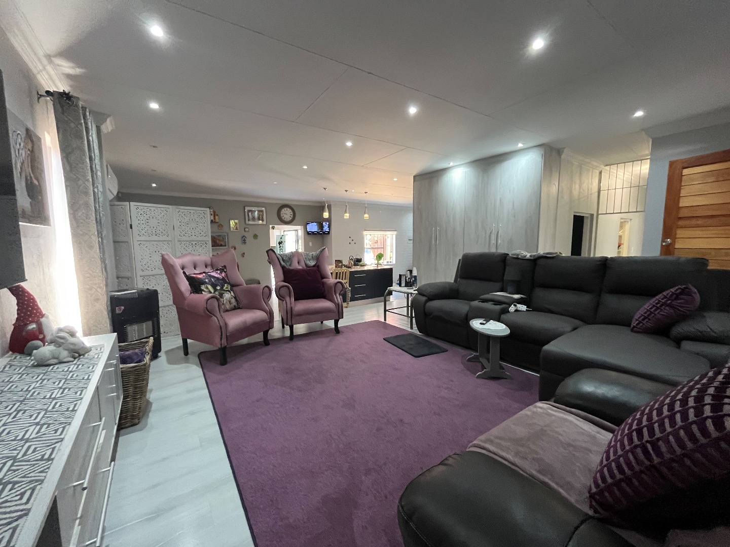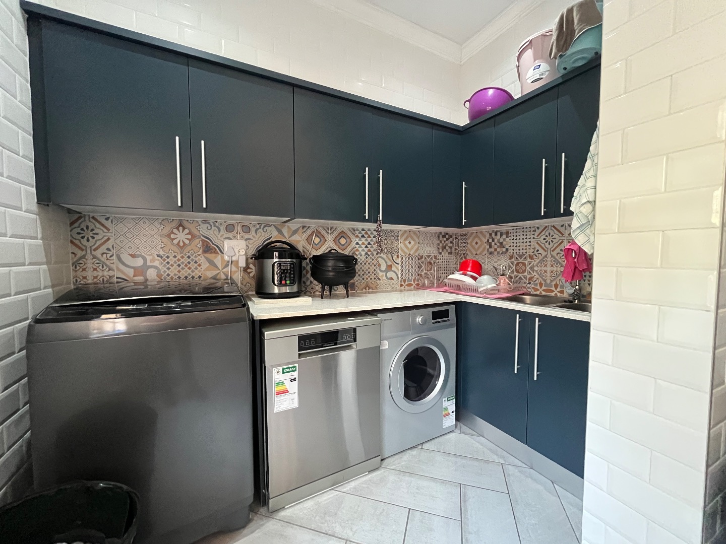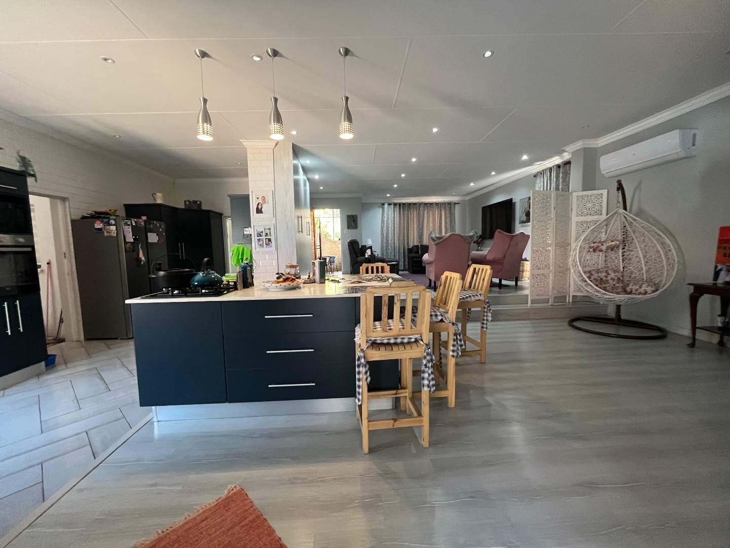 Discover this spacious residential property for sale in the desirable suburban area of Oakdene, Johannesburg. Boasting an impressive 750 sqm under roof on a generous 1089 sqm erf, this home offers ample space for comfortable family living and entertaining. The interior features an inviting open-plan, split-level design, creating distinct yet cohesive living zones. High vaulted ceilings enhance the sense of space and architectural character throughout the main living areas. The heart of the home is a modern kitchen, complete with dark cabinetry, a large island offering ample counter space and seating, and contemporary appliances. This flows seamlessly into a dedicated dining area and a versatile lounge, further complemented by a stylish bar area perfect for social gatherings. Multiple lighting solutions, including recessed and pendant fixtures, illuminate the spaces, while an air conditioning unit ensures comfort. A highly functional utility room/scullery provides additional convenience with dark cabinetry and comprehensive appliance provisions. Accommodation comprises four well-proportioned bedrooms, with 2.5 bathrooms, including a private en-suite for added luxury. The property offers practical outdoor features, including a garden and paving, alongside secure parking with two garages and an additional four open parking spaces. Security is well-addressed with an alarm system, burglar bars, and security gates, providing peace of mind for residents. Oakdene is a well-established suburban neighbourhood known for its family-friendly atmosphere and convenient access to local amenities. This property presents a significant opportunity for those seeking a substantial home with modern features and excellent potential in a prime Johannesburg location. Key Features: * 4 Bedrooms, 2.5 Bathrooms (1 En-suite) * Open-plan, Split-level Living Areas * Modern Kitchen with Island & Bar Area * High Vaulted Ceilings * 2 Garages & 4 Parking Spaces * Alarm System, Burglar Bars & Security Gate * Generous 750 sqm Floor Size * Large 1089 sqm Erf * Suburban Johannesburg Location