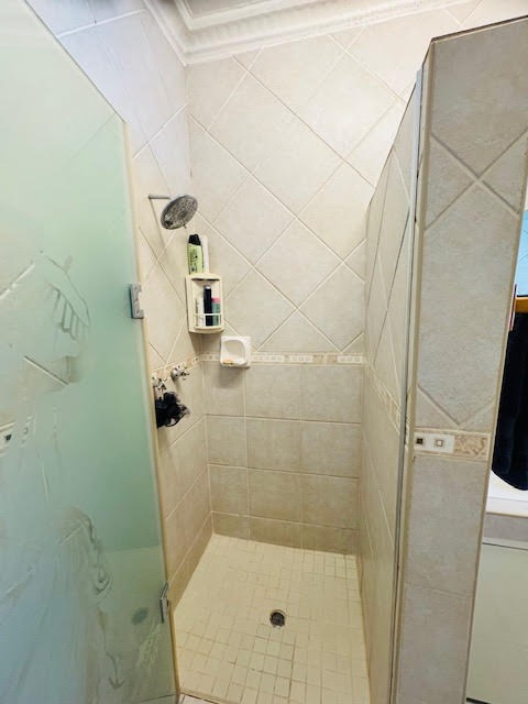• Full modern bathroom (bath, shower, basin, toilet; tiled from floor to ceiling)