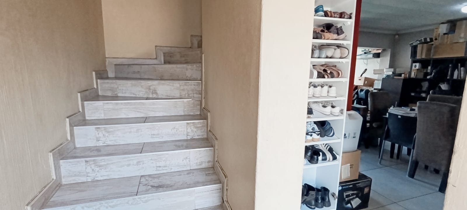 Upstairs, the home offers three generously sized bedrooms. The main bedroom includes a private en-suite bathroom, while the remaining two bedrooms are serviced by a neat and modern shared bathroom.