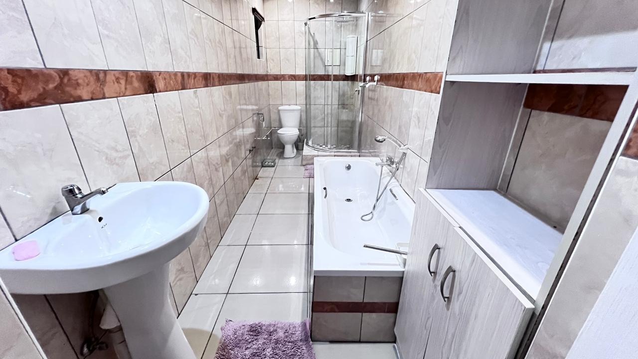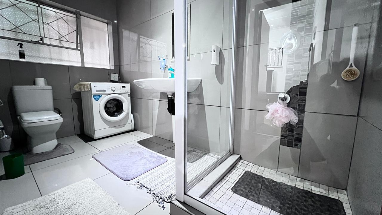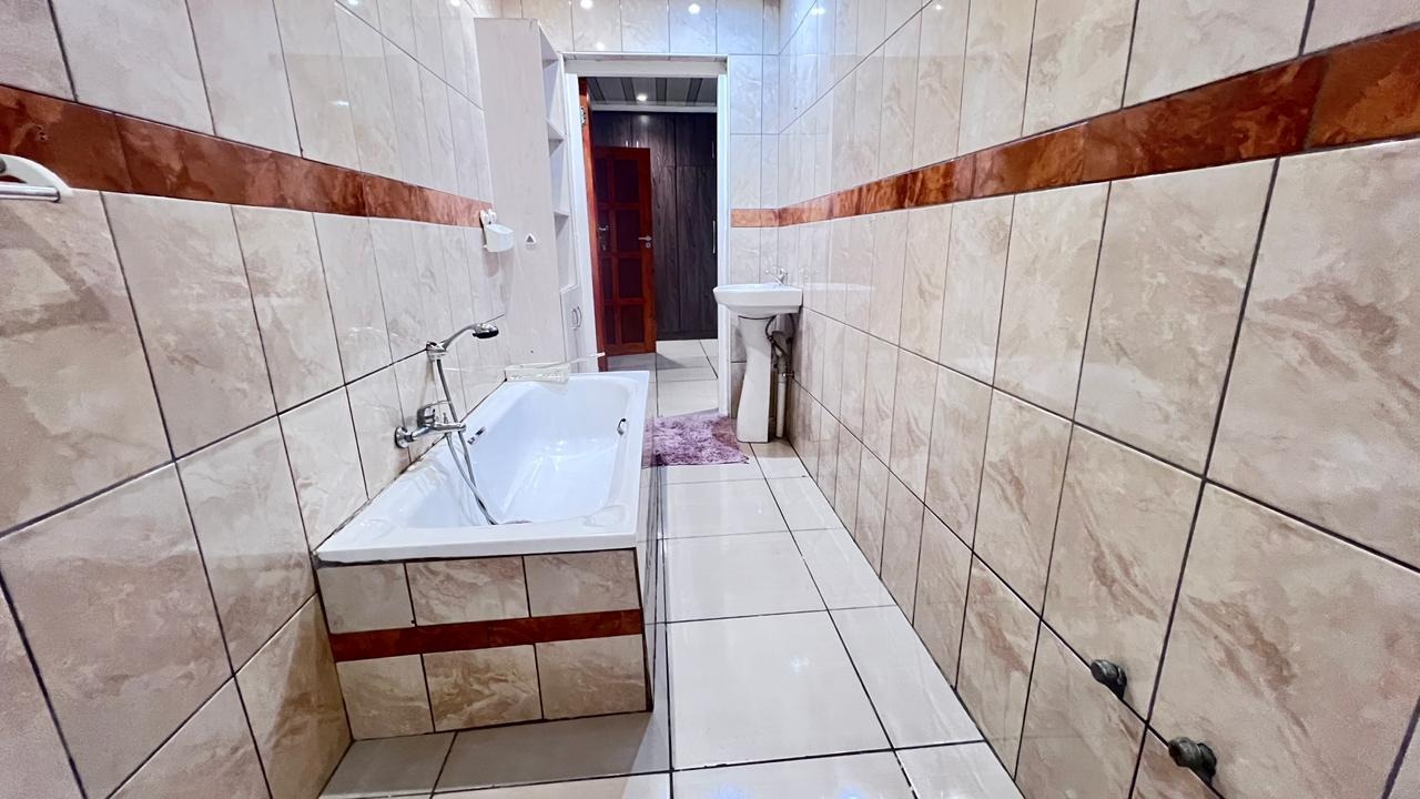 The property also includes a spacious outhouse, perfect for generating rental income or comfortably accommodating extended family. As you enter the outhouse, you are welcomed by a large open-plan lounge and dining area. It offers a huge bedroom with built-in cupboards and a full ensuite bathroom complete with both a shower and bathtub. It also includes a separate, generously sized kitchen with ample cupboard space, making it a fully self-contained unit.