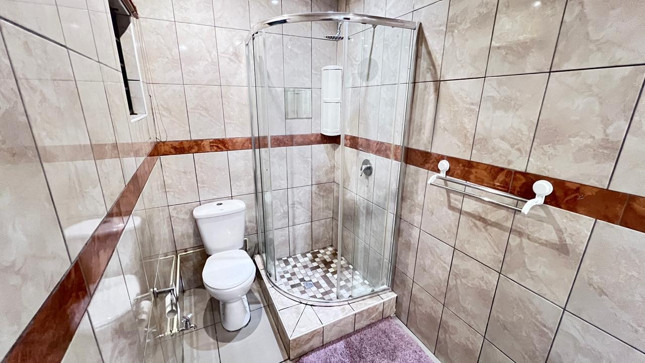 The property also includes a spacious outhouse, perfect for generating rental income or comfortably accommodating extended family. As you enter the outhouse, you are welcomed by a large open-plan lounge and dining area. It offers a huge bedroom with built-in cupboards and a full ensuite bathroom complete with both a shower and bathtub. It also includes a separate, generously sized kitchen with ample cupboard space, making it a fully self-contained unit.