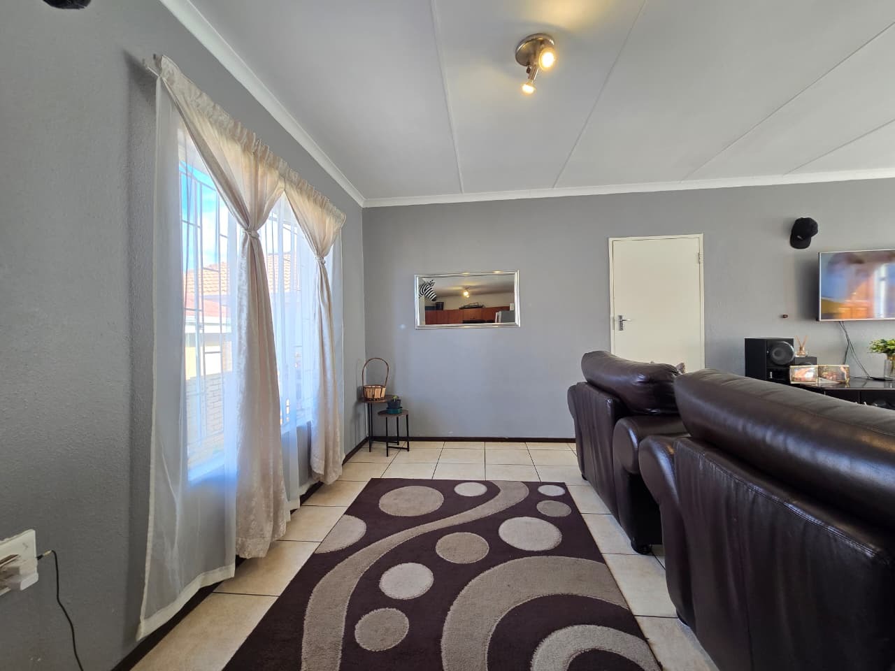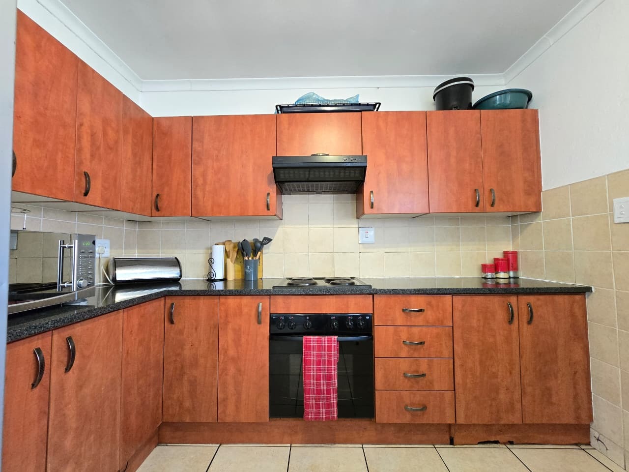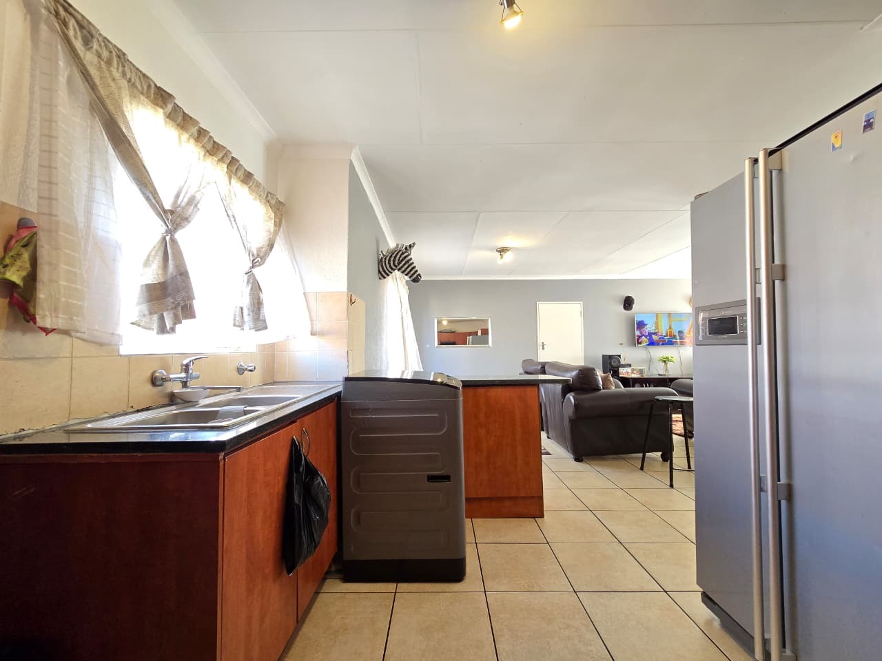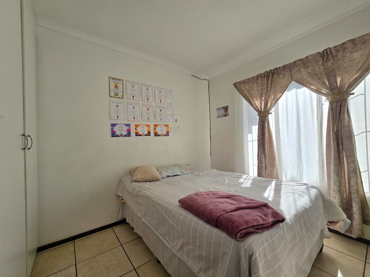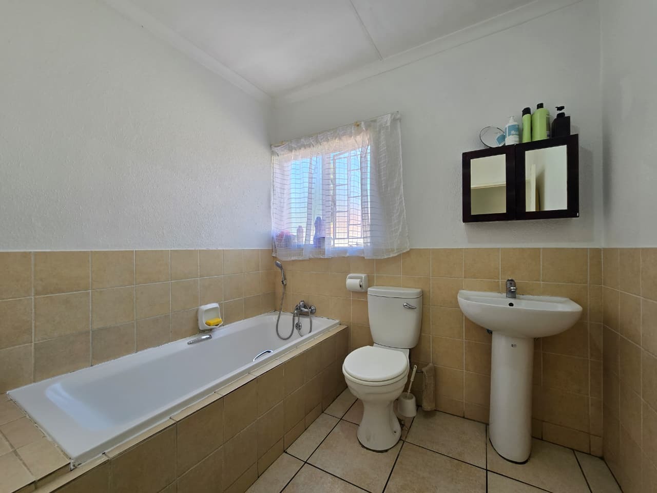 All three bedrooms are bright and tiled, offering low-maintenance living. The main bedroom includes built-in cupboards, while the additional rooms are perfect for kids, guests or a home office. The home includes two bathrooms—one fitted with a bathtub and the other with a shower—providing practical flexibility for family living.
