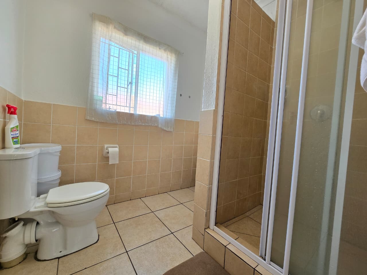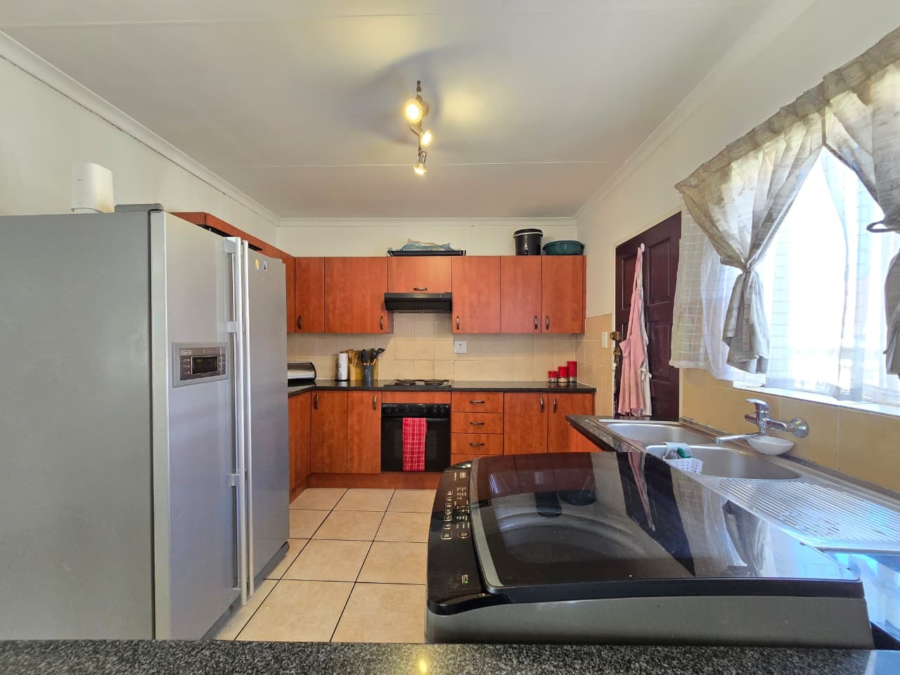 All three bedrooms are bright and tiled, offering low-maintenance living. The main bedroom includes built-in cupboards, while the additional rooms are perfect for kids, guests or a home office. The home includes two bathrooms—one fitted with a bathtub and the other with a shower—providing practical flexibility for family living.