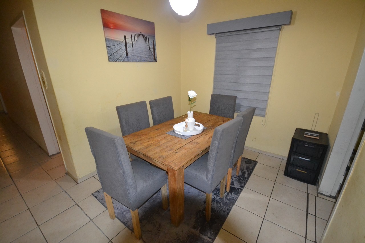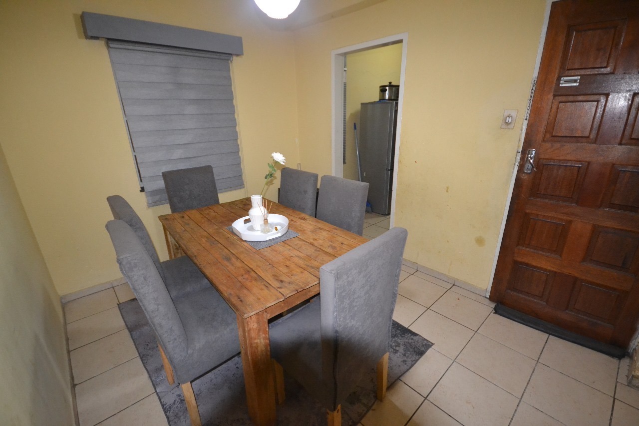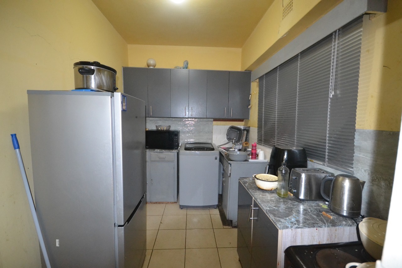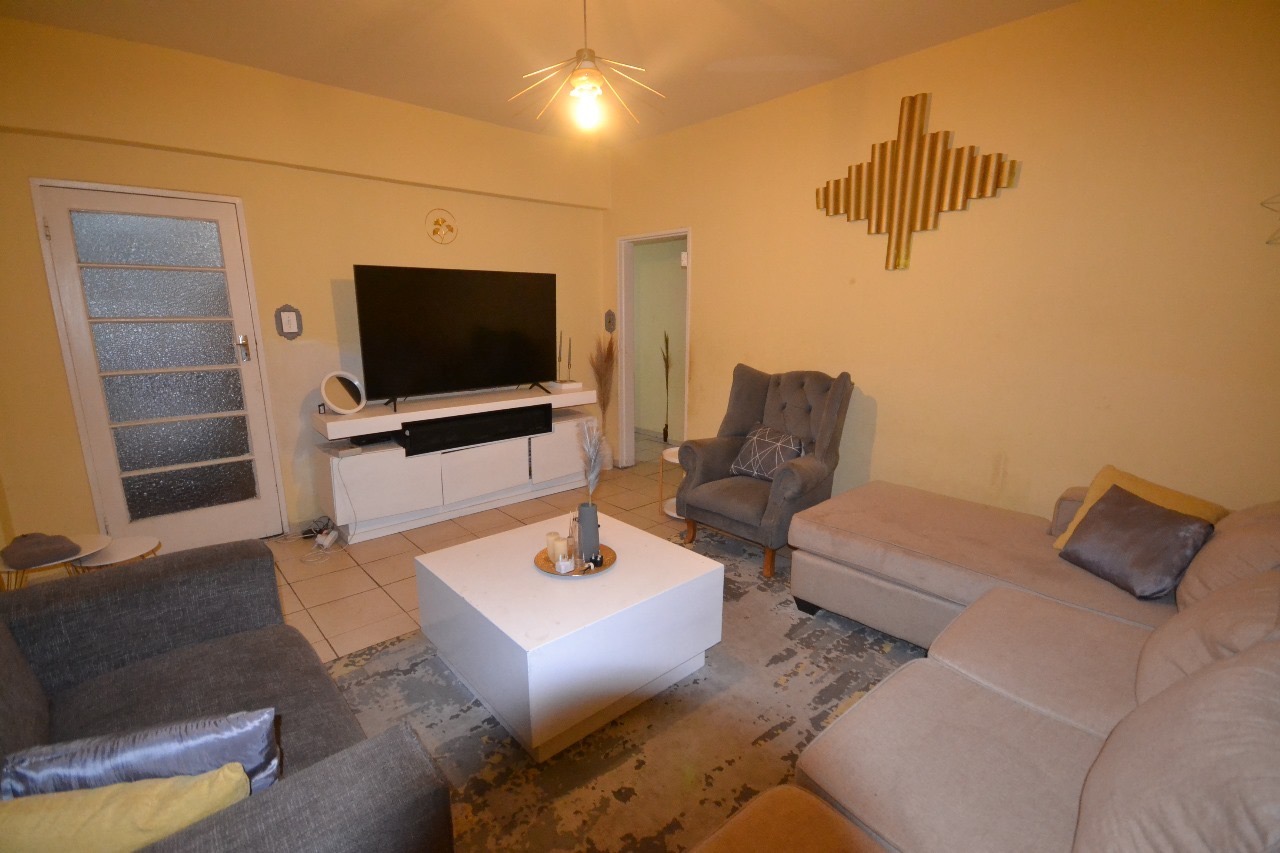 This residential sale offers a practical 2-bedroom apartment situated within a complex in a well-established Johannesburg suburb. The multi-story building features a durable brick exterior, complemented by a green palisade fence and security bars on windows, providing a defined boundary and enhanced safety. While the exterior presents a dated appearance with some peeling paint, it offers a solid foundation for a comfortable home. Inside, the apartment spans 78.00 sqm, featuring a spacious lounge area with tiled flooring, a large sectional sofa, and an area rug defining the seating zone. The adjacent dining area, also with tiled flooring, includes a rustic wooden table and six upholstered chairs, alongside a window fitted with a modern grey blind. The compact kitchen is equipped with modern grey cabinetry, essential appliances such as a refrigerator, washing machine, microwave, and stove, and benefits from a large window for natural light. The property comprises two comfortable bedrooms and a functional bathroom. The bathroom, featuring a bathtub, toilet, and basin, has tiled flooring and partially tiled walls, offering essential amenities. While the interior spaces show signs of wear and could benefit from updating, they provide a blank canvas for personalization. Further enhancing convenience, the apartment includes one dedicated parking space. Security features include a palisade fence and security bars on windows. This property represents an excellent opportunity for those seeking a home with potential for renovation and customisation in a community-oriented setting within Johannesburg. Key Features: * 2 Bedrooms * 1 Bathroom * 1 Lounge * 1 Kitchen * 1 Parking Bay * 78 sqm Floor Size * Complex Living * Tiled Flooring * Fenced Property
