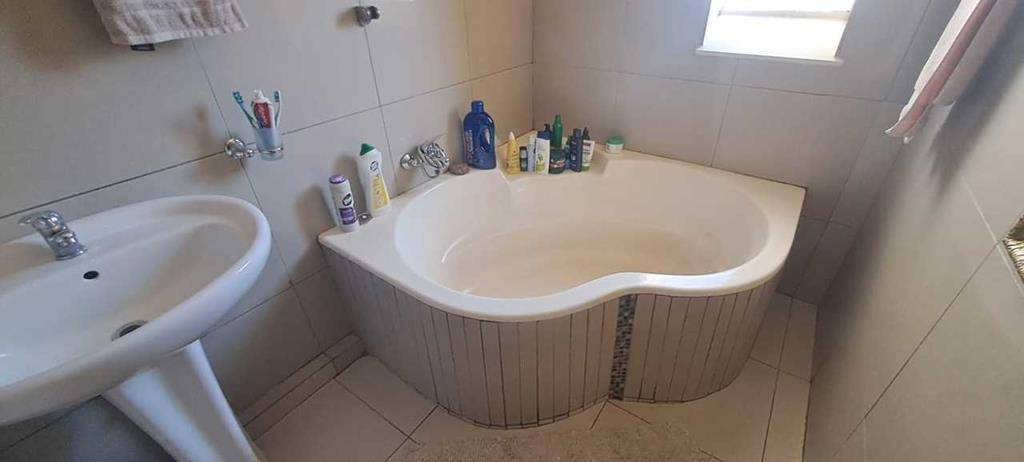 The bathroom is modern and well-finished, featuring a corner tub and neat tiling, creating a space that feels fresh and contemporary. A separate toilet adds extra convenience for family and guests.