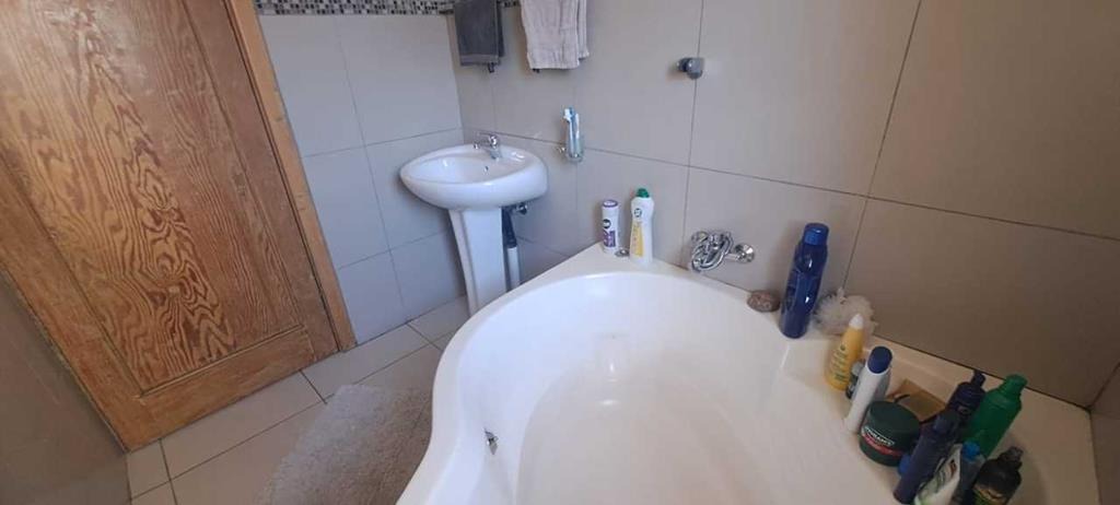 The bathroom is modern and well-finished, featuring a corner tub and neat tiling, creating a space that feels fresh and contemporary. A separate toilet adds extra convenience for family and guests.