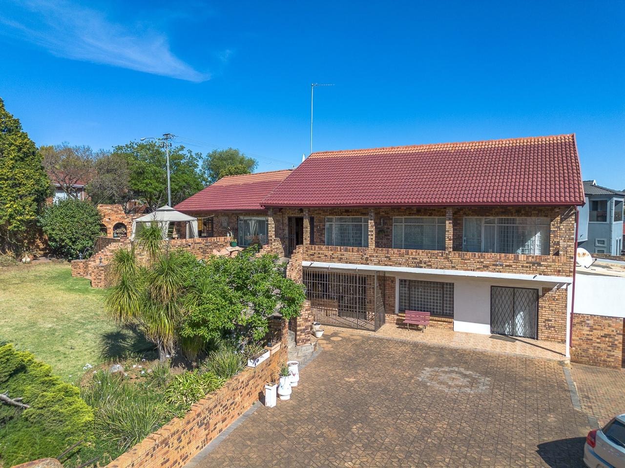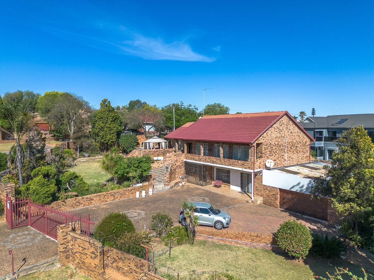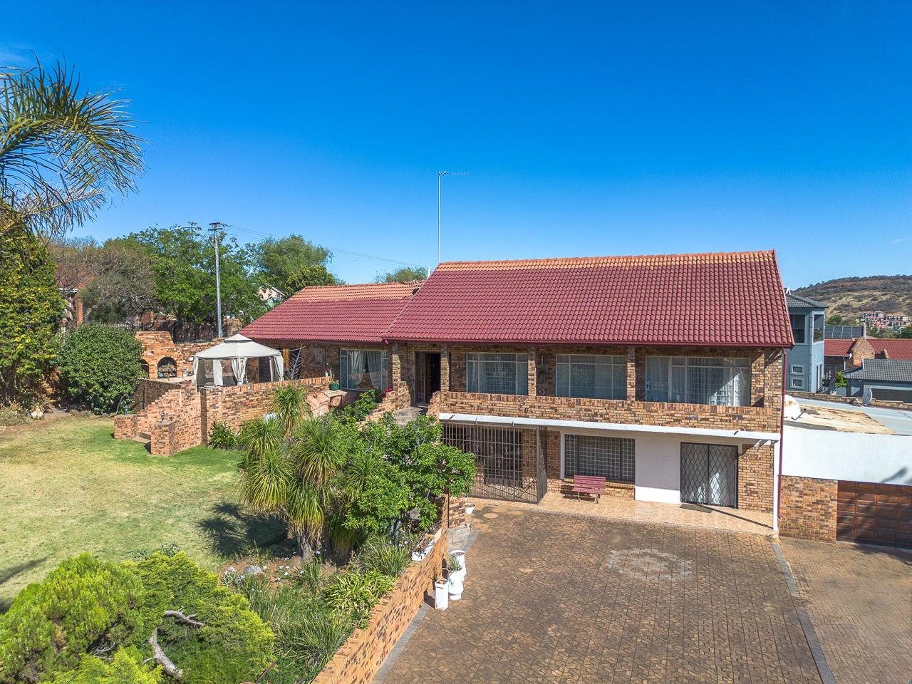 Discover this substantial multi-level brick home, offering generous space and a warm, traditional aesthetic in the established suburb of Suideroord, Johannesburg. The property immediately impresses with its prominent outdoor entertainment area, featuring a charming gazebo and a spacious patio, all set within an established, tiered garden on a large 1469 sqm erf. The interior boasts a rustic charm, evident in the exposed brick walls and warm wooden slat ceilings found throughout the living areas. With two lounges and a dedicated dining room, there is ample space for both relaxation and entertaining. The spacious kitchen is a highlight, featuring extensive wooden cabinetry, ample counter space, and a functional central island with a stovetop, perfect for culinary enthusiasts. Accommodation comprises four comfortable bedrooms and two well-appointed bathrooms, providing practical living arrangements for a family. The design ensures plenty of storage and functional spaces, maintaining the home's cohesive traditional style. Outdoor living is a key feature, with the property offering direct access to the patio and garden, ideal for enjoying the South African climate. Practical amenities include four garages, ensuring secure parking and additional storage, complemented by extensive paving. The property also benefits from a lapa, perfect for outdoor gatherings. Adding to its versatility, this home includes staff quarters and a flatlet, providing flexible living options or potential rental income. Situated in Suideroord, this residential sale offers a metropolitan lifestyle with convenient access to city amenities. Key Features: * 4 Bedrooms, 2 Bathrooms * 2 Lounges, 1 Dining Room * Spacious Kitchen with Island * 4 Garages * Outdoor Entertainment Area with Gazebo and Patio * Established, Tiered Garden * Staff Quarters and Flatlet * Lapa and Paving * 1469 sqm Erf Size
