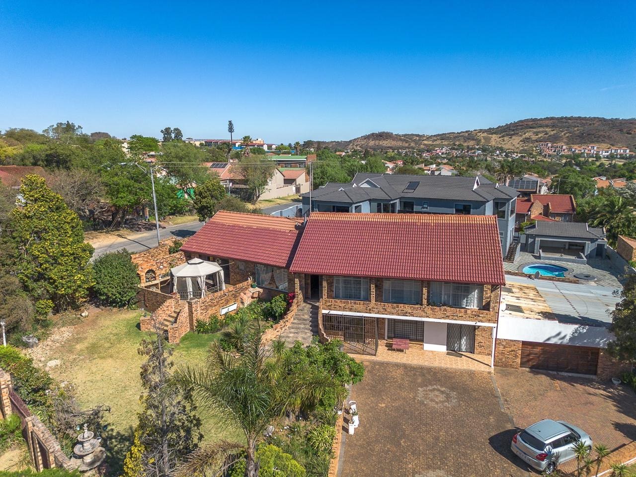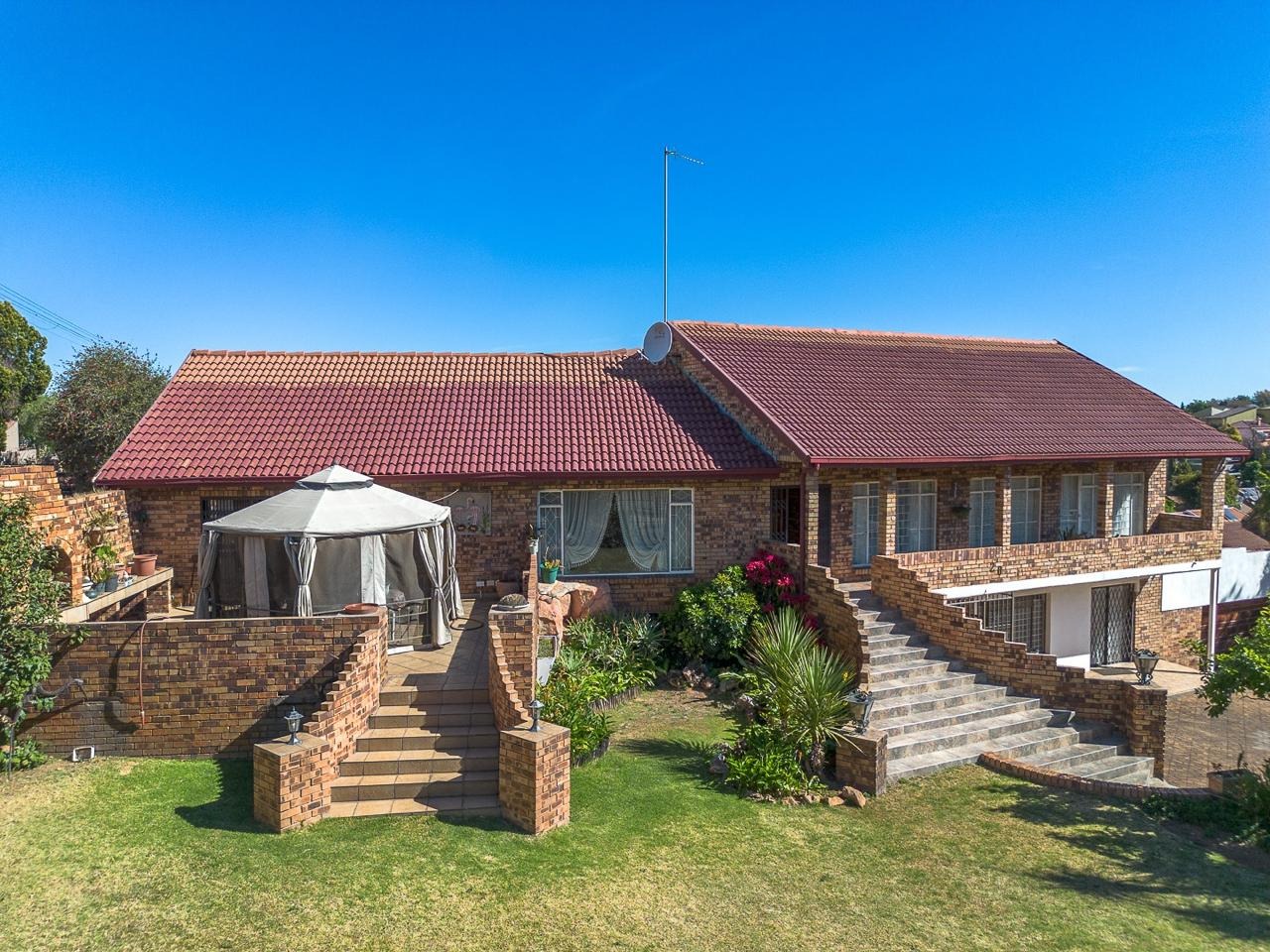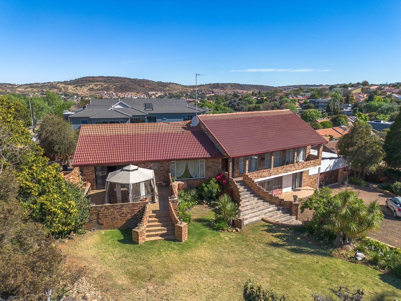 Discover this substantial multi-level brick home, offering generous space and a warm, traditional aesthetic in the established suburb of Suideroord, Johannesburg. The property immediately impresses with its prominent outdoor entertainment area, featuring a charming gazebo and a spacious patio, all set within an established, tiered garden on a large 1469 sqm erf. The interior boasts a rustic charm, evident in the exposed brick walls and warm wooden slat ceilings found throughout the living areas. With two lounges and a dedicated dining room, there is ample space for both relaxation and entertaining. The spacious kitchen is a highlight, featuring extensive wooden cabinetry, ample counter space, and a functional central island with a stovetop, perfect for culinary enthusiasts. Accommodation comprises four comfortable bedrooms and two well-appointed bathrooms, providing practical living arrangements for a family. The design ensures plenty of storage and functional spaces, maintaining the home's cohesive traditional style. Outdoor living is a key feature, with the property offering direct access to the patio and garden, ideal for enjoying the South African climate. Practical amenities include four garages, ensuring secure parking and additional storage, complemented by extensive paving. The property also benefits from a lapa, perfect for outdoor gatherings. Adding to its versatility, this home includes staff quarters and a flatlet, providing flexible living options or potential rental income. Situated in Suideroord, this residential sale offers a metropolitan lifestyle with convenient access to city amenities. Key Features: * 4 Bedrooms, 2 Bathrooms * 2 Lounges, 1 Dining Room * Spacious Kitchen with Island * 4 Garages * Outdoor Entertainment Area with Gazebo and Patio * Established, Tiered Garden * Staff Quarters and Flatlet * Lapa and Paving * 1469 sqm Erf Size