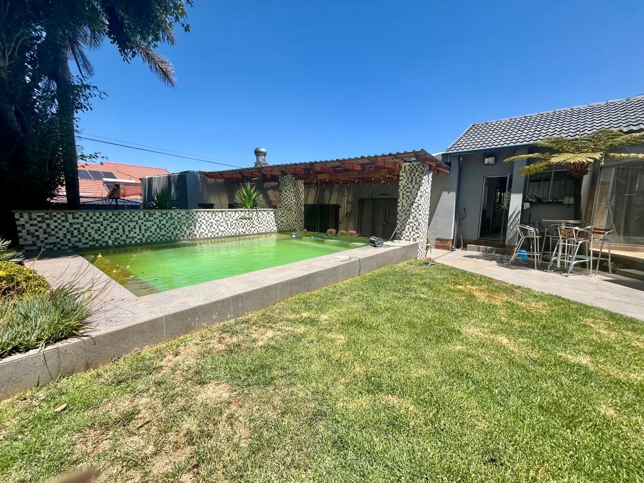 Step outside to enjoy a lovely garden and a sparkling swimming pool, perfect for relaxing weekends or summer entertaining. The property also includes staff quarters, adding extra convenience.
