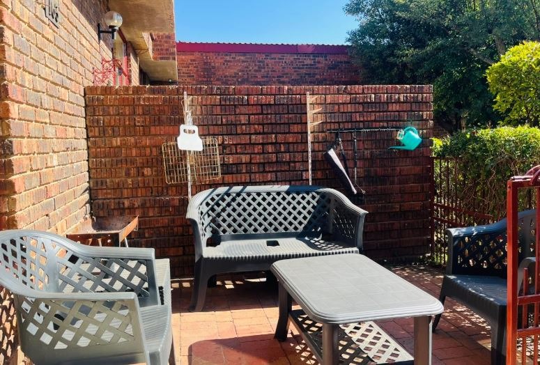 Features include open plan living and dining area, modern granite kitchen, private enclosed patio for one small dog, spacious bedrooms with built in cupboards, and two bathrooms, one with shower, one with corner bath.