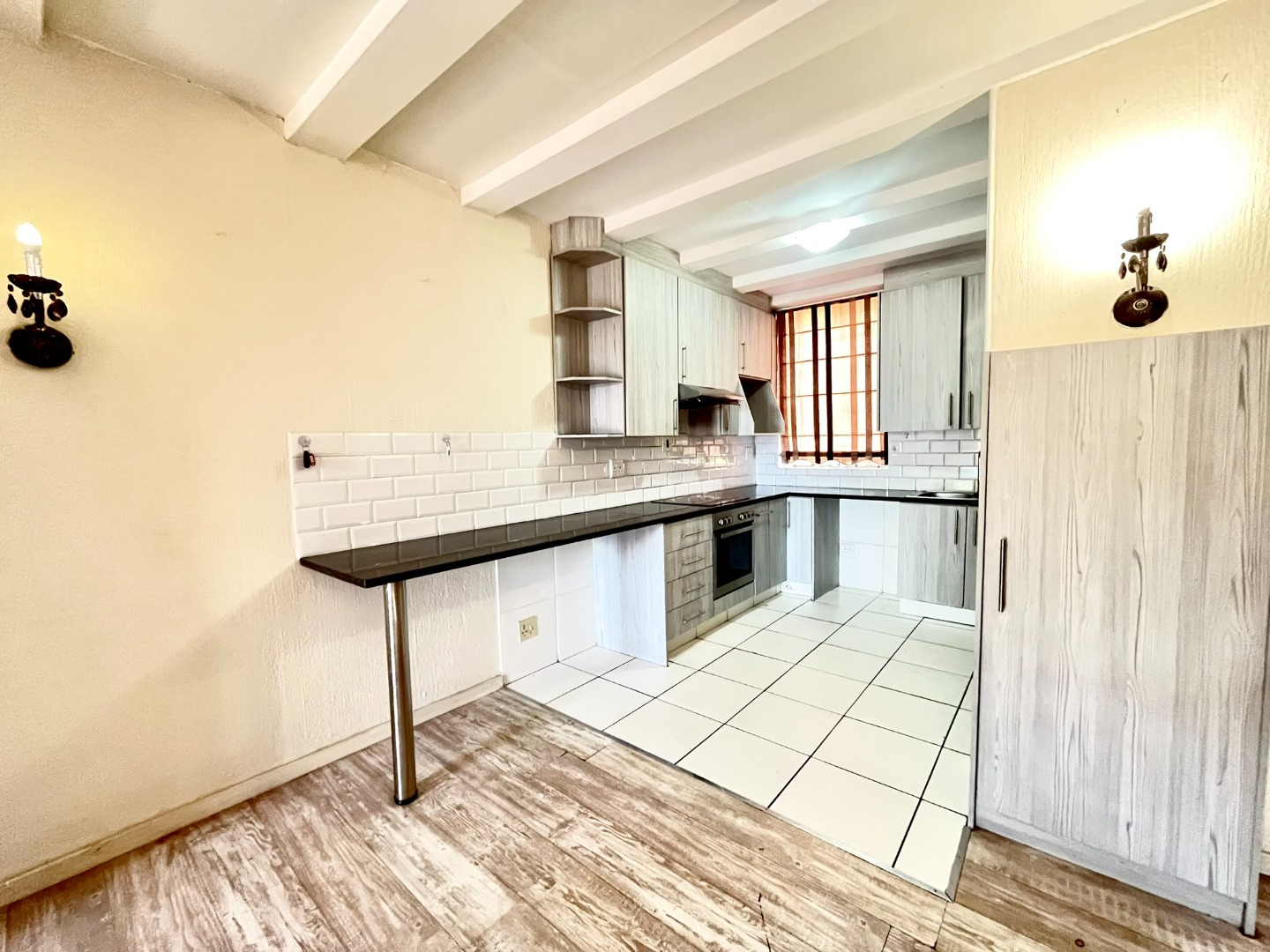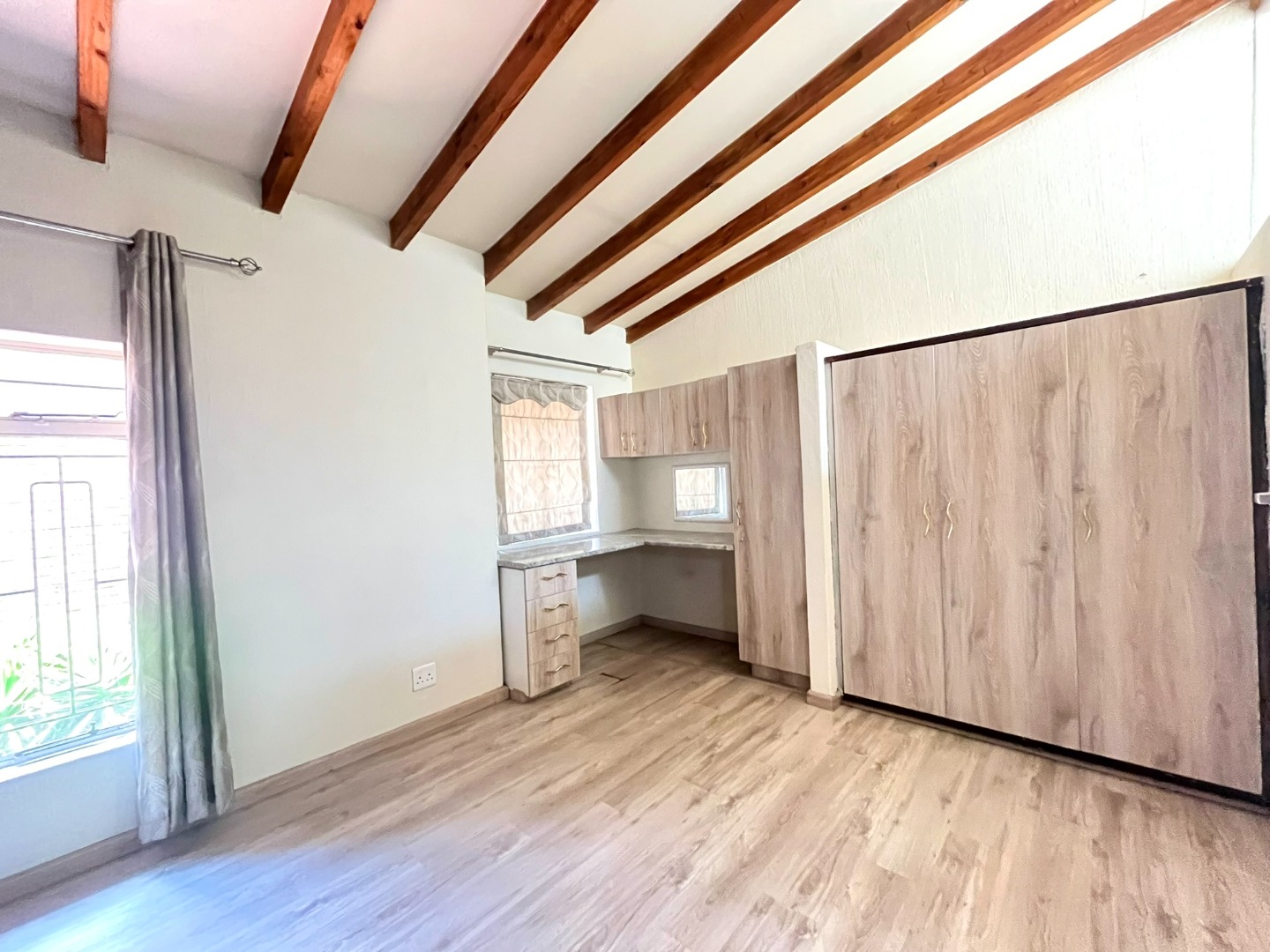 The open-plan living and dining area is light-filled and welcoming, flowing effortlessly into a modern kitchen with granite countertops, ample storage, and space for all essential appliances. Step outside to a cosy, enclosed patio — perfect for morning coffee, entertaining friends with a braai or enjoying quiet time with your furry companion.
