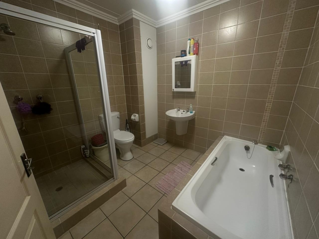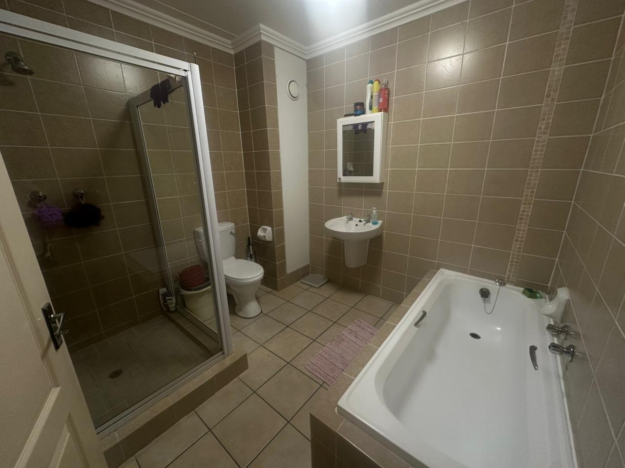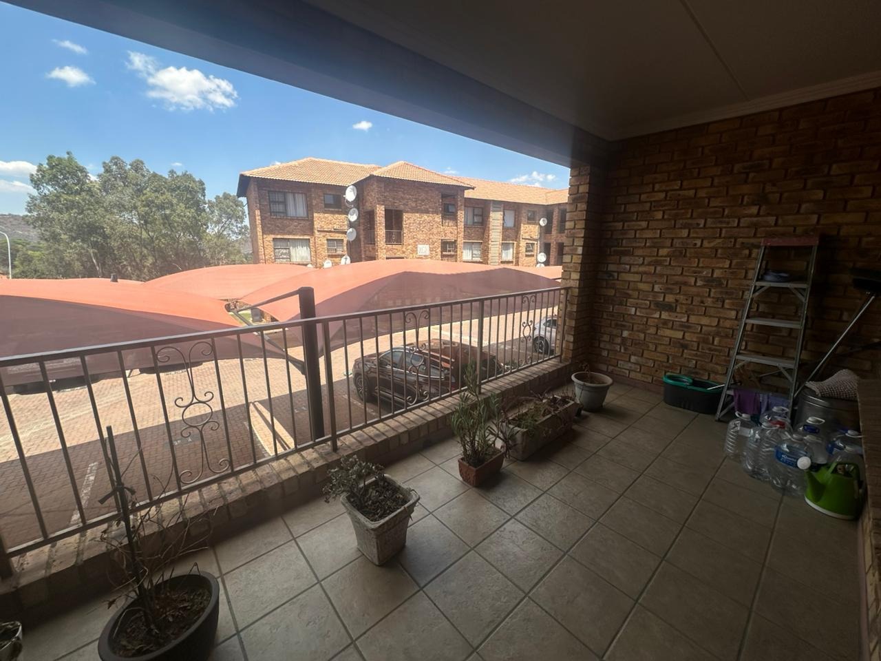 Both bedrooms feature built-in cupboards, ensuring plenty of storage, while the full bathroom includes both a bath and shower for added convenience. The complex is secure and well maintained, with 24-hour access control, covered parking, and additional visitors’ bays. Residents enjoy access to a communal swimming pool and entertainment area, creating a welcoming community feel.
