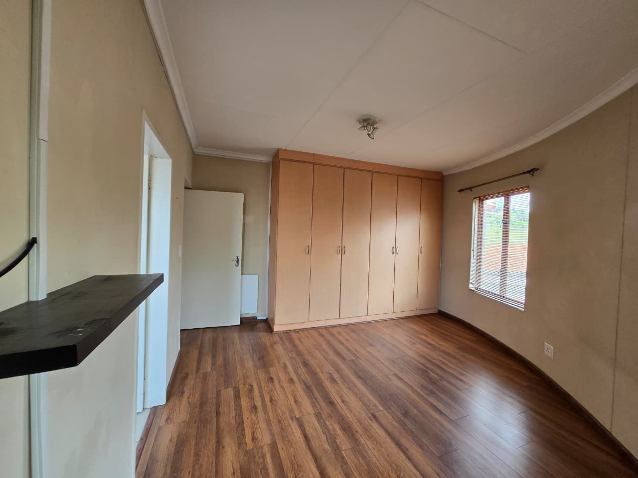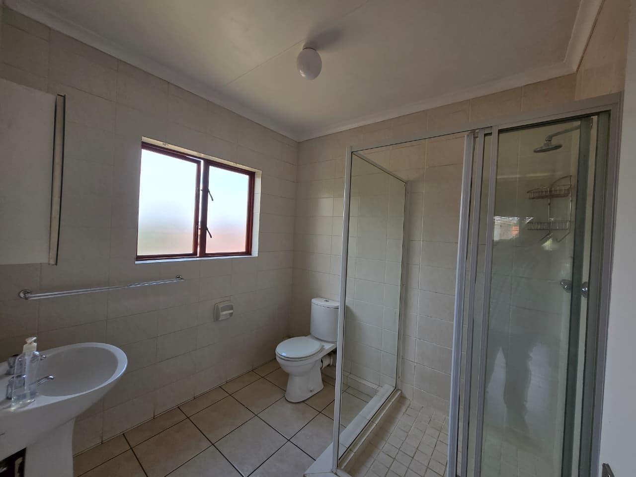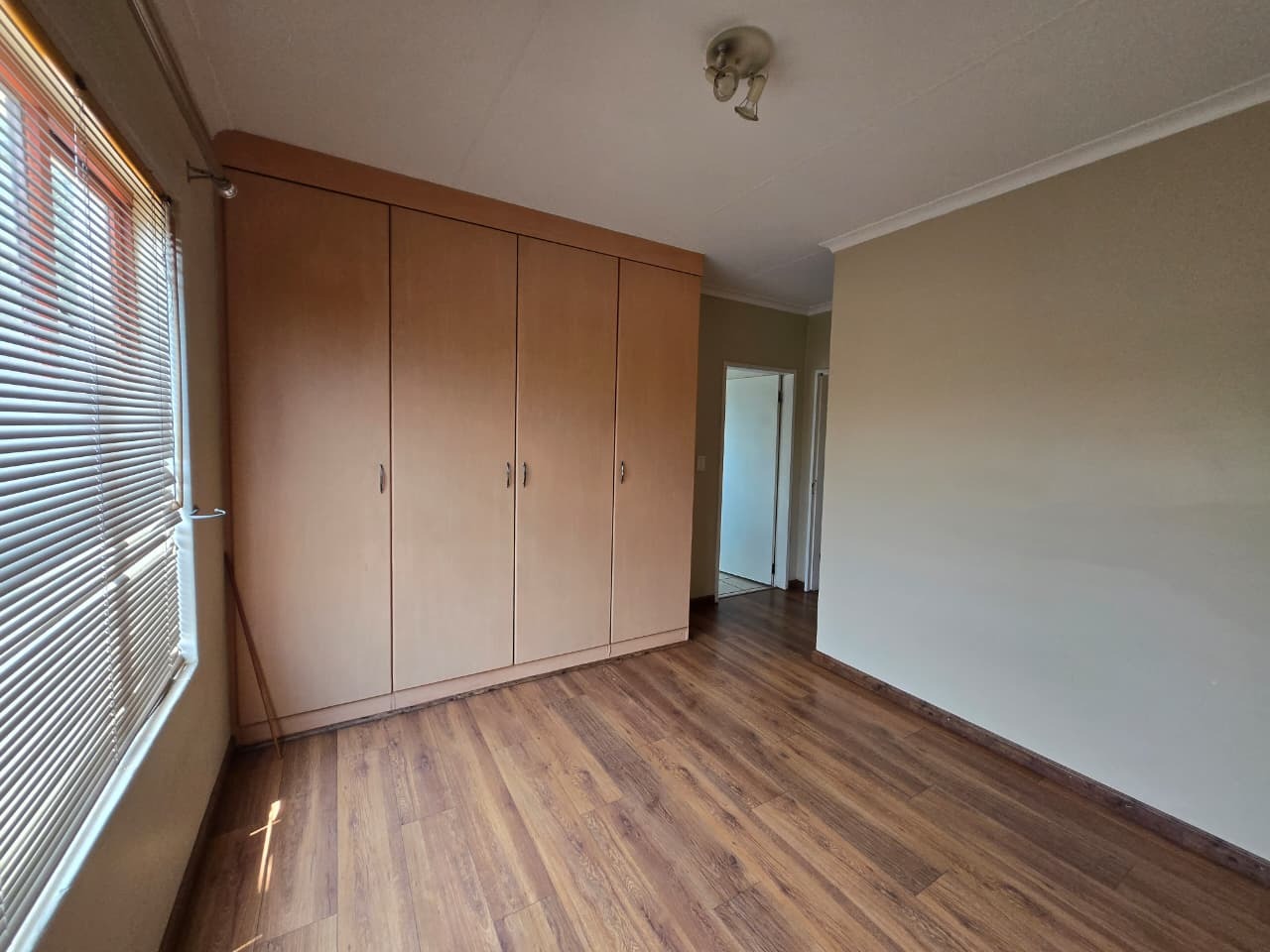 The fully fitted kitchen offers ample cupboard space and a modern layout, perfectly designed for easy meal preparation. The unit is fitted with burglar bars for extra peace of mind and forms part of a secure complex with automated gates, neat paving, and a dedicated carport.
