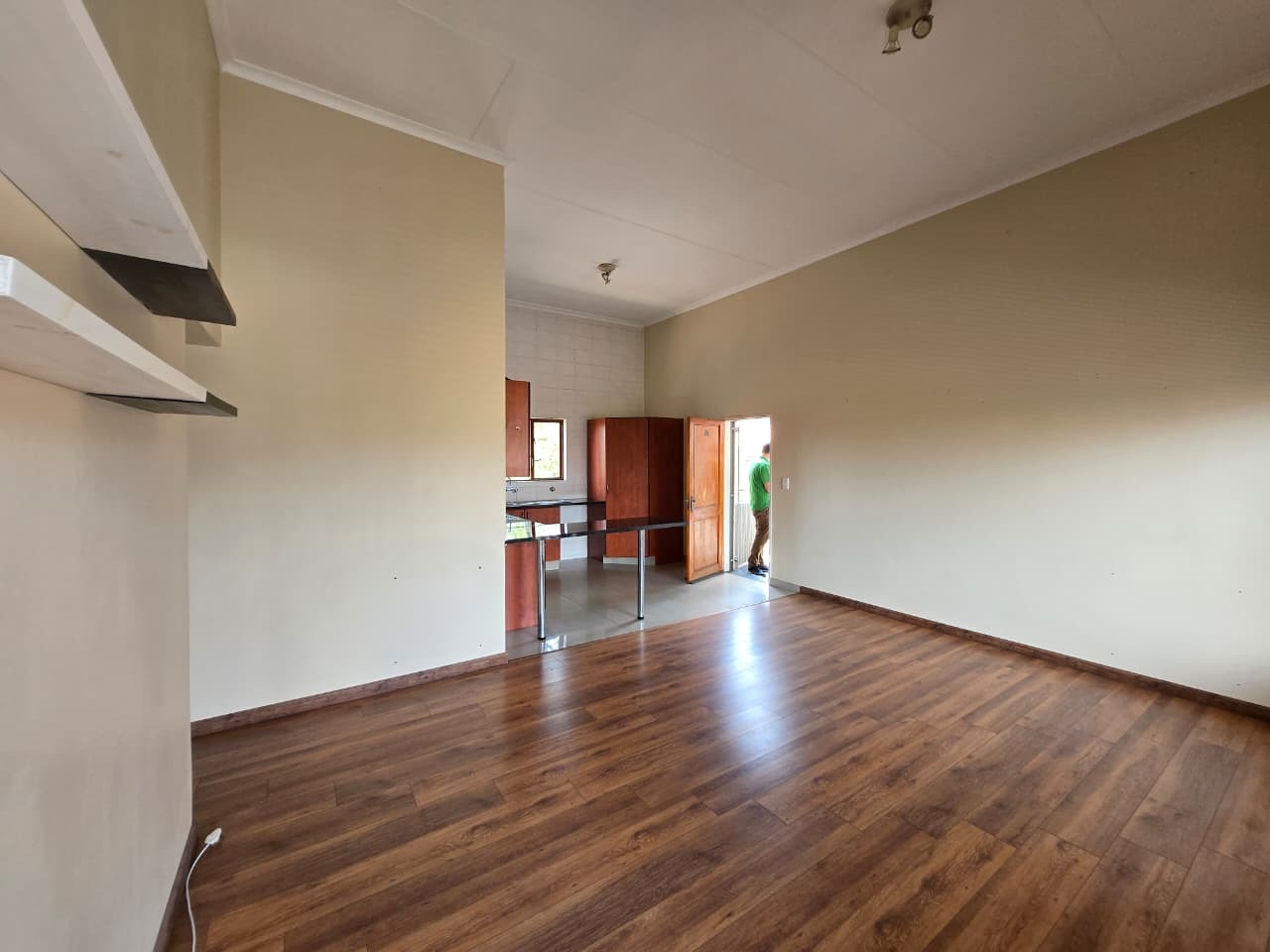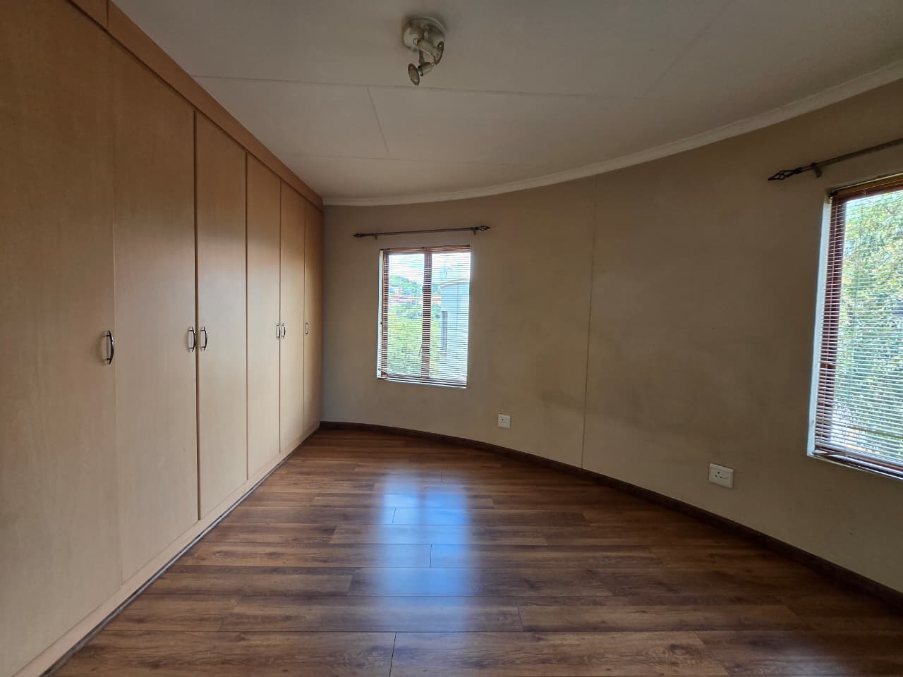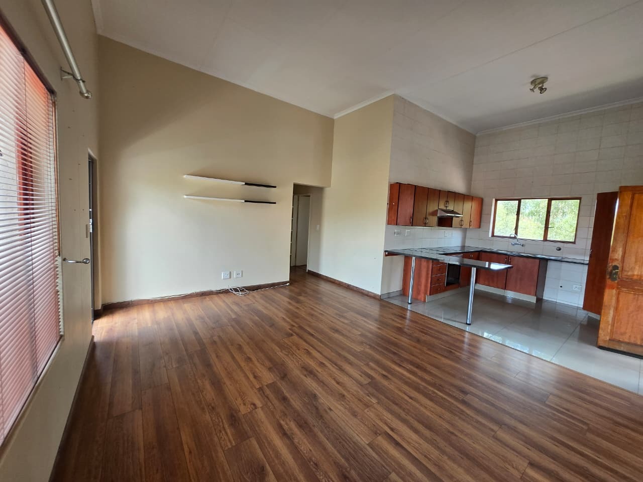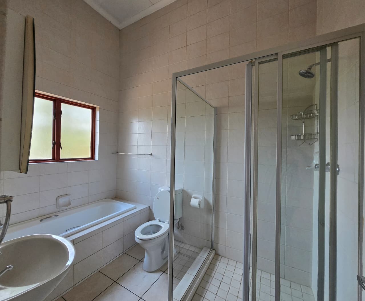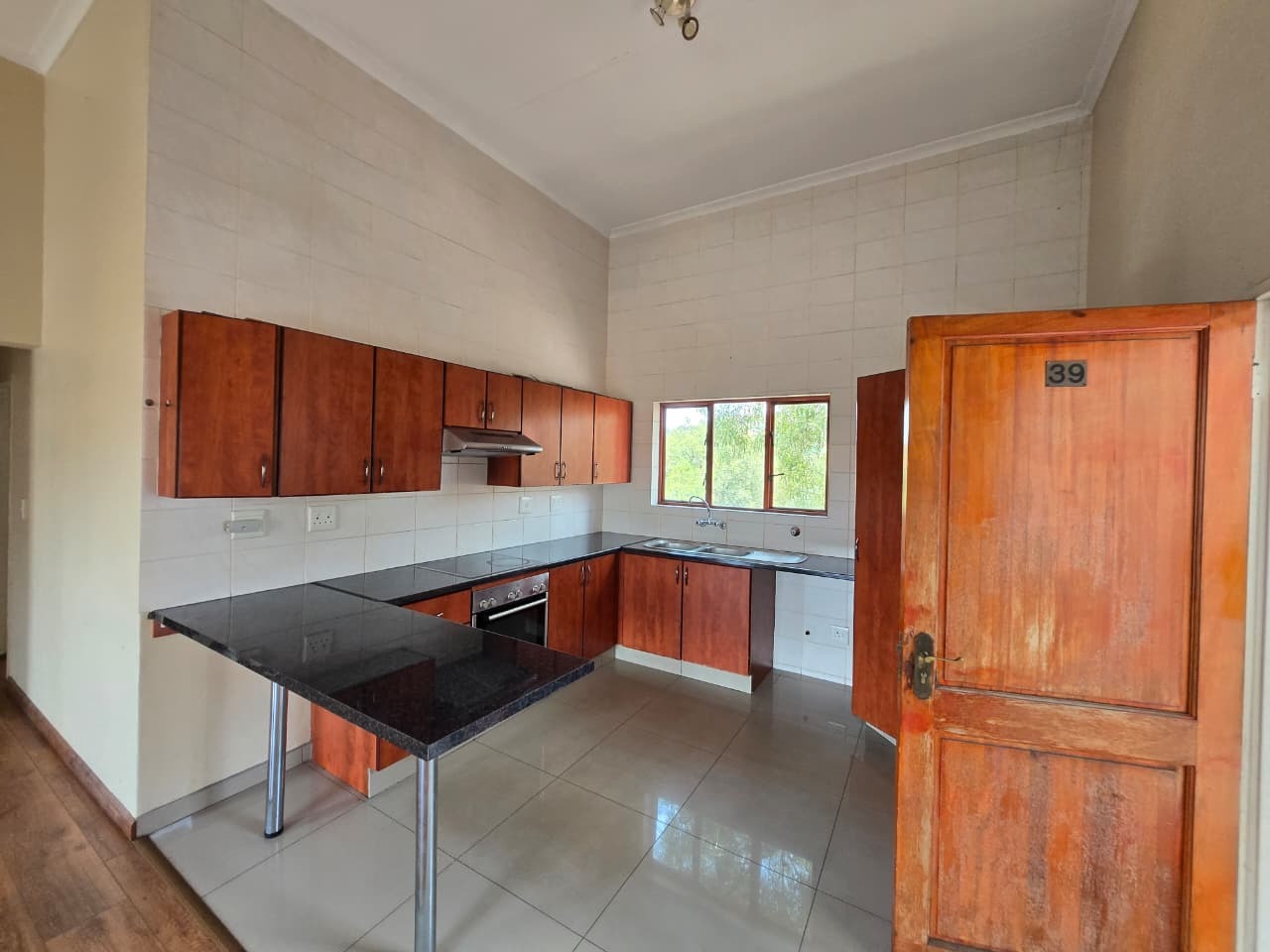 The fully fitted kitchen offers ample cupboard space and a modern layout, perfectly designed for easy meal preparation. The unit is fitted with burglar bars for extra peace of mind and forms part of a secure complex with automated gates, neat paving, and a dedicated carport.