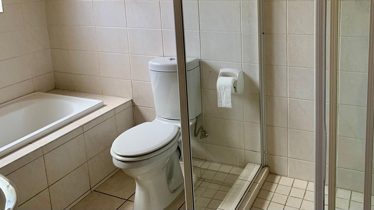 Both bedrooms are generously sized and fitted with built-in cupboards, ensuring ample storage and a comfortable retreat. The bathroom is clean and well-appointed, offering both a bathtub and shower for convenience.