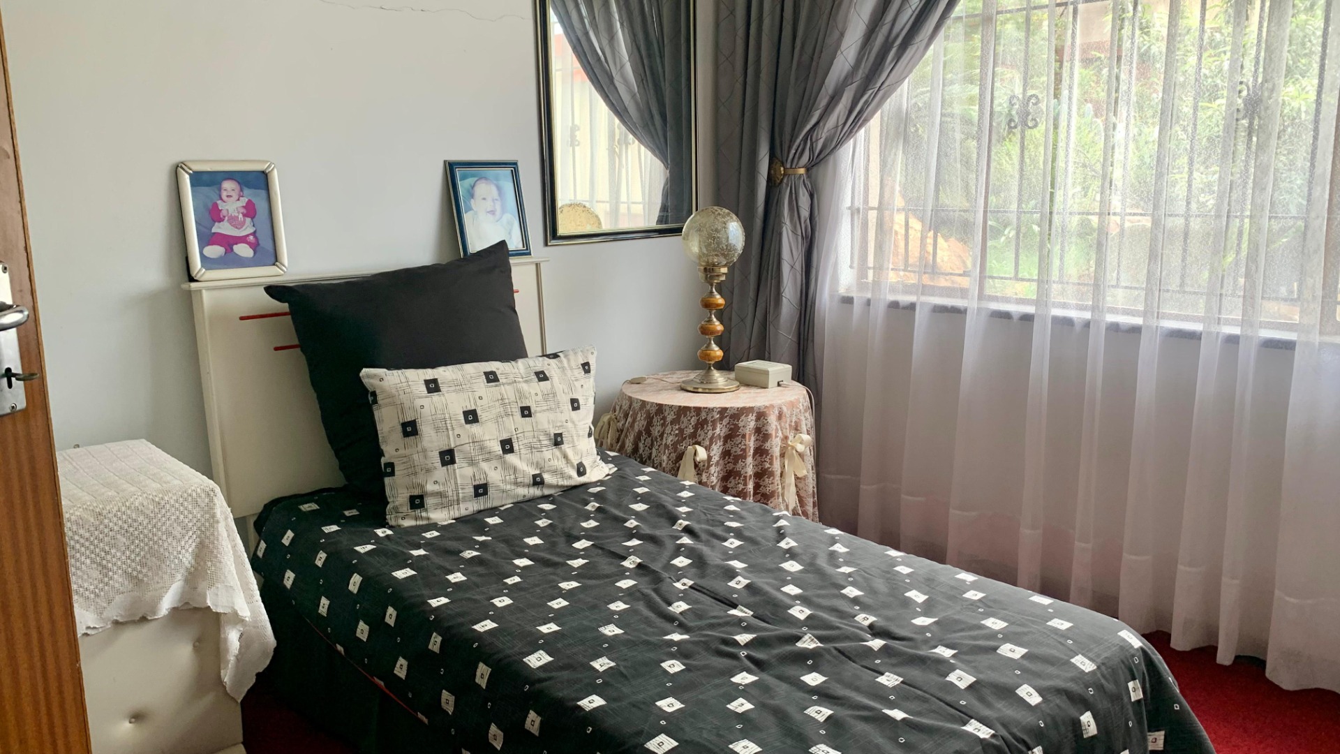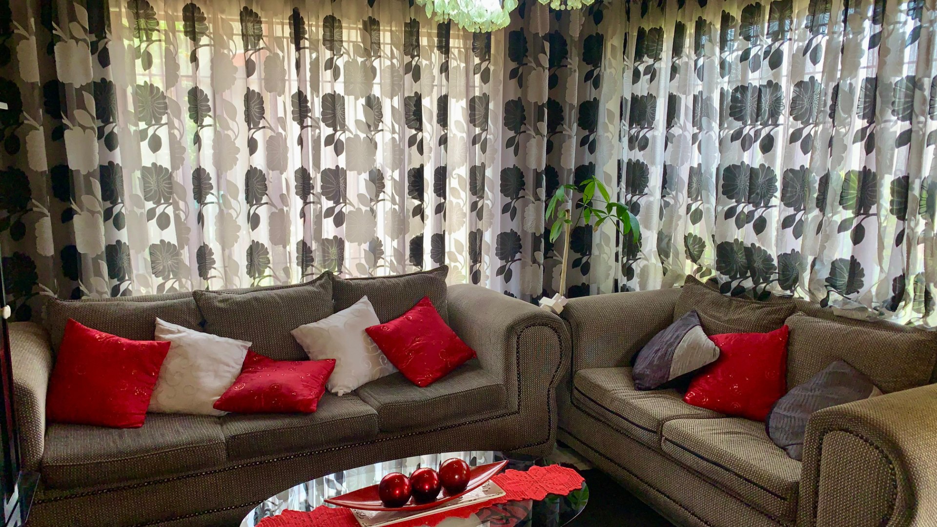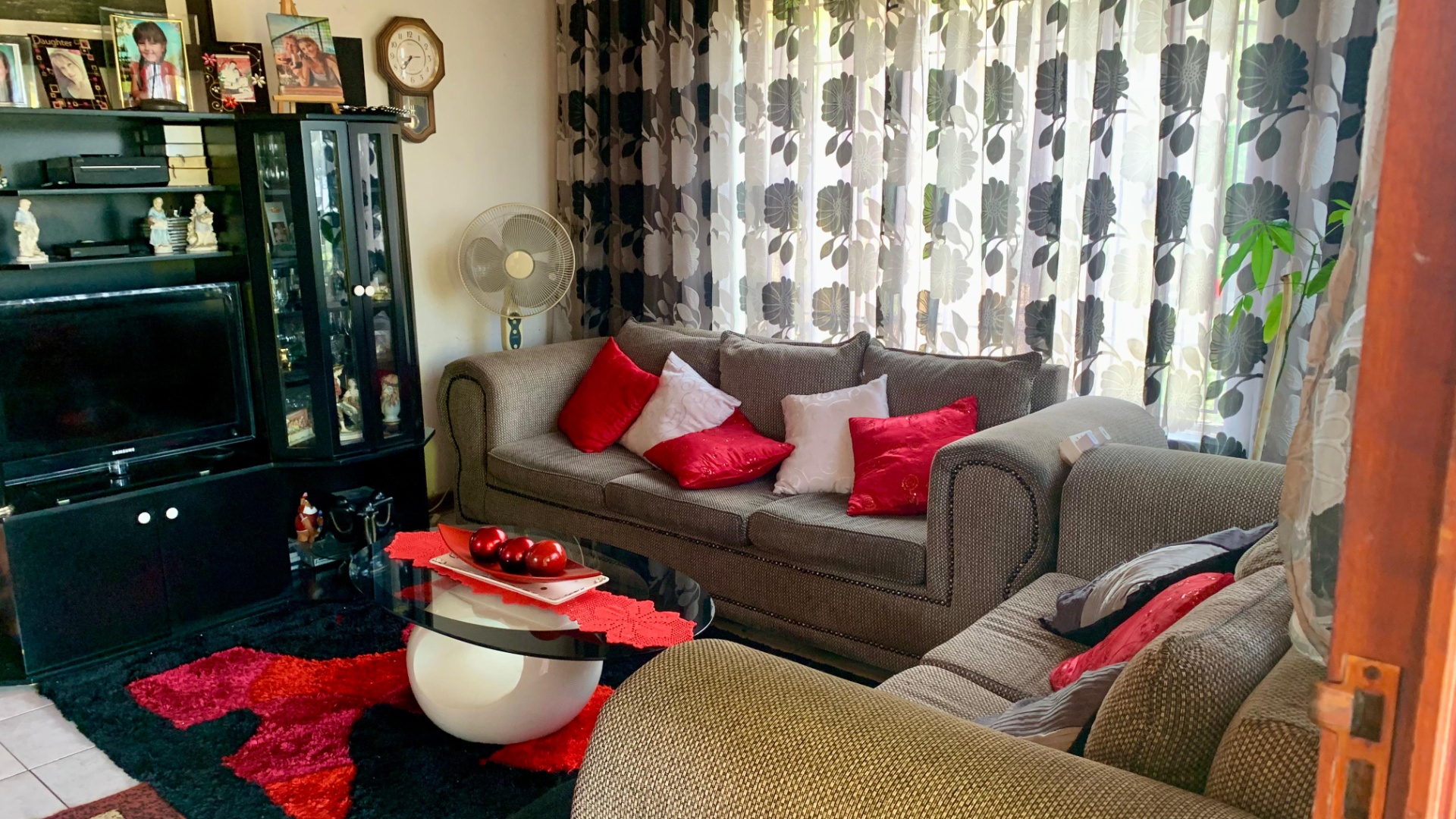 Inside, the home opens to a generous living area filled with natural light, enhanced by decorative window finishes and soft, elegant curtains. The lounge provides a cozy yet spacious setting for family relaxation, while the dining room offers a refined space for hosting, complete with beautiful draping and classic finishes. The home flows with comfort, personality and practicality—ideal for a family who appreciates both charm and functionality.
