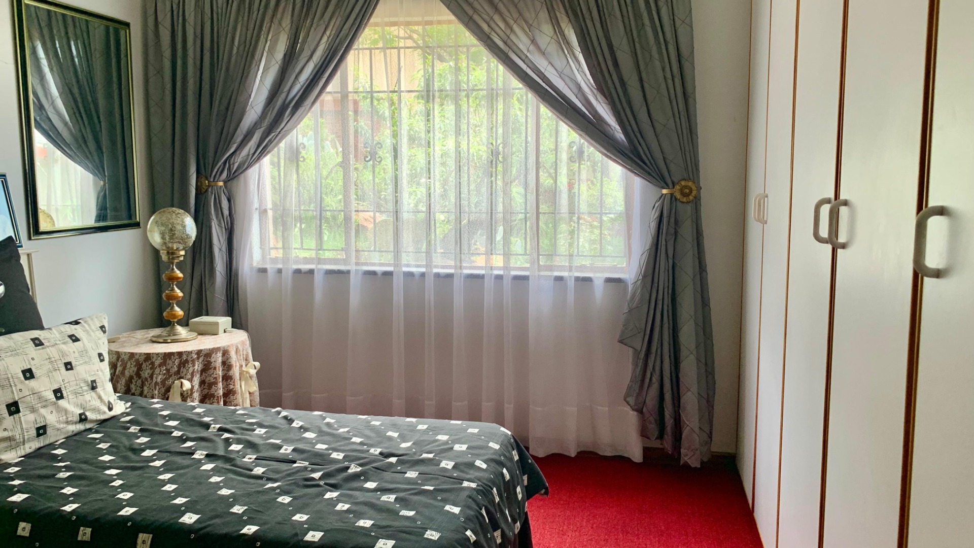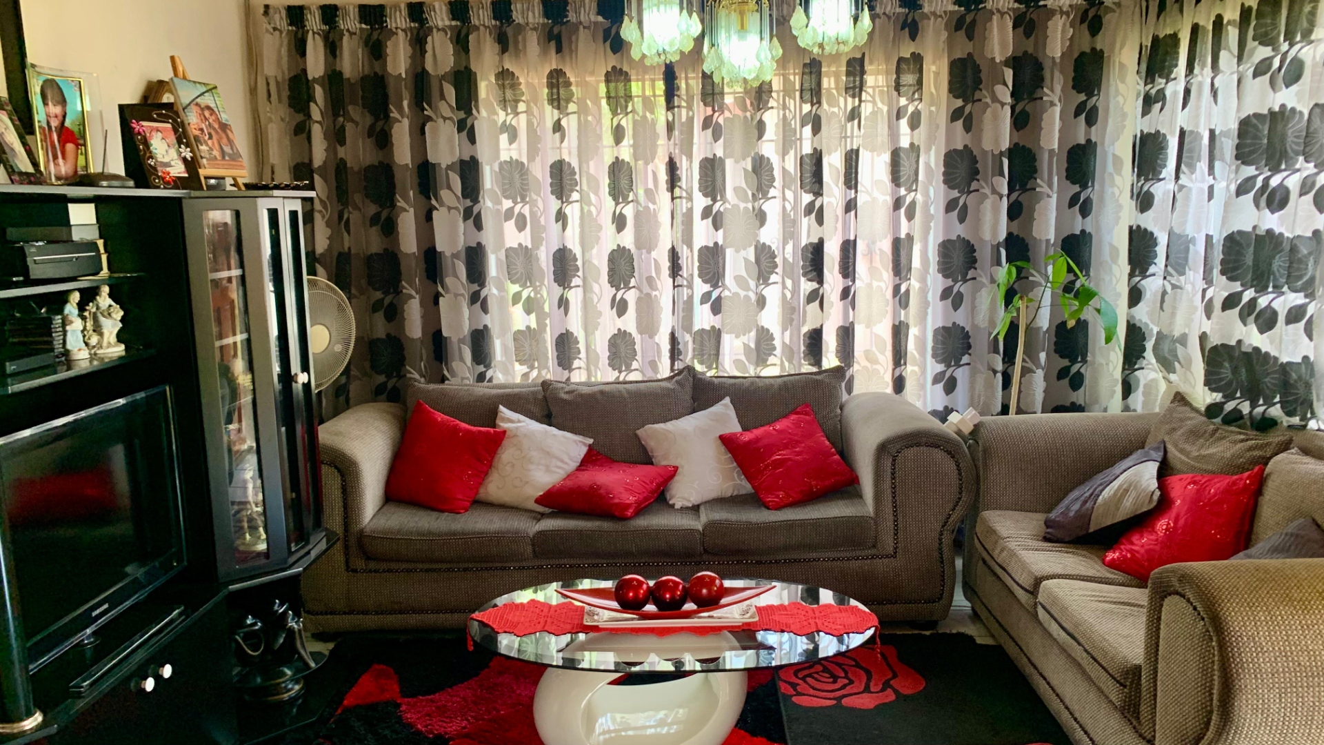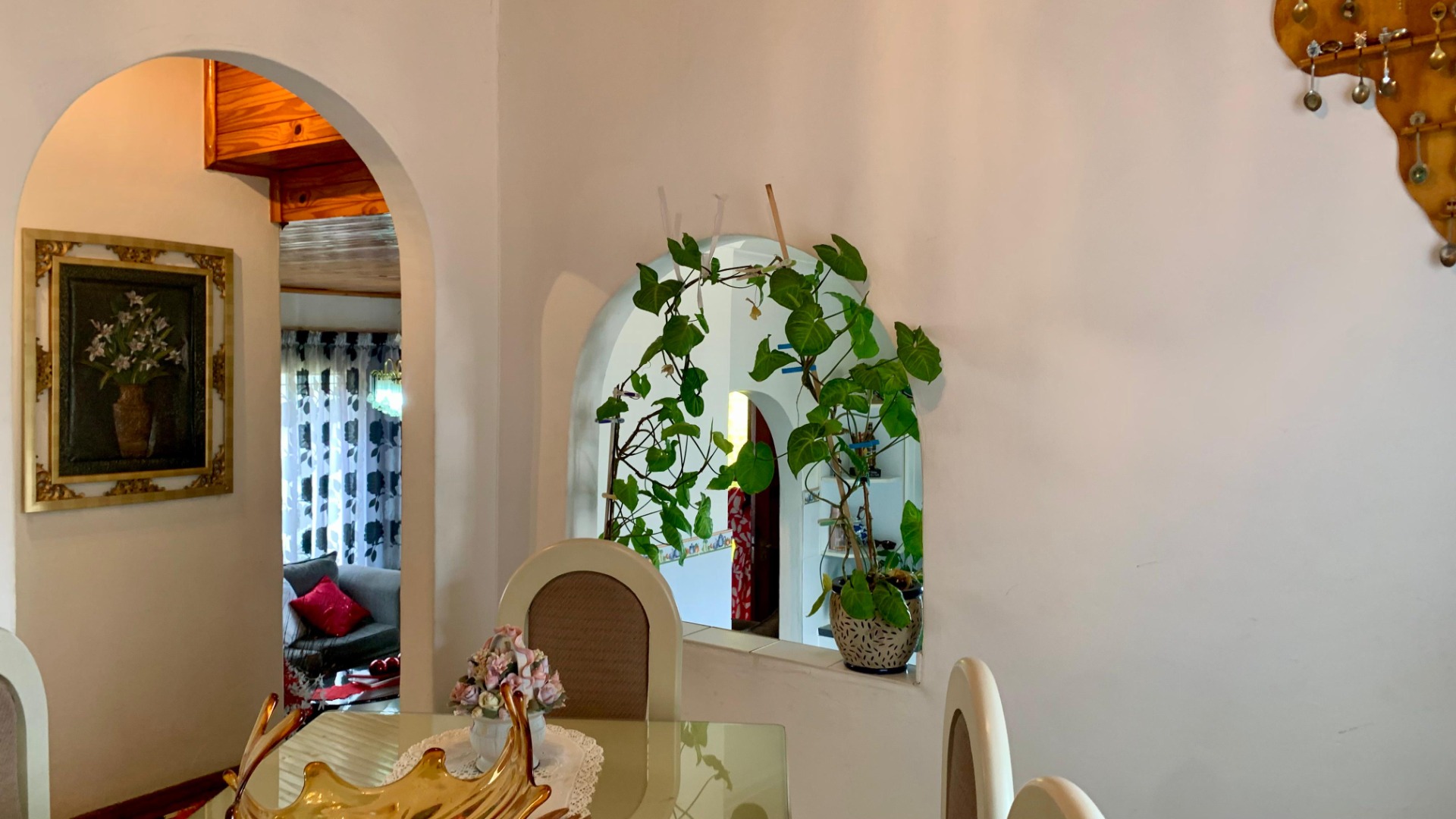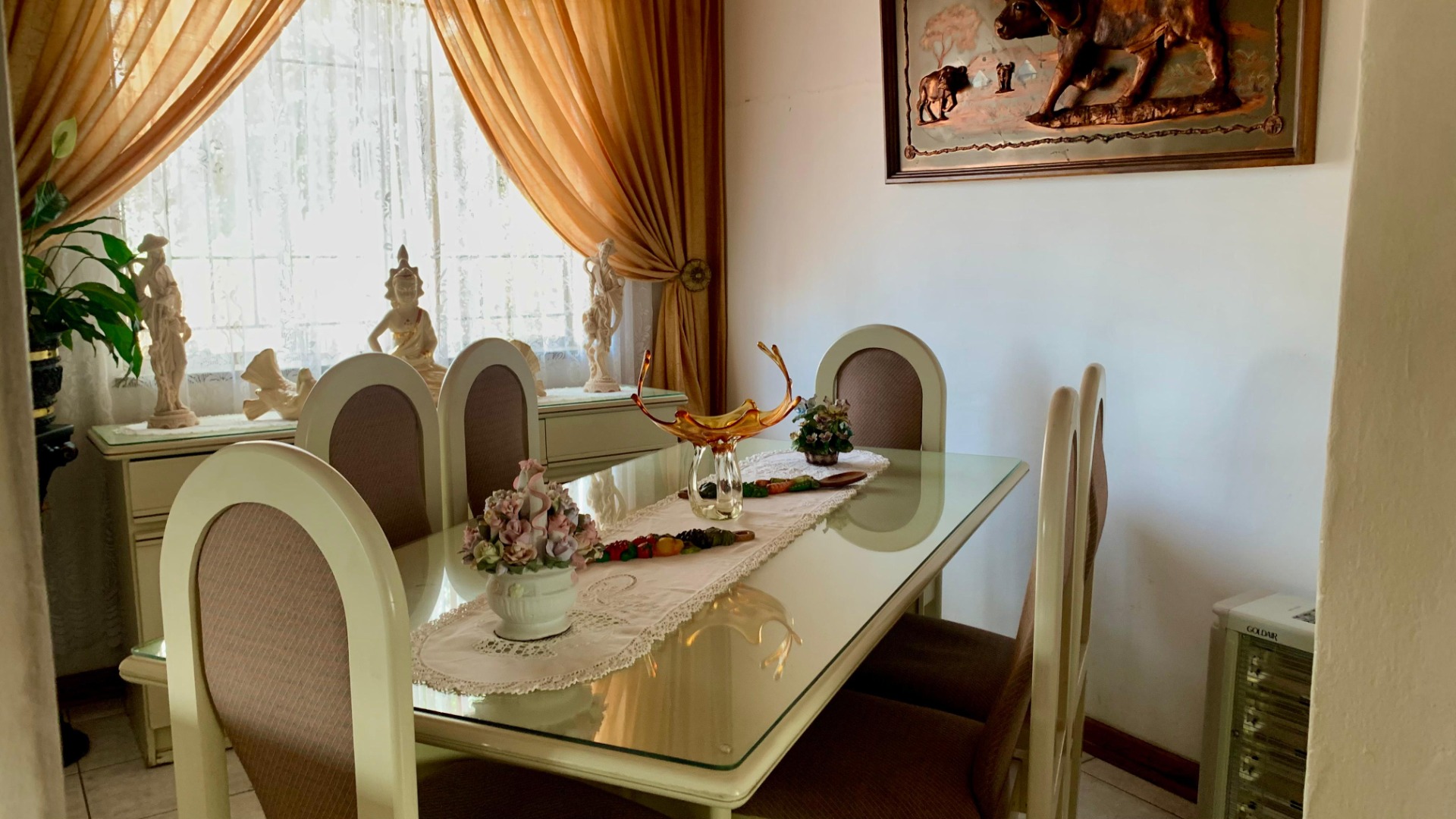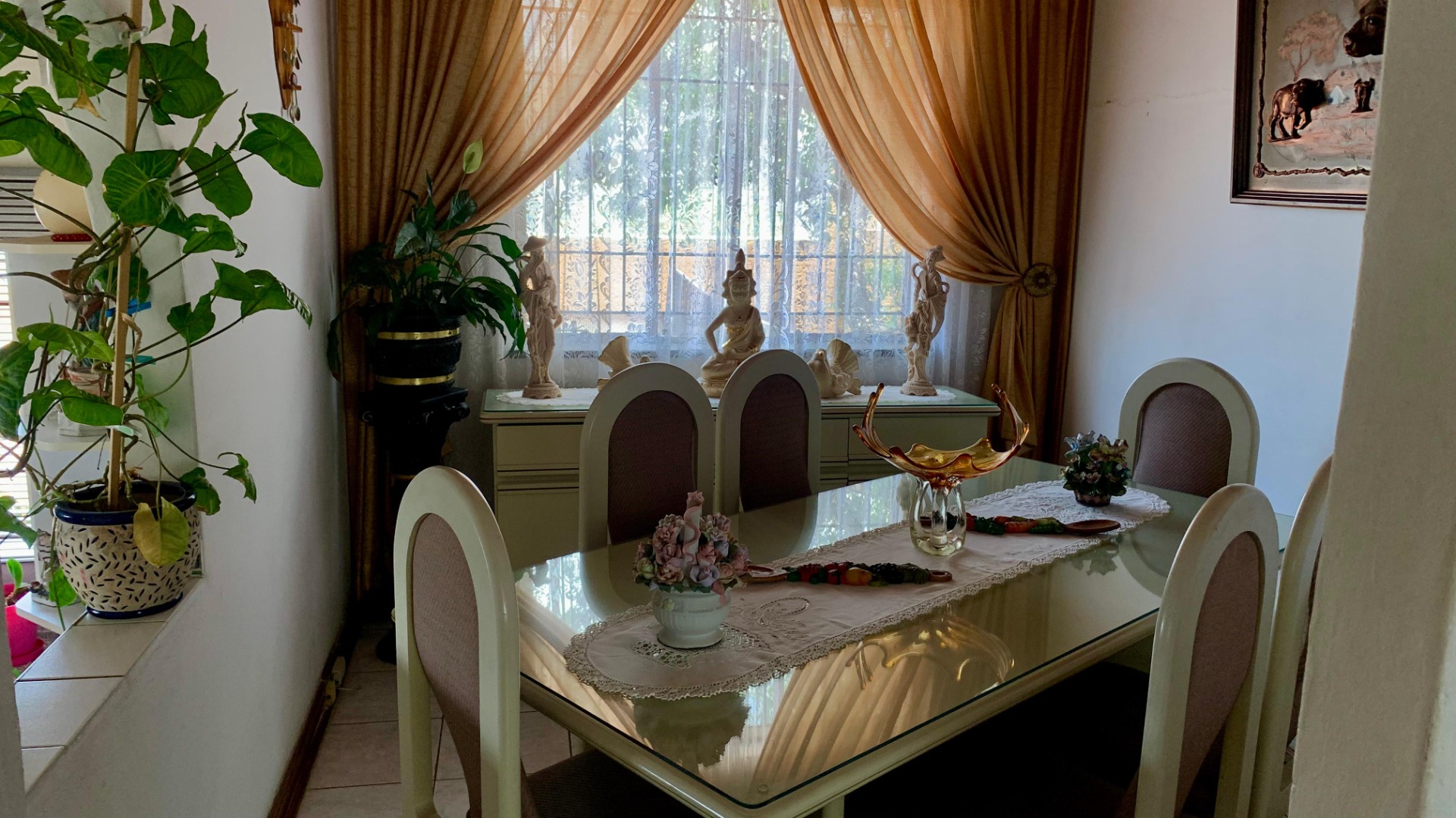 Inside, the home opens to a generous living area filled with natural light, enhanced by decorative window finishes and soft, elegant curtains. The lounge provides a cozy yet spacious setting for family relaxation, while the dining room offers a refined space for hosting, complete with beautiful draping and classic finishes. The home flows with comfort, personality and practicality—ideal for a family who appreciates both charm and functionality.