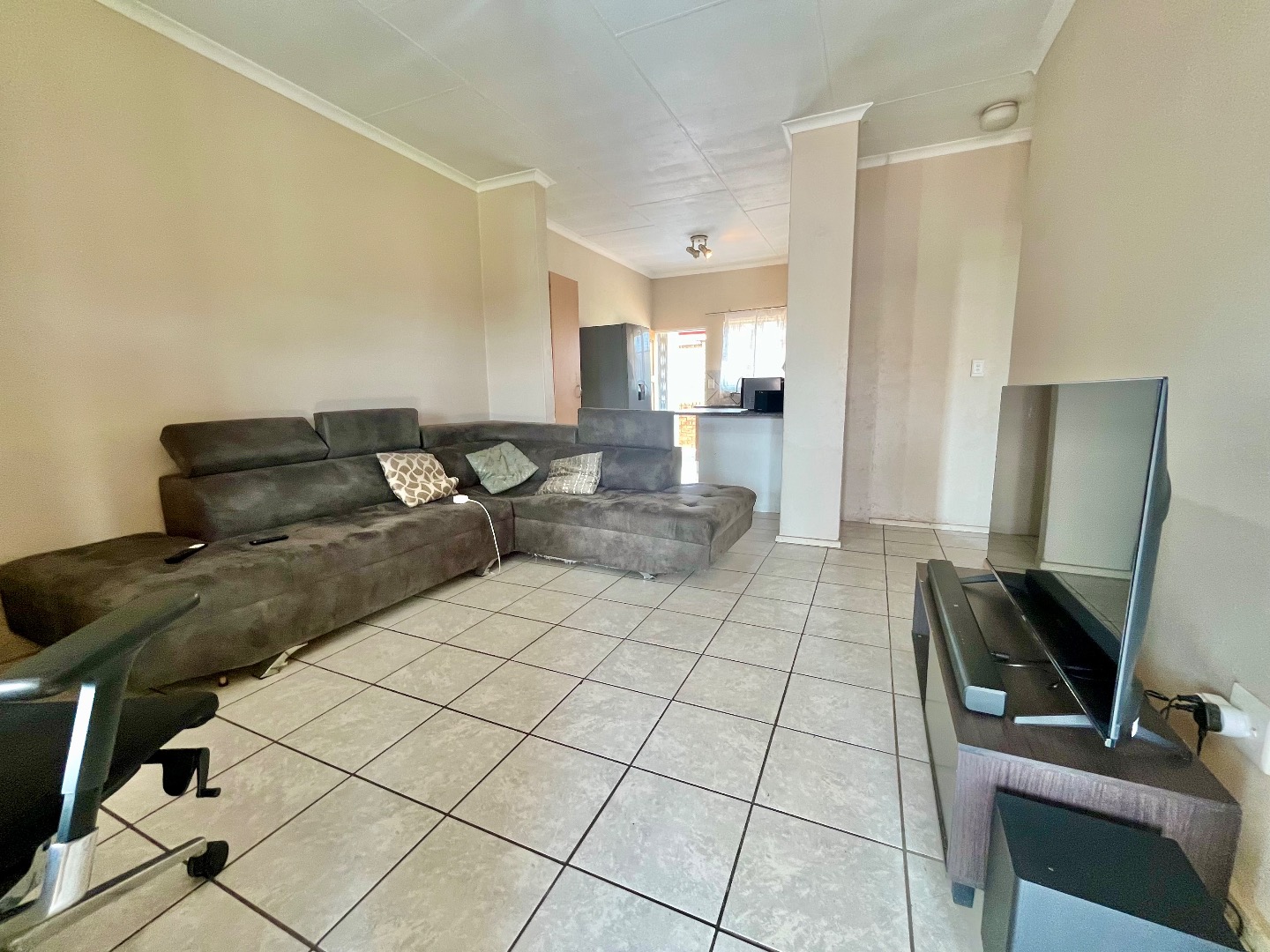 This inviting 2-bedroom, 1 bathroom apartment offers comfortable living within a secure complex in Noordwyk, Midrand. The property features a well-appointed lounge area, providing a versatile space for relaxation and entertainment. Tiled flooring throughout ensures easy maintenance and a clean aesthetic. The kitchen is functional, equipped with an integrated oven and hob, ample cabinetry, and granite-style countertops, benefiting from natural light. The open-plan layout connects the living space, enhancing the sense of spaciousness and flow.
