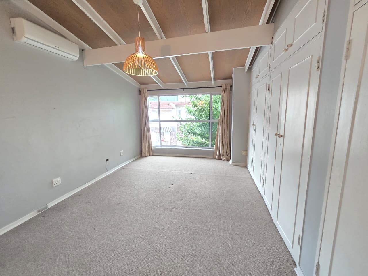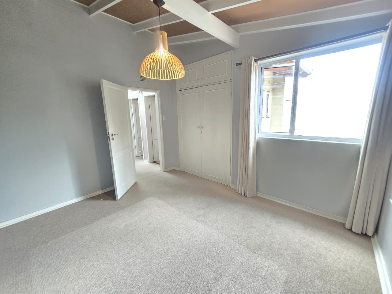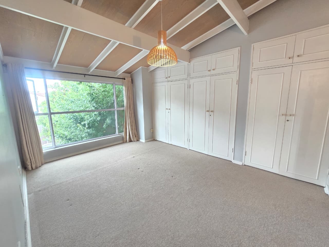 -Three spacious, warmly carpeted bedrooms with high ceilings and built-in cupboards