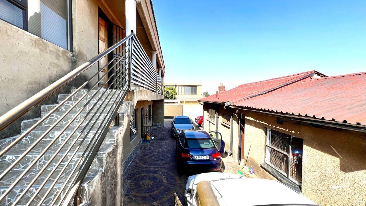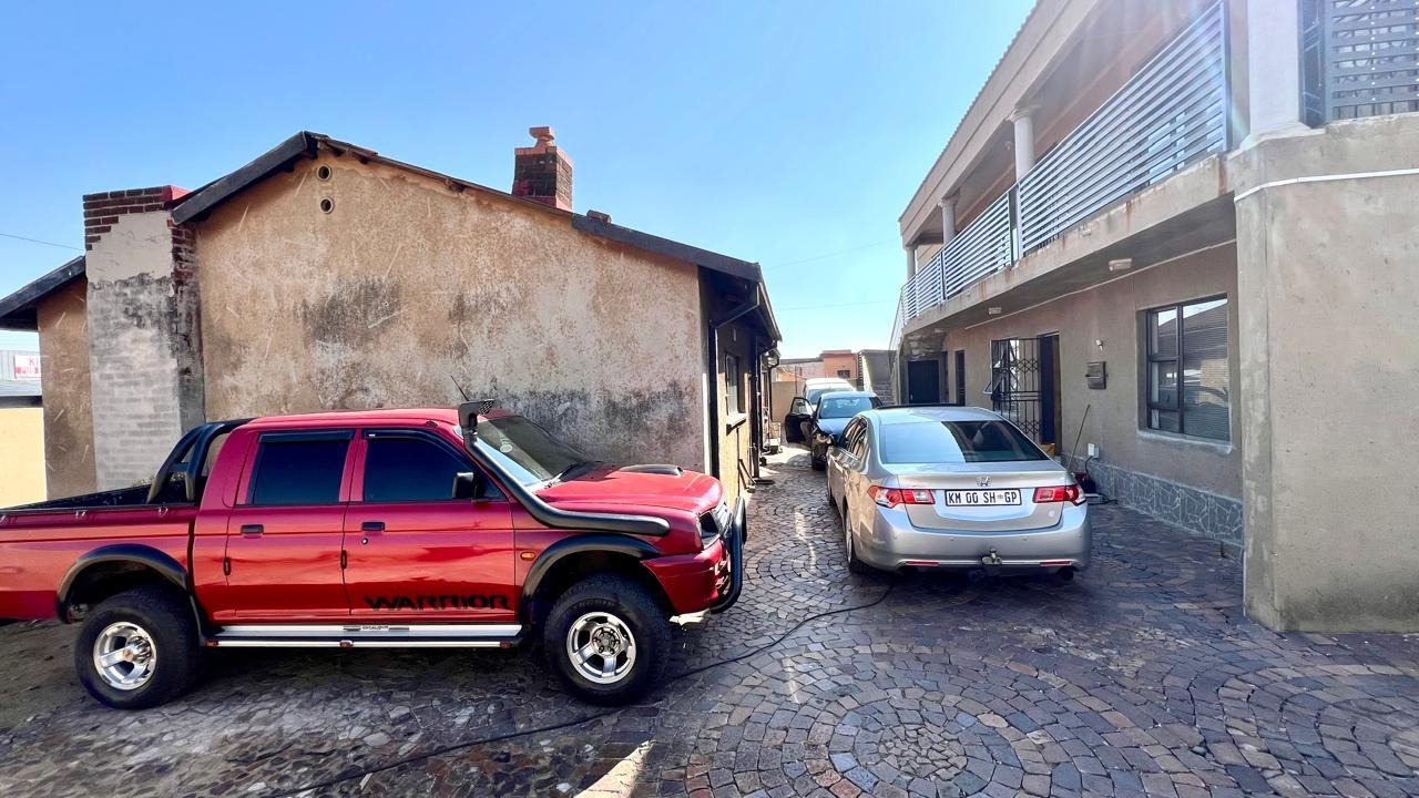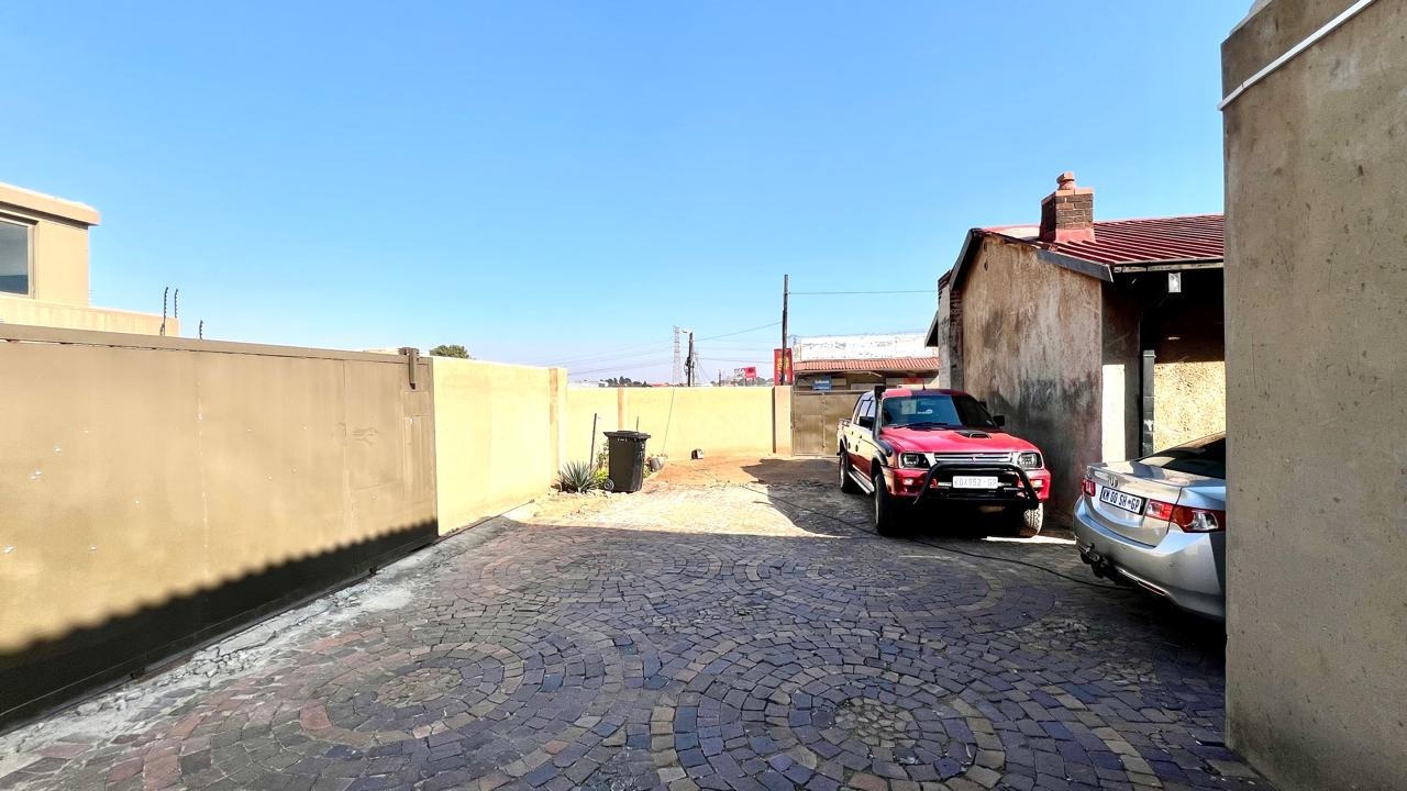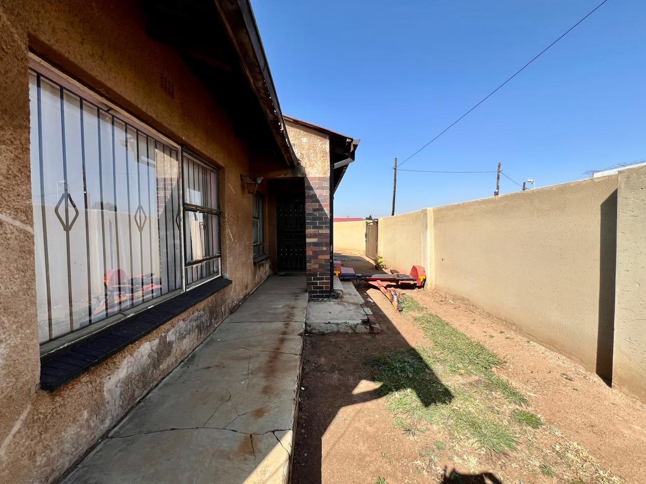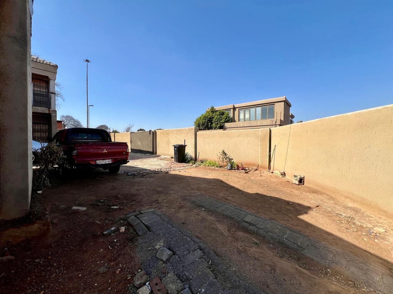 Corner house with 2 gates on each street, lots of parking space.