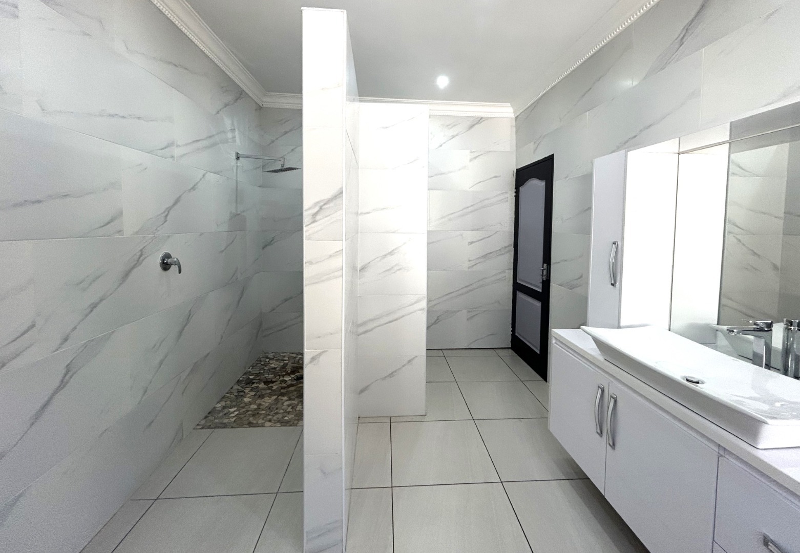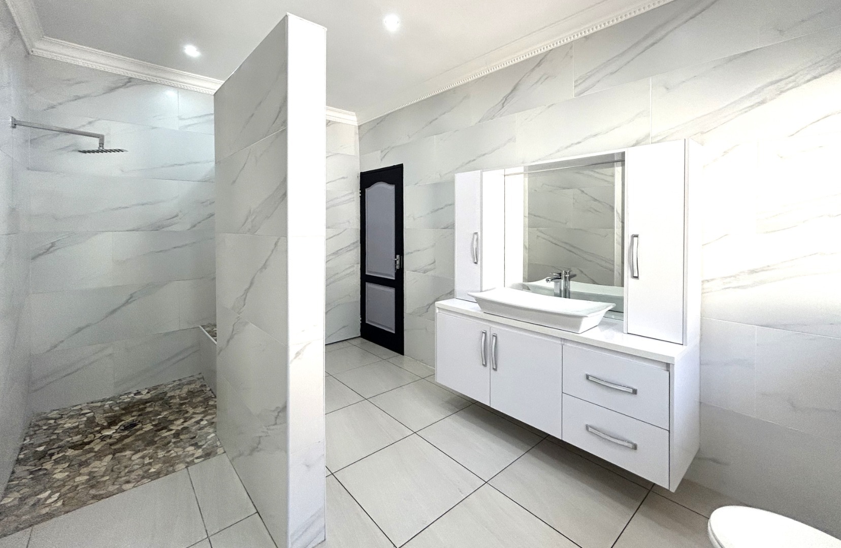 -Beautiful bathroom with a shower, no bath