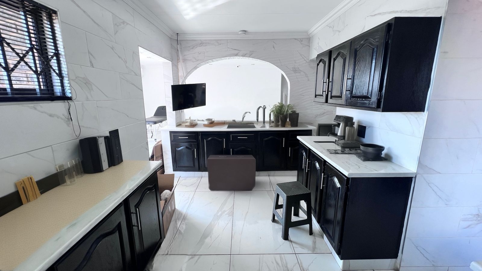 • A modern kitchen with ample cabinetry
