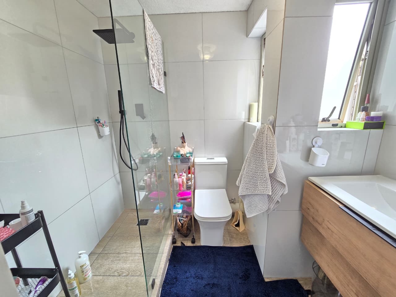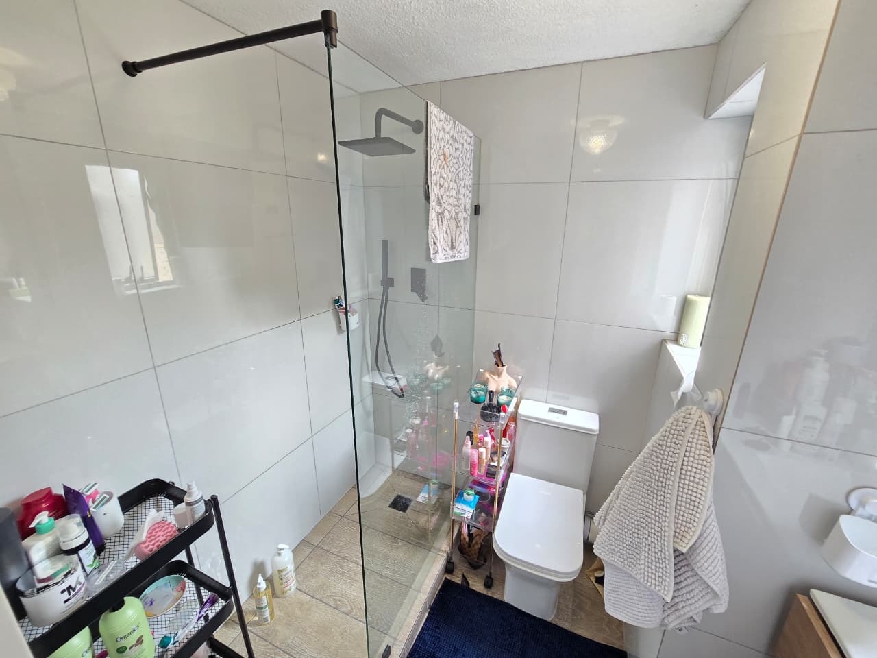 Both bedrooms are comfortably sized, featuring built-in cupboards and contemporary finishes. The main bedroom opens out to its own private outdoor space, adding an extra touch of tranquility. The bathroom is neat, functional, and well-maintained.
