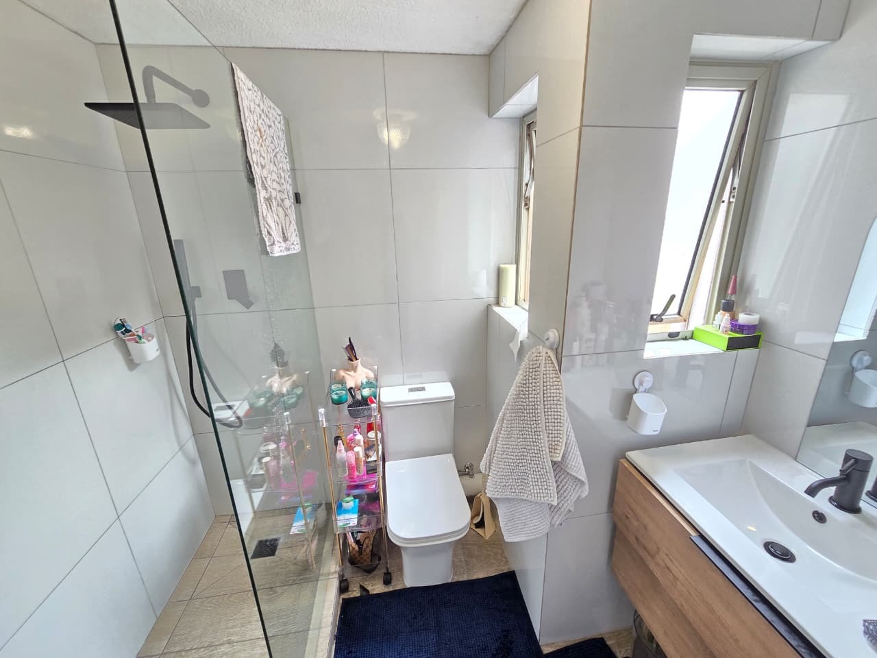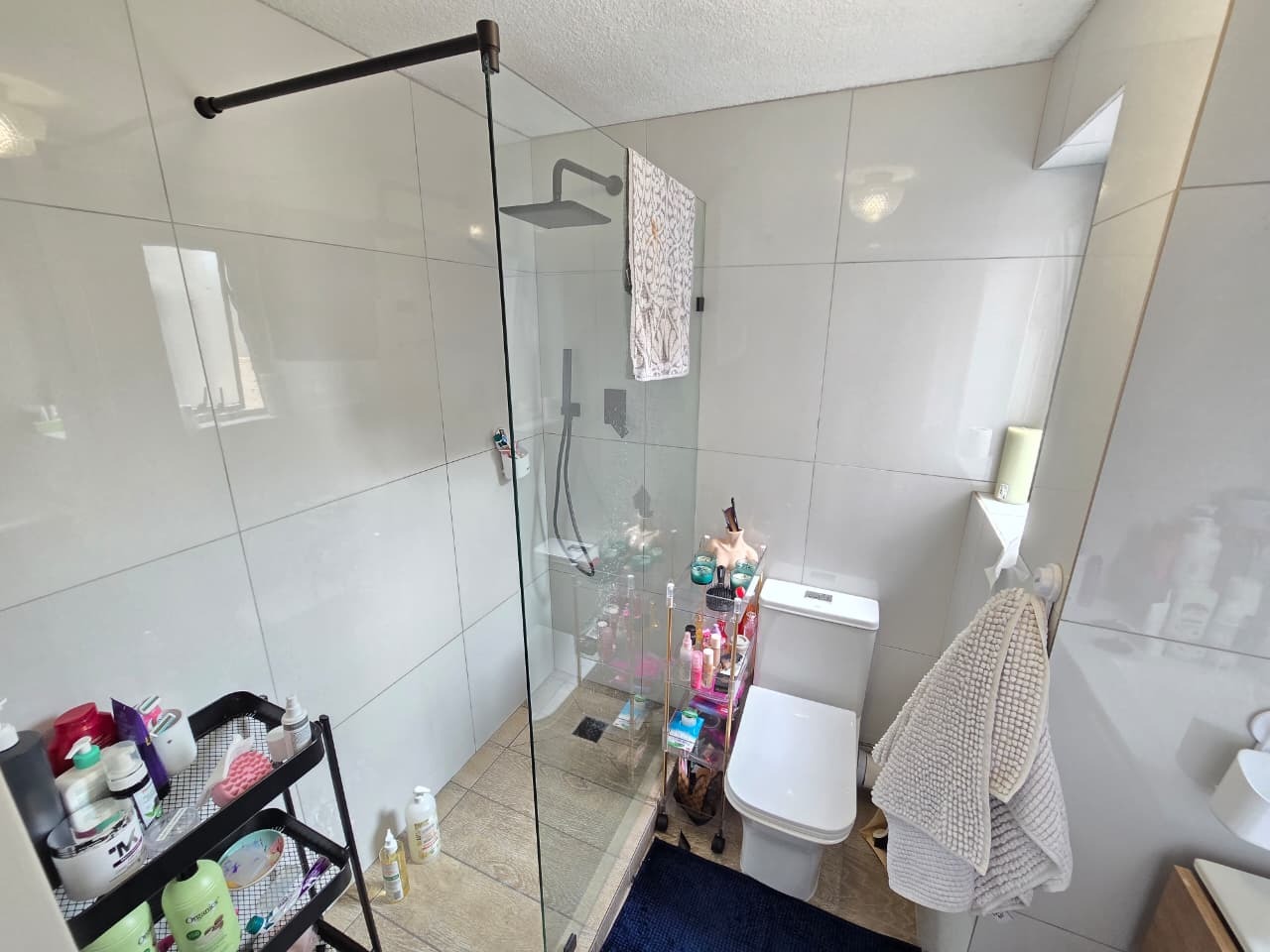 Both bedrooms are comfortably sized, featuring built-in cupboards and contemporary finishes. The main bedroom opens out to its own private outdoor space, adding an extra touch of tranquility. The bathroom is neat, functional, and well-maintained.