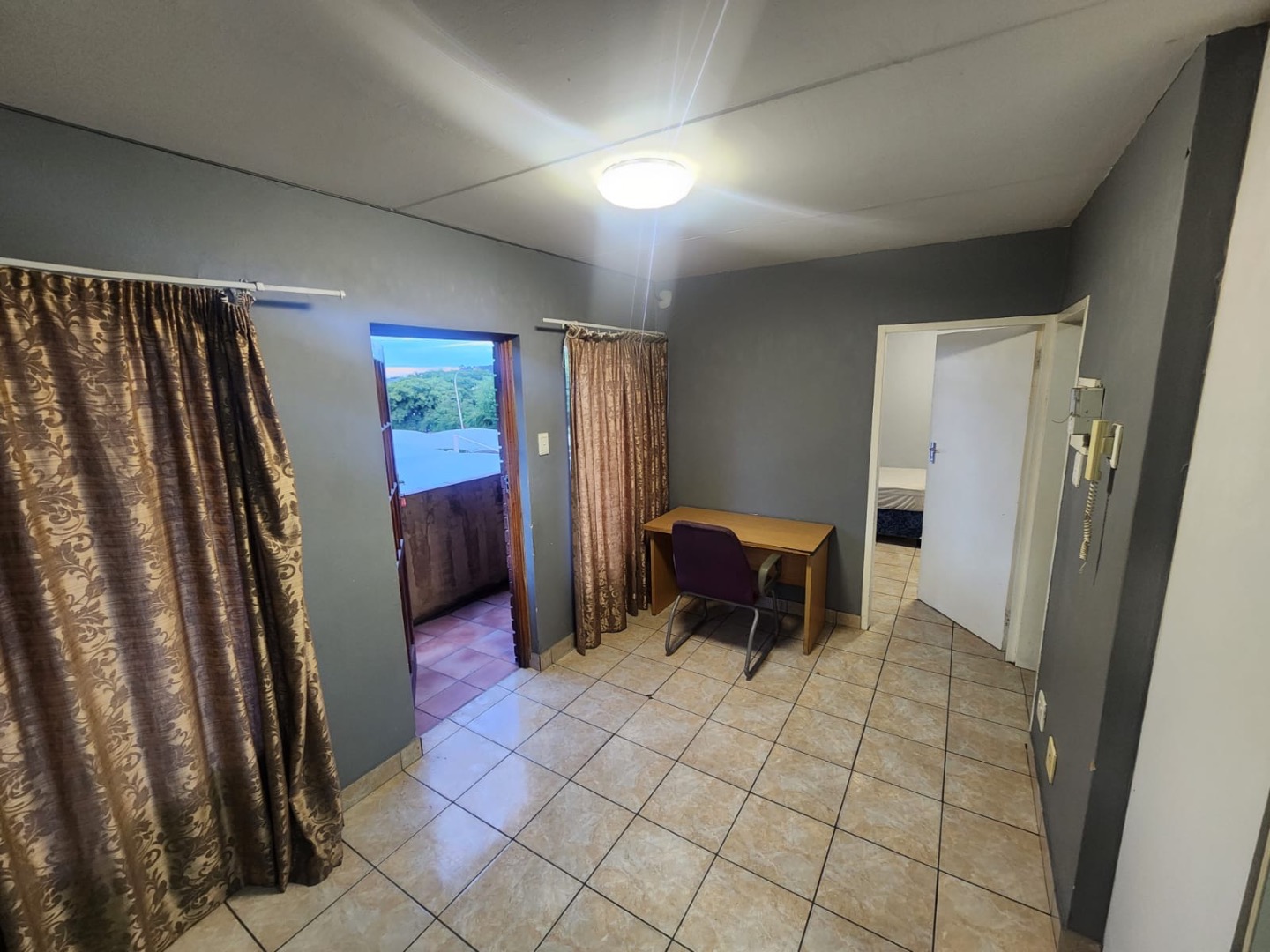 Discover convenient living in this 2-bedroom, 1-bathroom apartment located in the vibrant Johannesburg Central. Designed for practicality, this unit features a compact kitchenette equipped with a sink, lower cabinets, a basic stove, and space for a refrigerator, catering to essential culinary needs. The apartment includes a comfortable lounge area and two bedrooms, each fitted with built-in wardrobes for ample storage. Tiled flooring extends throughout the unit, ensuring easy maintenance and a clean aesthetic. This apartment is ideally suited for students or professionals seeking a lock-up-and-go lifestyle. Many rooms are thoughtfully furnished with essential items such as beds, desks, and chairs, providing immediate comfort and functionality. Dedicated desk areas offer a convenient space for work or study, enhancing the appeal for those balancing academics or careers. Enjoy the benefit of private balcony access from certain rooms, offering a refreshing outdoor space with green views. Security is a priority within this complex, which benefits from being a security complex. Features include an intercom system for controlled access and security bars on windows, contributing to a secure living environment. The property also provides one dedicated parking space within the central paved courtyard, with some covered carports available, adding to the convenience for residents. Situated in Johannesburg Central, this property offers excellent access to the city's amenities, public transport networks, and various educational institutions, making it a strategic choice for urban dwellers. Key Features: * 2 Bedrooms * 1 Bathroom * 1 Lounge * 1 Kitchenette * Dedicated Parking * Security Complex * Built-in Wardrobes * Tiled Flooring * Balcony Access