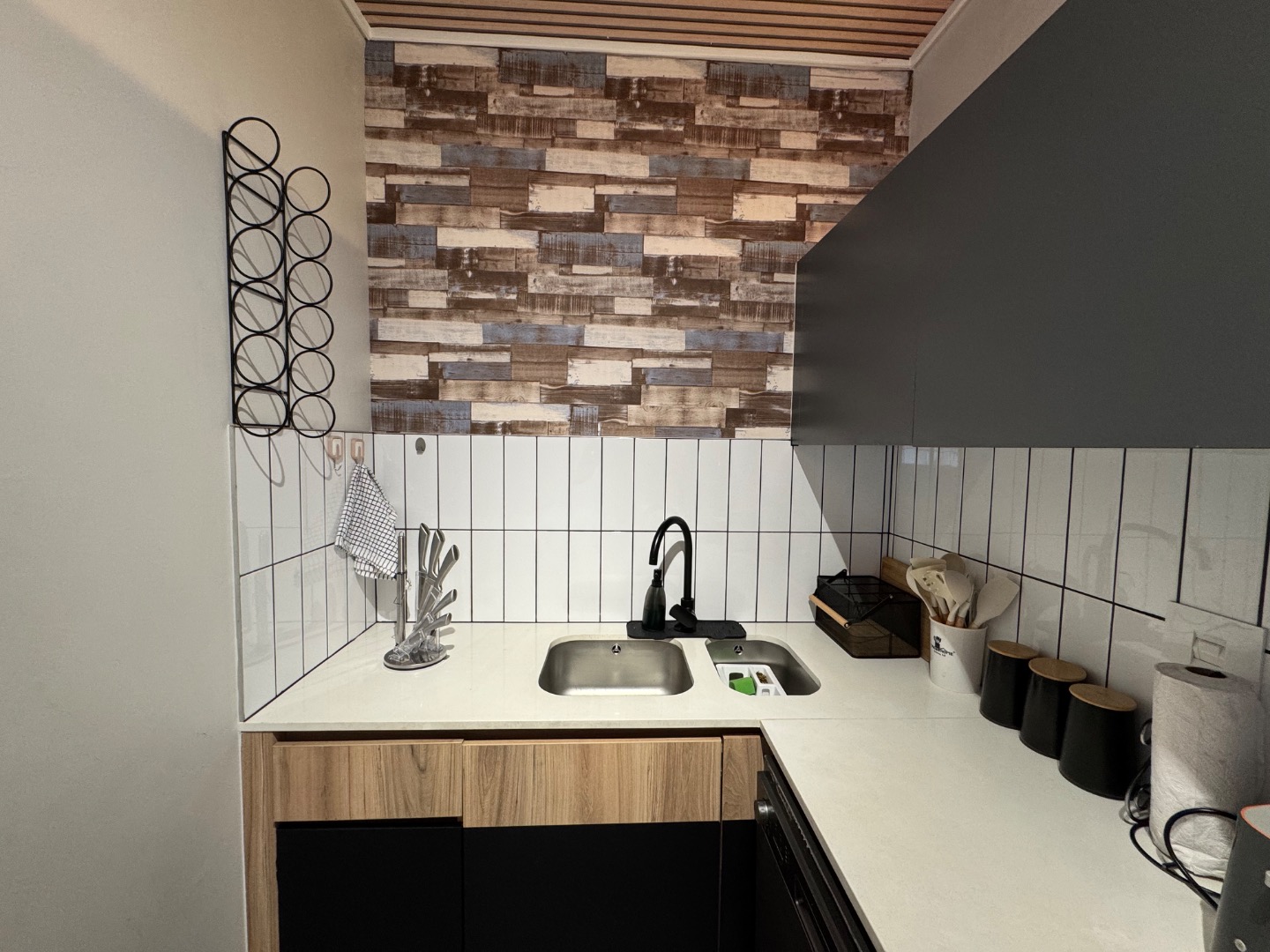 Step into the beautifully designed living area that flows seamlessly onto a private balcony, allowing for natural light to fill the space. The interiors are tastefully decorated with quality furnishings, a large mounted TV, and a warm ambiance created by modern lighting and elegant wall finishes. The kitchen is well-equipped with essential appliances, making meal preparation convenient and enjoyable. The bathroom is sleek and functional, complete with a walk-in shower and contemporary fittings.