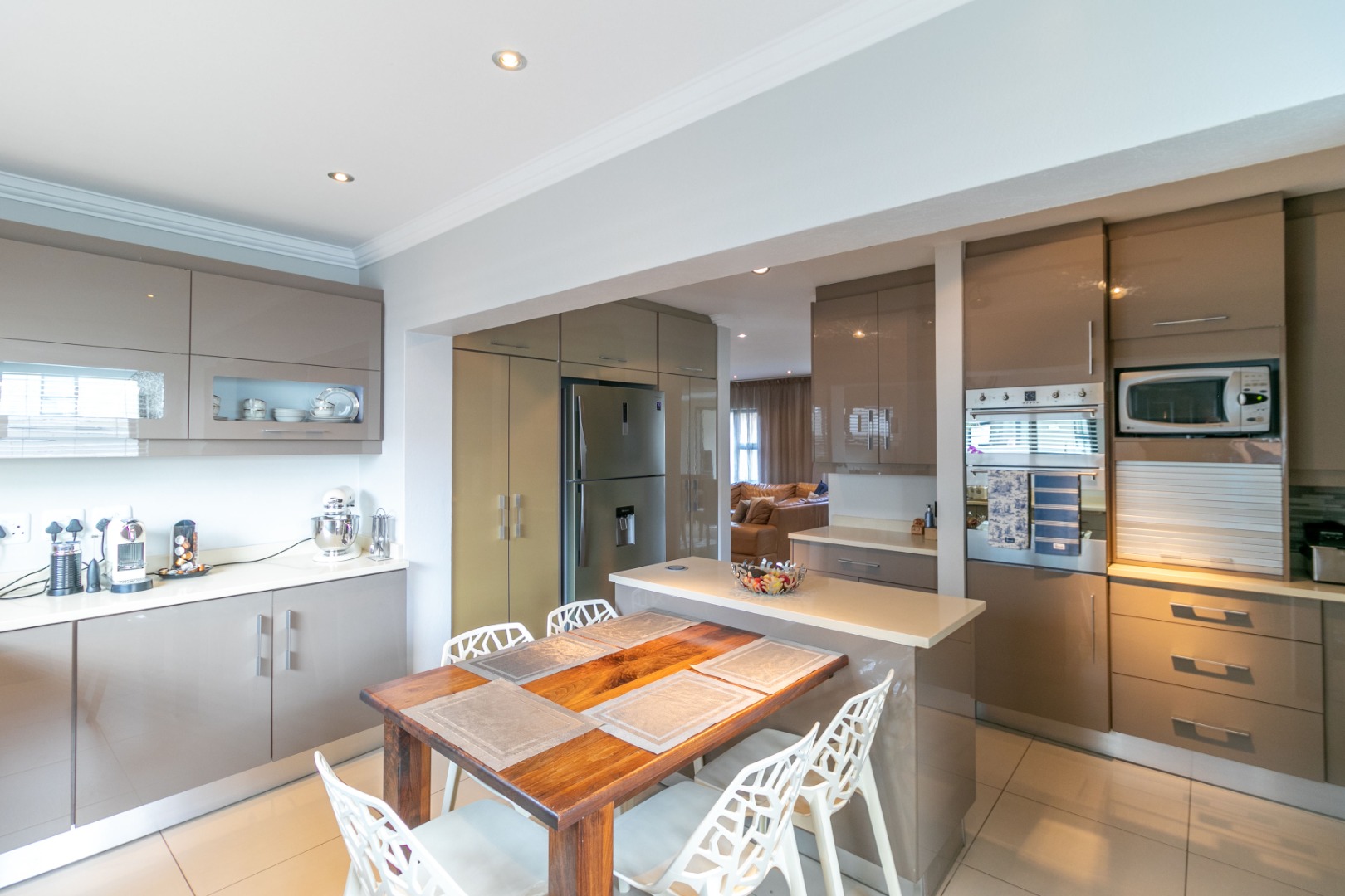 As you enter the home, you are welcomed by a generous lounge area, leading into a separate dining room ideal for family gatherings and entertaining. The fully fitted kitchen offers ample built-in cupboards and excellent storage, catering to comfortable everyday living.