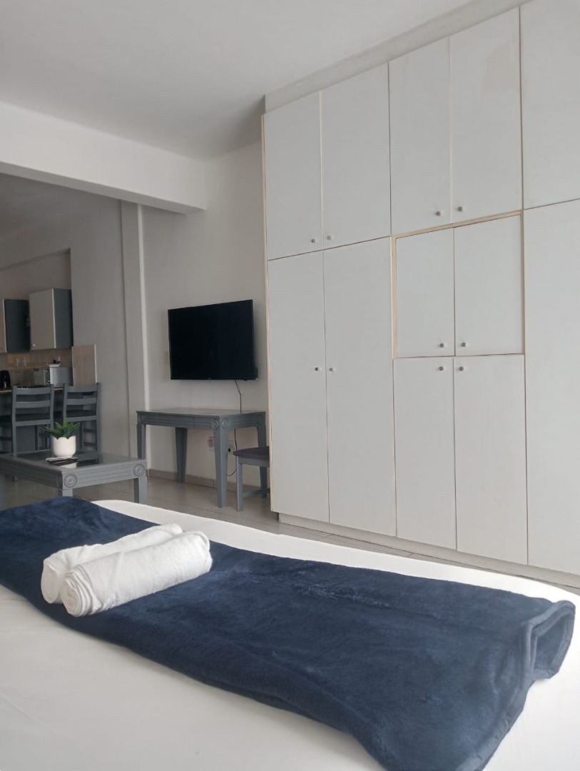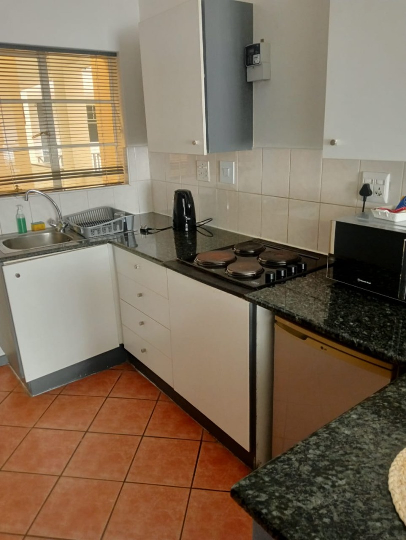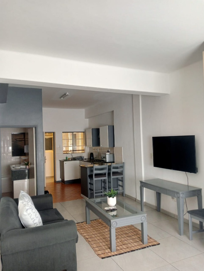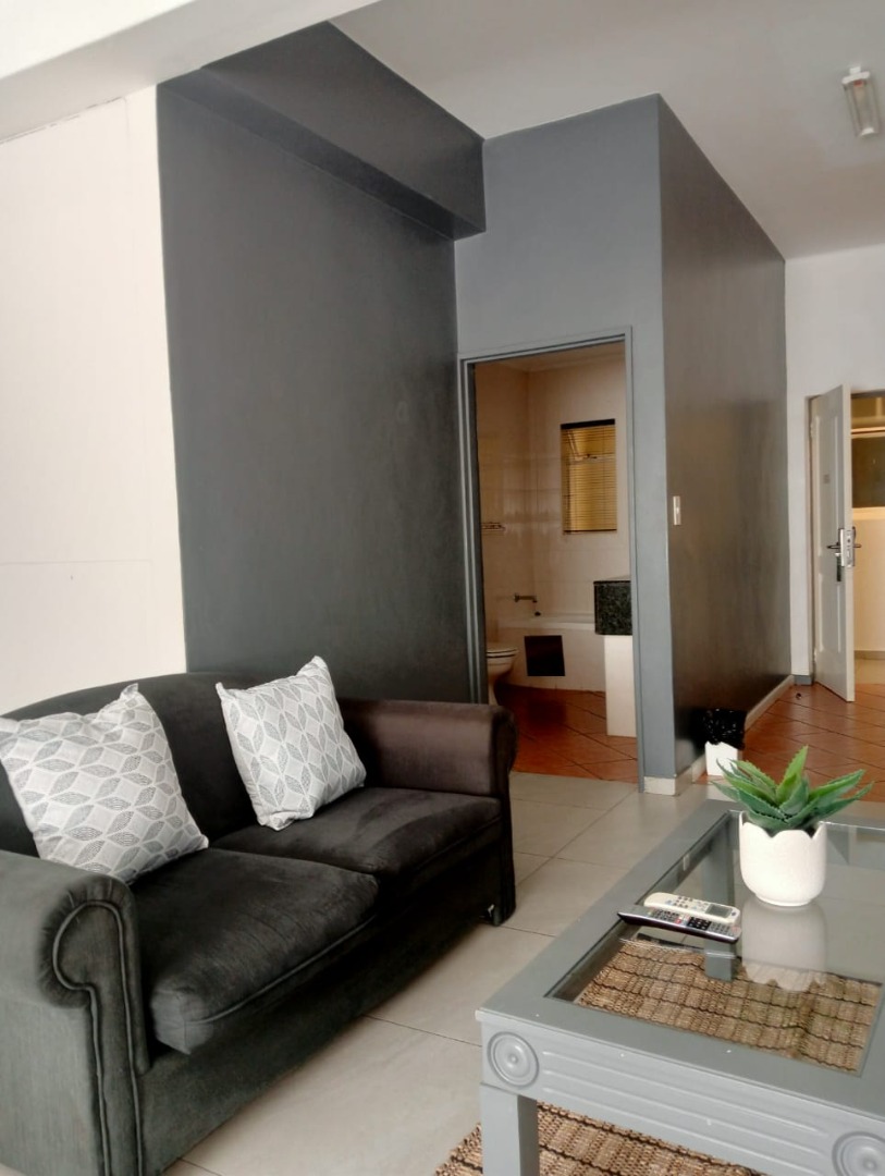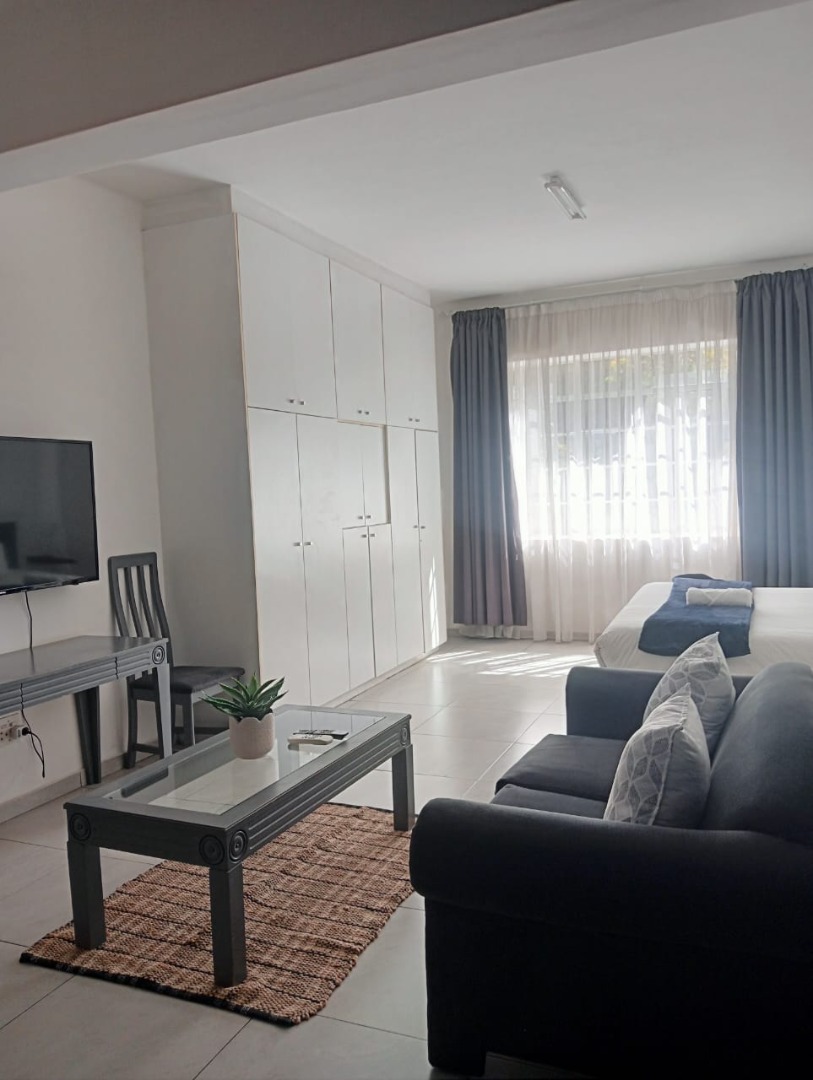Discover modern urban living in this stylish, furnished studio apartment located in a contemporary complex in Rosebank, Johannesburg. Designed for convenience and comfort, this unit features a well-appointed lounge area, a compact yet functional kitchen, and a single bathroom. The kitchen boasts sleek granite countertops, an integrated hob, and an under-counter fridge/freezer, complemented by ample white cabinetry. Large windows invite abundant natural light, illuminating the tiled flooring and extensive built-in storage solutions, ensuring a clutter-free environment. The unit also includes a private balcony, perfect for enjoying the vibrant city atmosphere.
