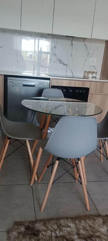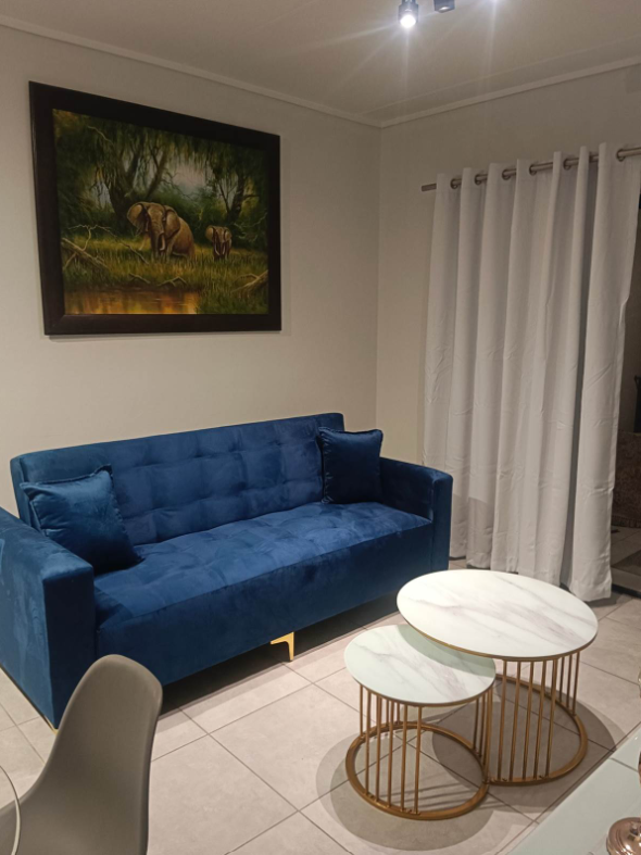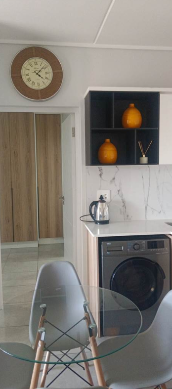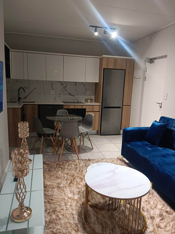 Presenting an exquisite opportunity for sophisticated urban living, this meticulously furnished one-bedroom, one-bathroom apartment is situated within a prestigious security estate in Waterfall City, Midrand. The residence features a contemporary open-plan design, seamlessly integrating the lounge, dining area, and a modern kitchen. The kitchen is appointed with sleek white cabinetry, a stylish marble-look backsplash, and integrated appliances, including an oven, hob, dishwasher, and washing machine, ensuring both functionality and aesthetic appeal.