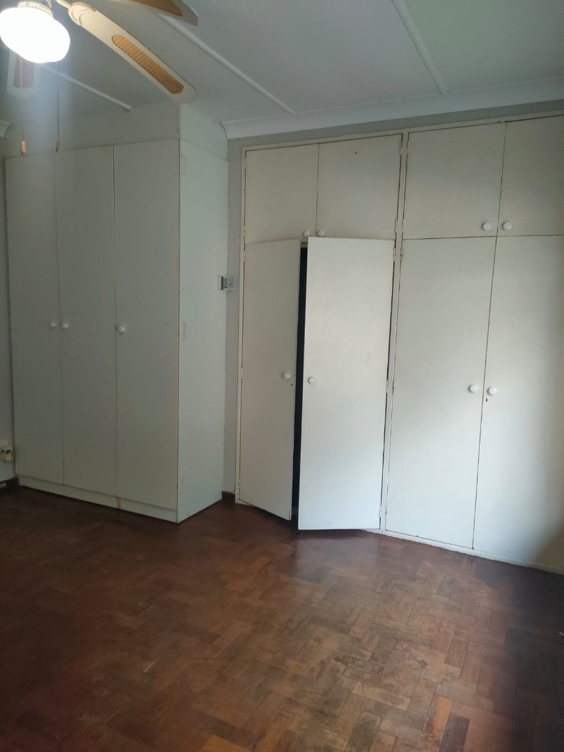 The main bedroom is generously sized and includes built-in cupboards that provide ample storage.