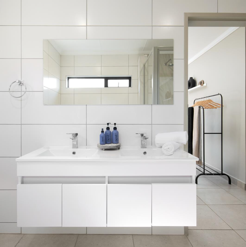 This spacious home features three well-sized bedrooms and two modern bathrooms, including a stylish en-suite master bedroom designed for comfort and privacy. The open-plan living and dining area creates a seamless flow, ideal for both relaxed family living and entertaining guests. Large doors open onto a private patio and garden, providing a peaceful outdoor space where you can unwind or enjoy weekend braais.