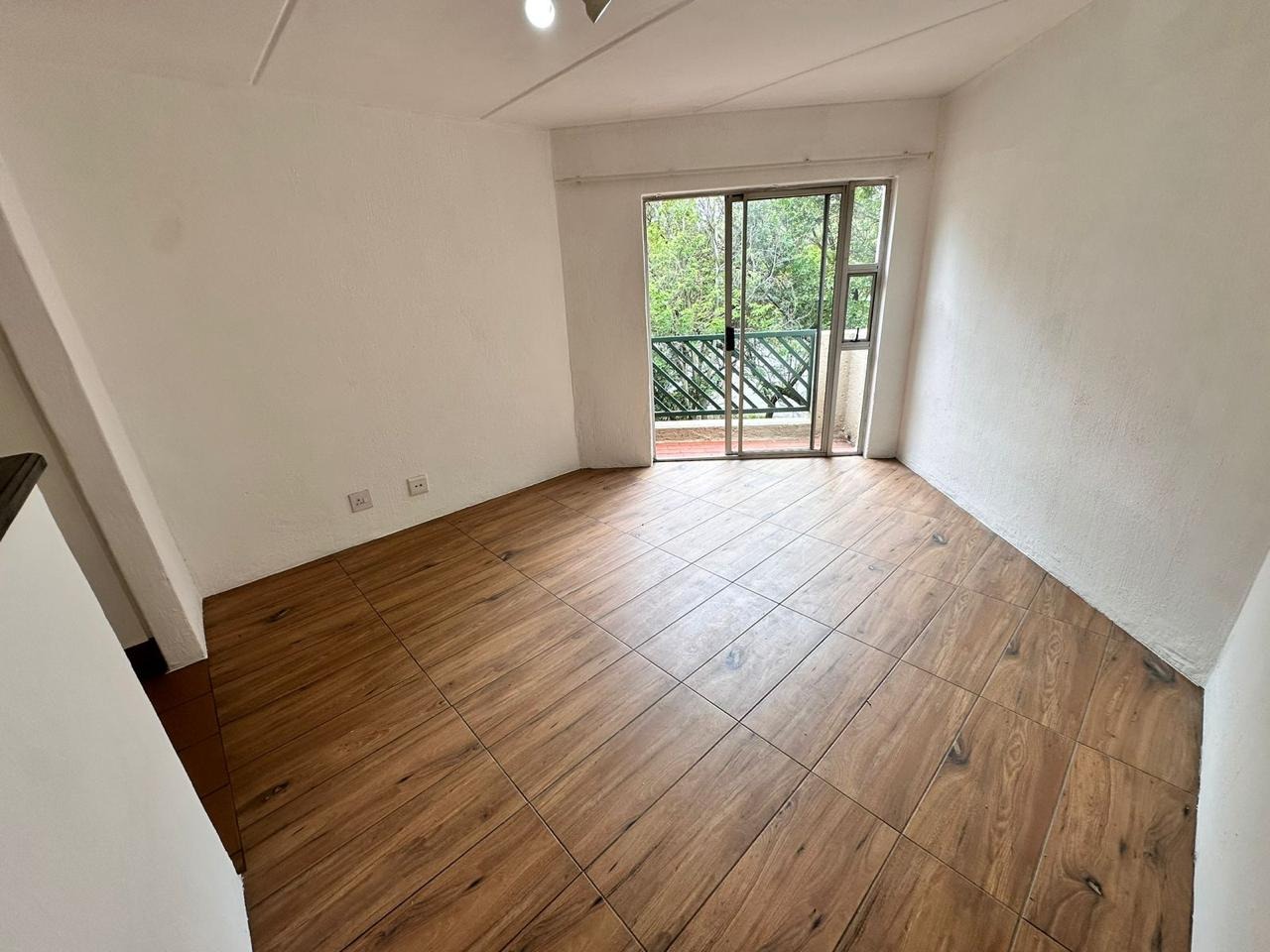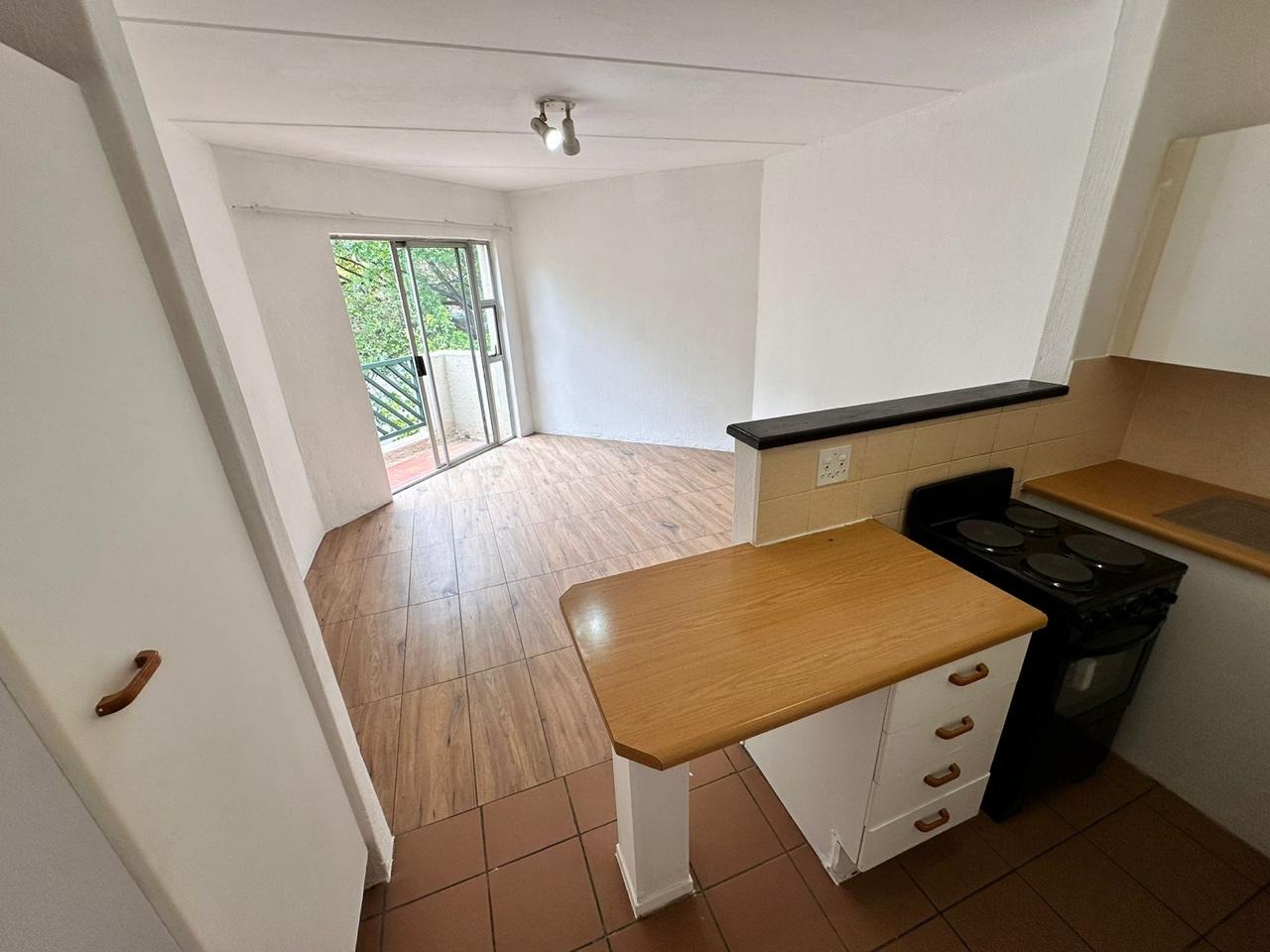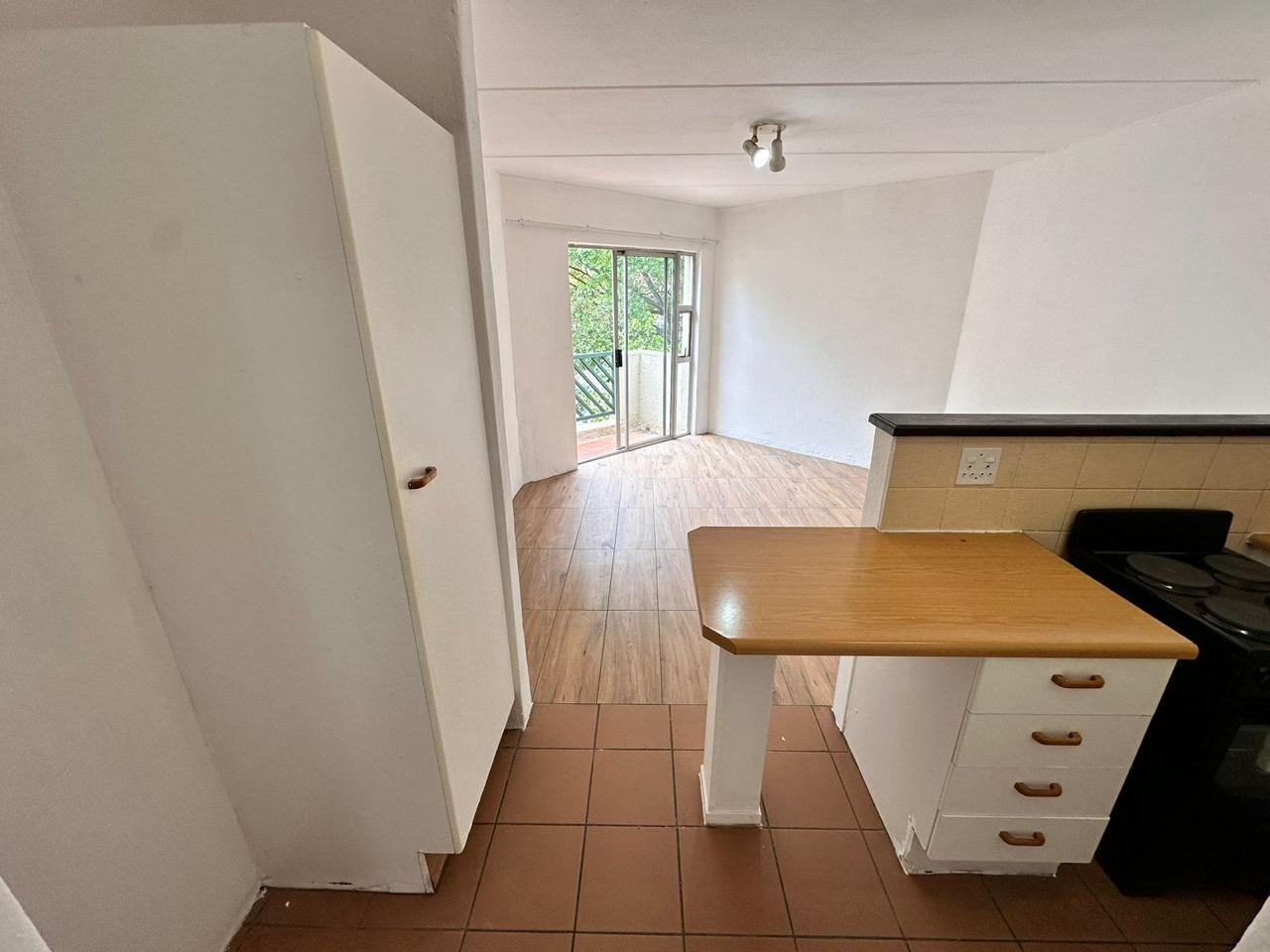 Discover this modern studio apartment located in a sought-after complex in Bryanston, Sandton. This inviting space features an open-plan lounge area with contemporary wood-look tiled flooring and freshly painted white walls, creating a bright and versatile living environment. Natural light floods the main living area, which extends to a private balcony offering serene green views, perfect for relaxation. The compact yet functional kitchen boasts ample upper cabinetry, a clean electric stovetop, and practical tiled flooring, ideal for everyday meal preparation. A well-appointed bathroom completes the interior layout, ensuring comfort and convenience.