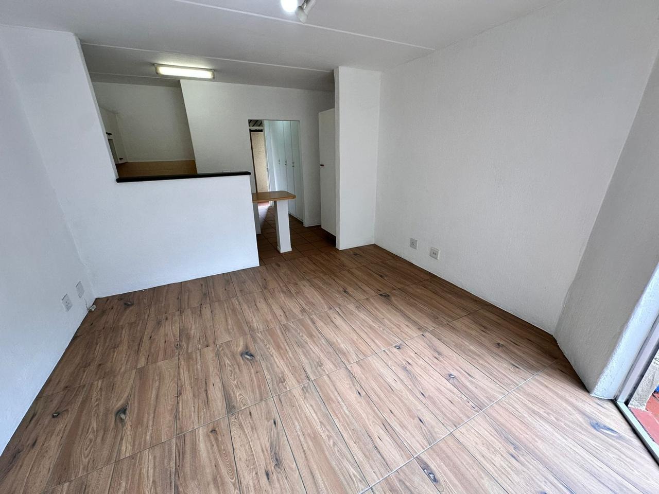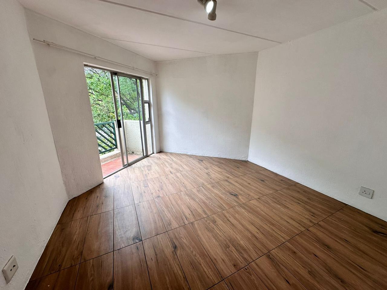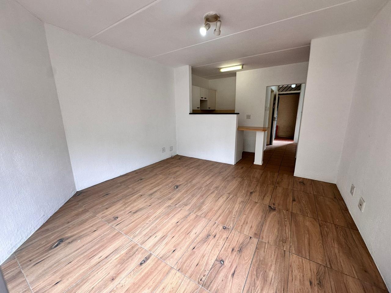 Discover this modern studio apartment located in a sought-after complex in Bryanston, Sandton. This inviting space features an open-plan lounge area with contemporary wood-look tiled flooring and freshly painted white walls, creating a bright and versatile living environment. Natural light floods the main living area, which extends to a private balcony offering serene green views, perfect for relaxation. The compact yet functional kitchen boasts ample upper cabinetry, a clean electric stovetop, and practical tiled flooring, ideal for everyday meal preparation. A well-appointed bathroom completes the interior layout, ensuring comfort and convenience.