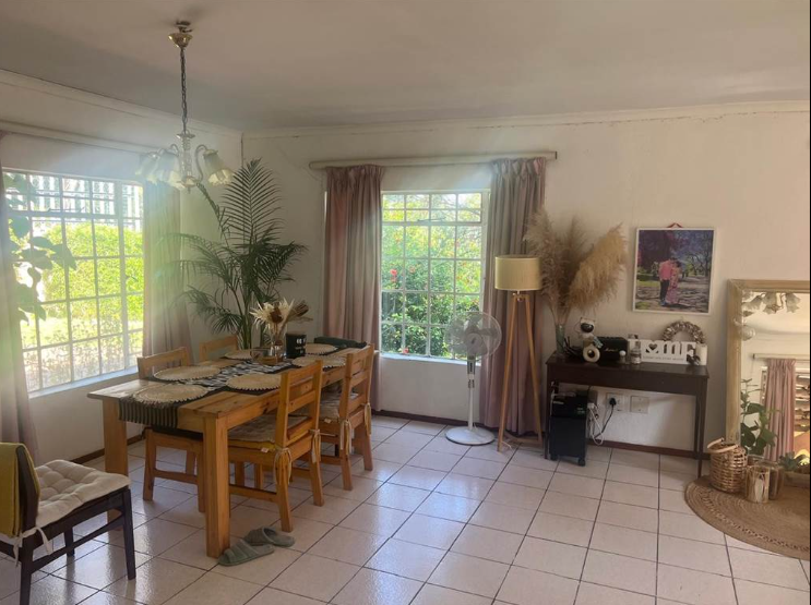 Upon entry, residents are greeted by a spacious interior featuring a dedicated lounge and a separate dining room, both designed to maximize natural light through multiple large windows. The entire living space is adorned with durable and easily maintainable tiled flooring, ensuring a practical yet refined aesthetic. The well-appointed kitchen is a focal point, boasting a large central island, ample white cabinetry, and essential provisions for culinary pursuits, fostering an inviting atmosphere for meal preparation and casual dining.