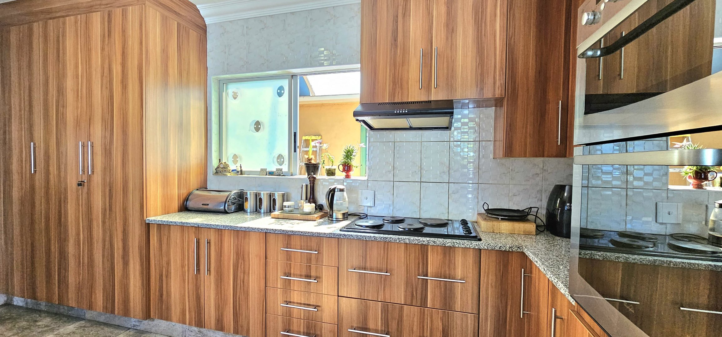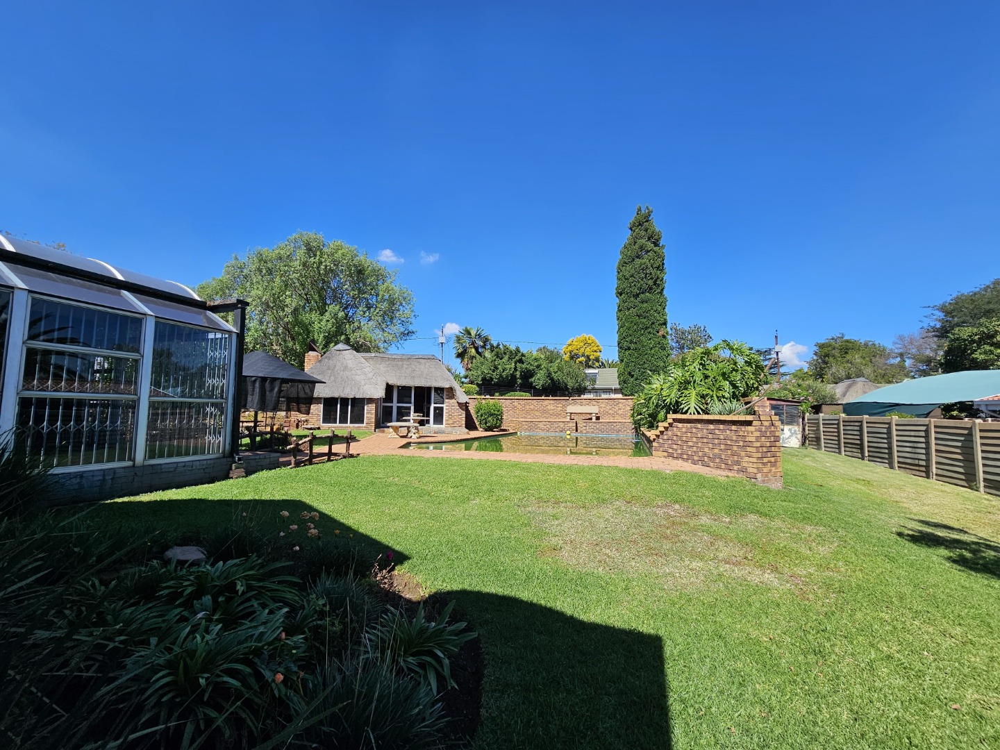 Enjoy year-round entertaining in the dedicated entertainment area, which opens out to the garden and pool area—perfect for hosting. The swimming pool does require some attention but holds great promise for future enjoyment. A charming lapa with a built-in braai completes the outdoor lifestyle offering.