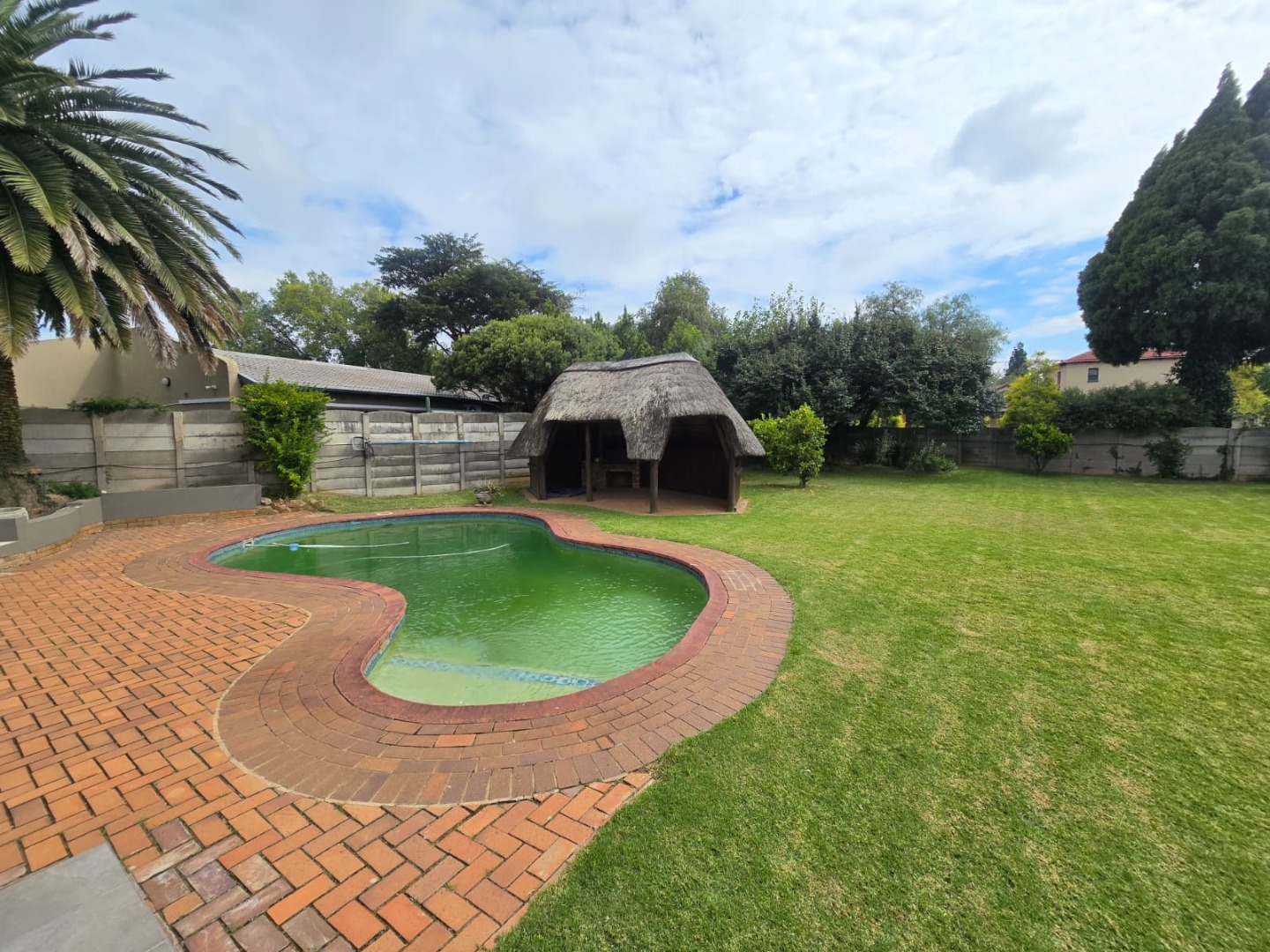 Large sliding doors lead out to a vast, manicured garden that offers endless possibilities for children, pets and outdoor enjoyment. The thatched lapa provides the perfect entertainment space for weekend braais and gatherings, while the swimming pool completes the outdoor lifestyle experience.