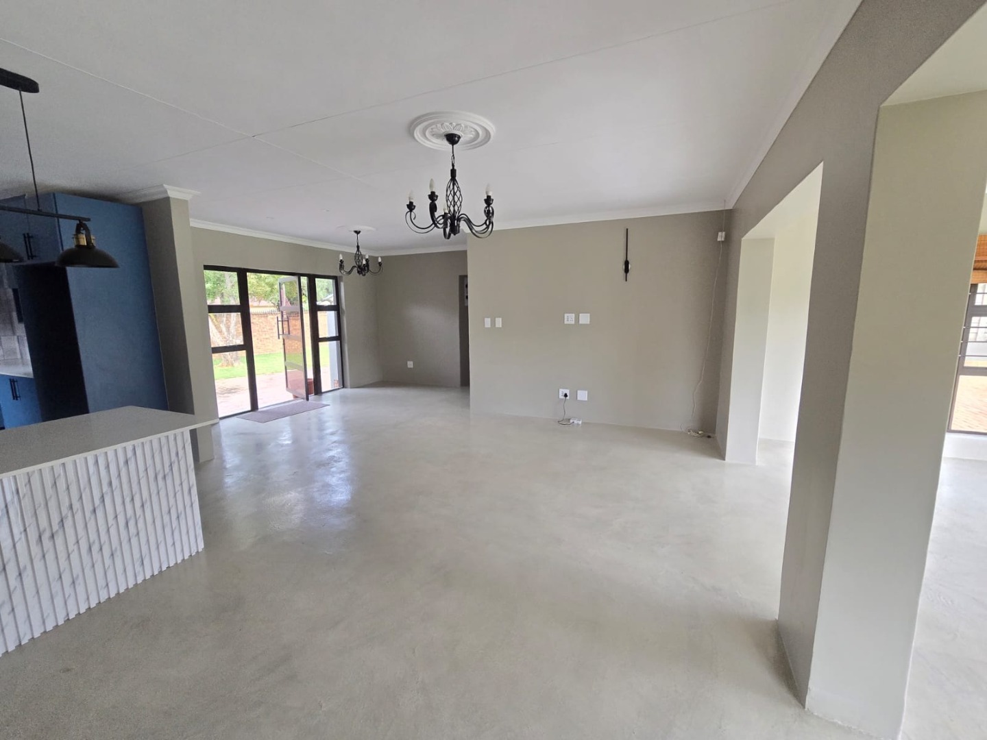 From the moment you arrive, the neat façade and paved driveway create an inviting first impression. The home opens into expansive open-plan living areas with sleek flooring and contemporary finishes, designed to maximise space and natural light. Elegant light fittings and a neutral colour palette create a warm yet modern atmosphere throughout.