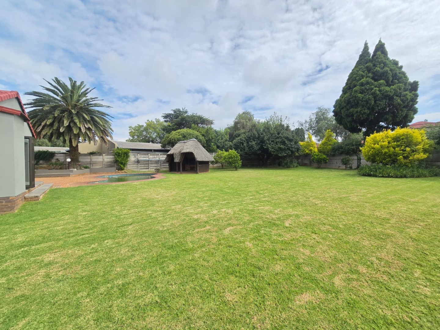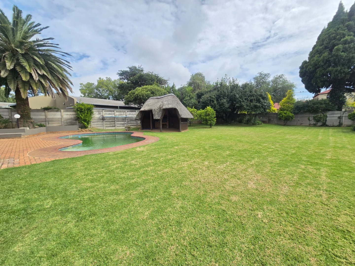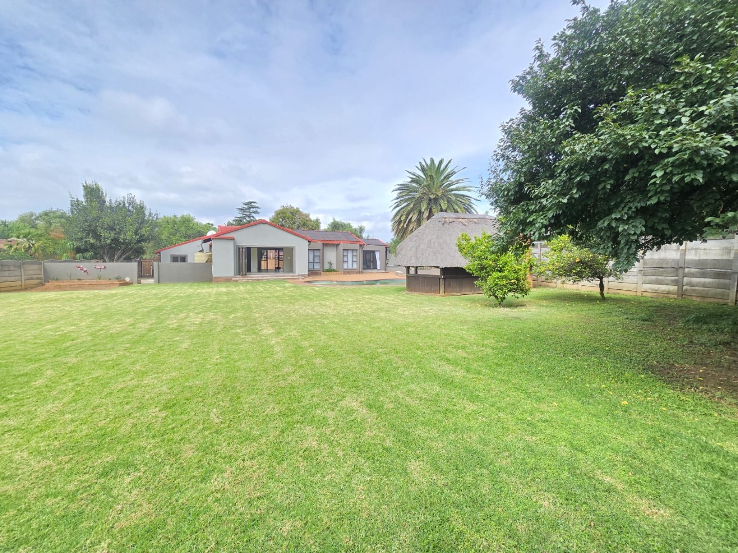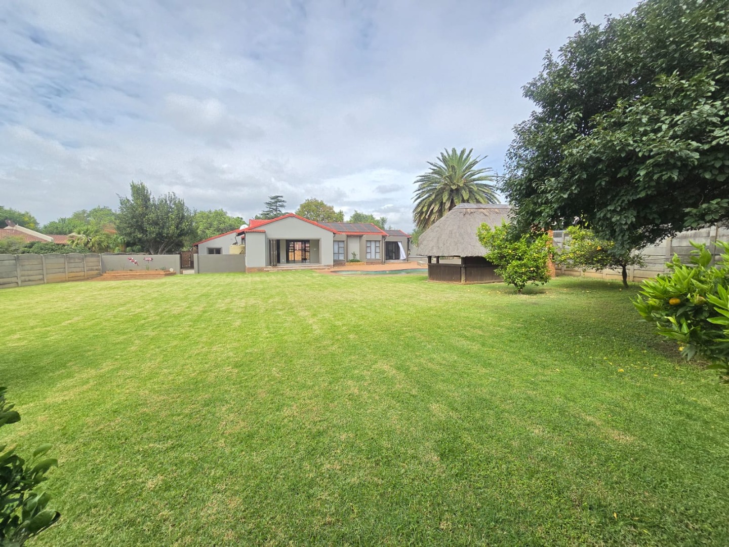 Large sliding doors lead out to a vast, manicured garden that offers endless possibilities for children, pets and outdoor enjoyment. The thatched lapa provides the perfect entertainment space for weekend braais and gatherings, while the swimming pool completes the outdoor lifestyle experience.