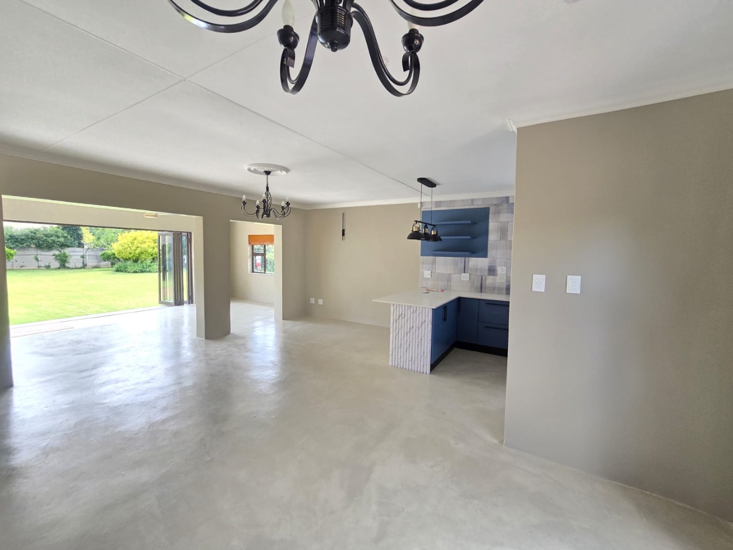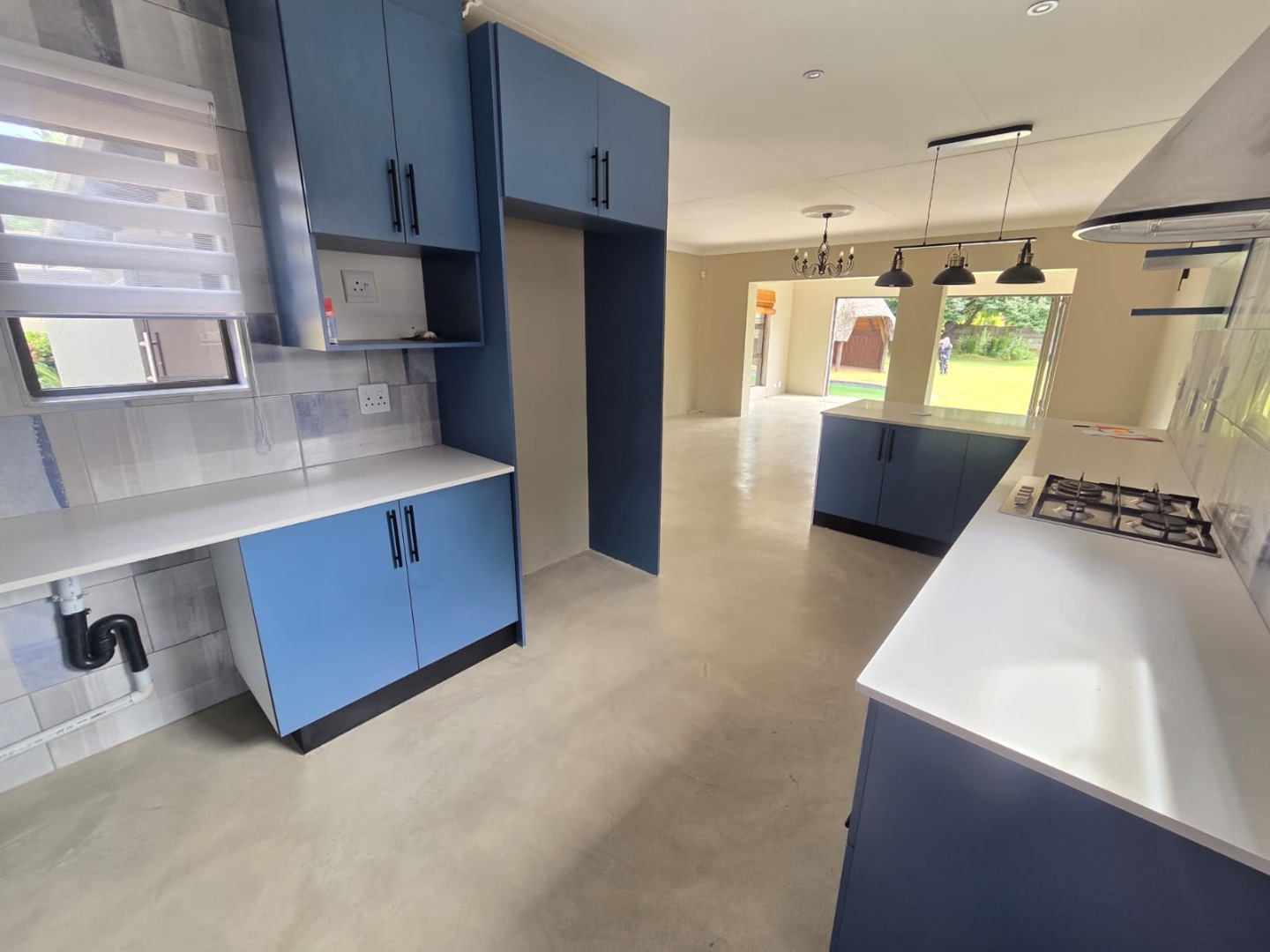 From the moment you arrive, the neat façade and paved driveway create an inviting first impression. The home opens into expansive open-plan living areas with sleek flooring and contemporary finishes, designed to maximise space and natural light. Elegant light fittings and a neutral colour palette create a warm yet modern atmosphere throughout.