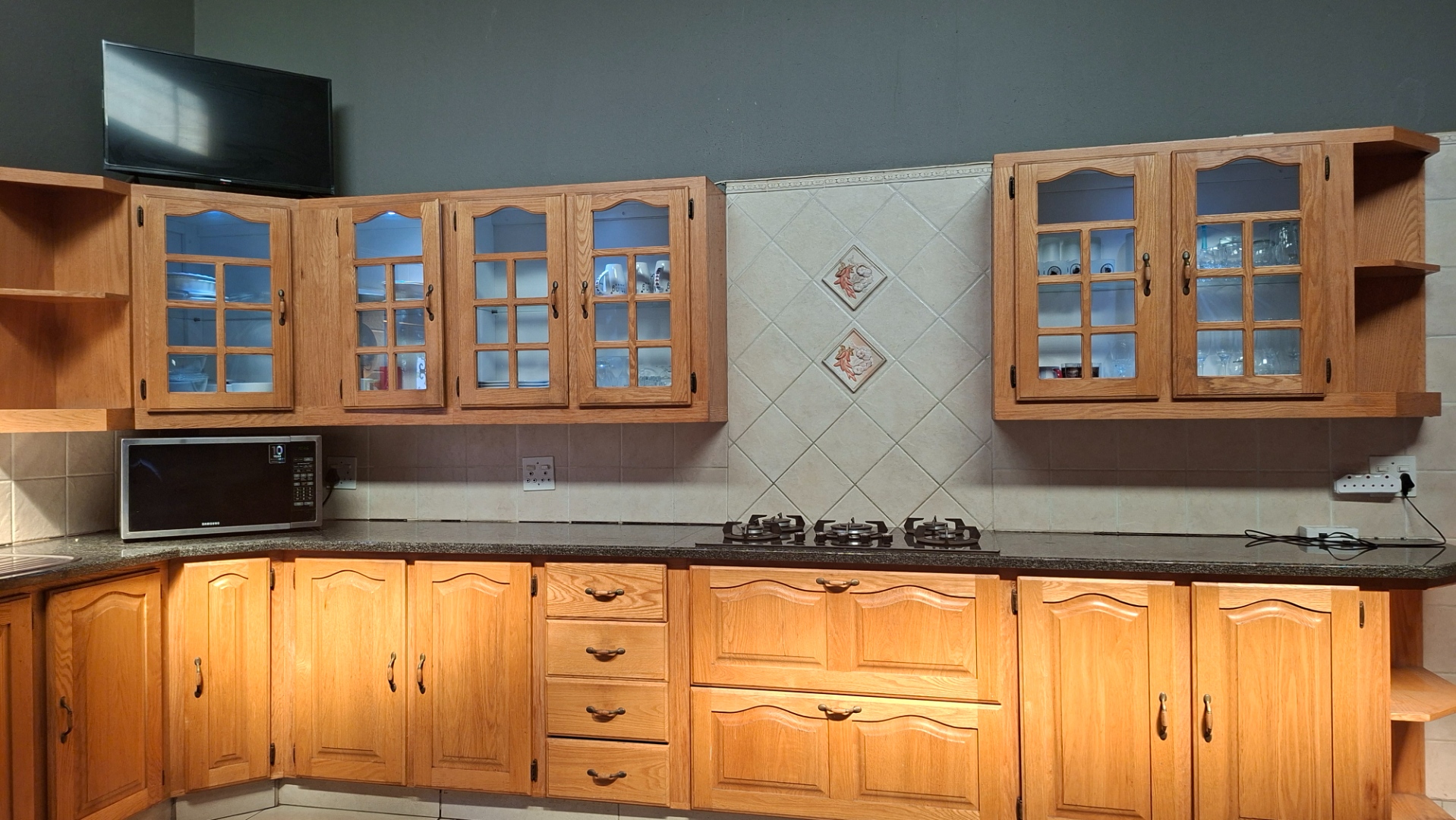 The kitchen is spacious, has a gas hob and an electric eye level oven as well as adequate cupboard space.