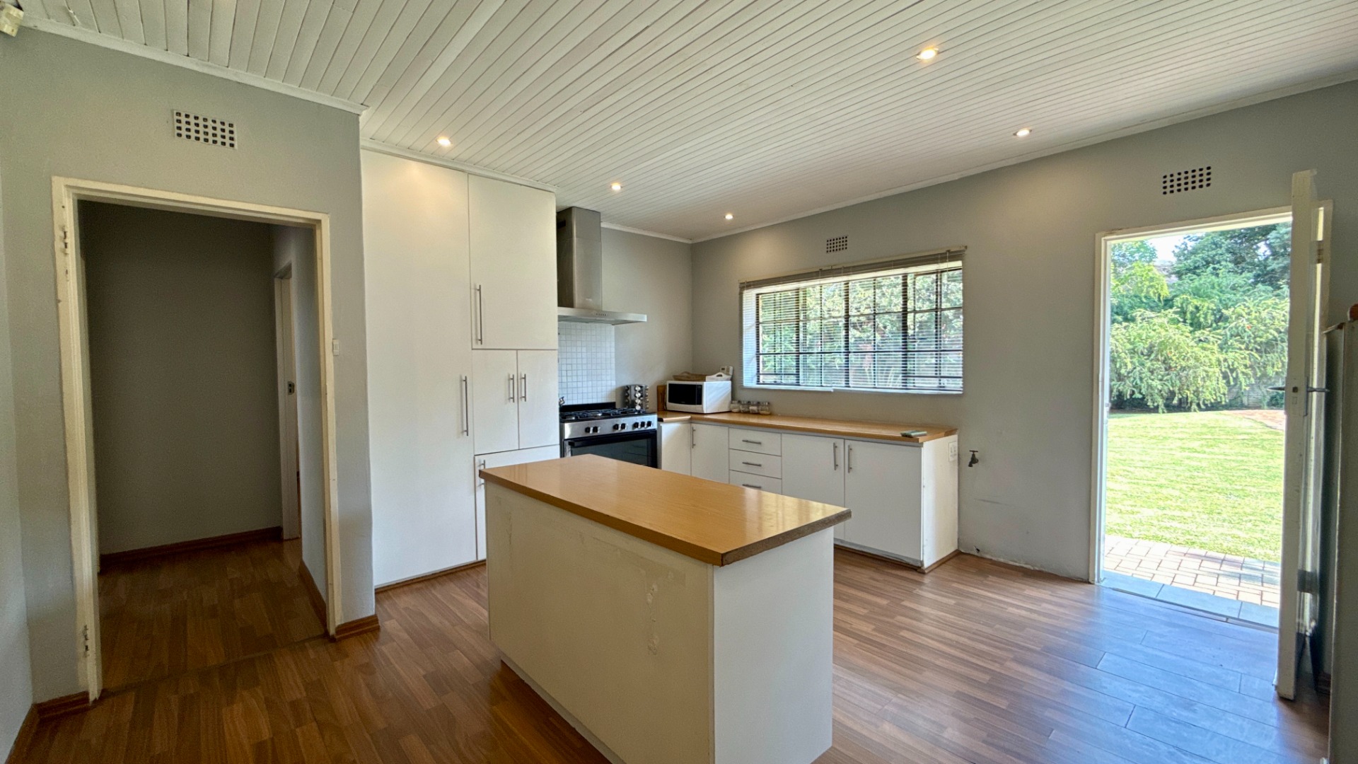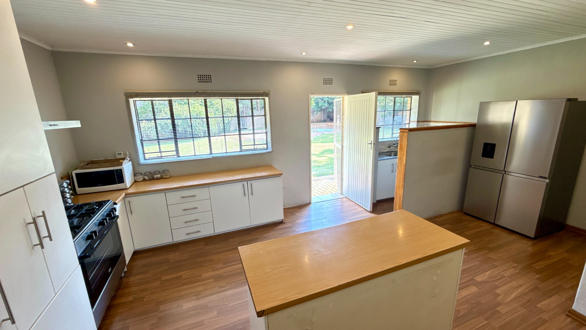 Externally, the property truly shines with its huge 1500m²+ stand, offering endless possibilities for landscaping, expansion, or outdoor entertainment. The swimming pool, as shown in the images, requires some renovation—presenting an excellent opportunity to add significant value. Security is well covered with an alarm system and electric fencing, while the double automated garage adds everyday convenience.